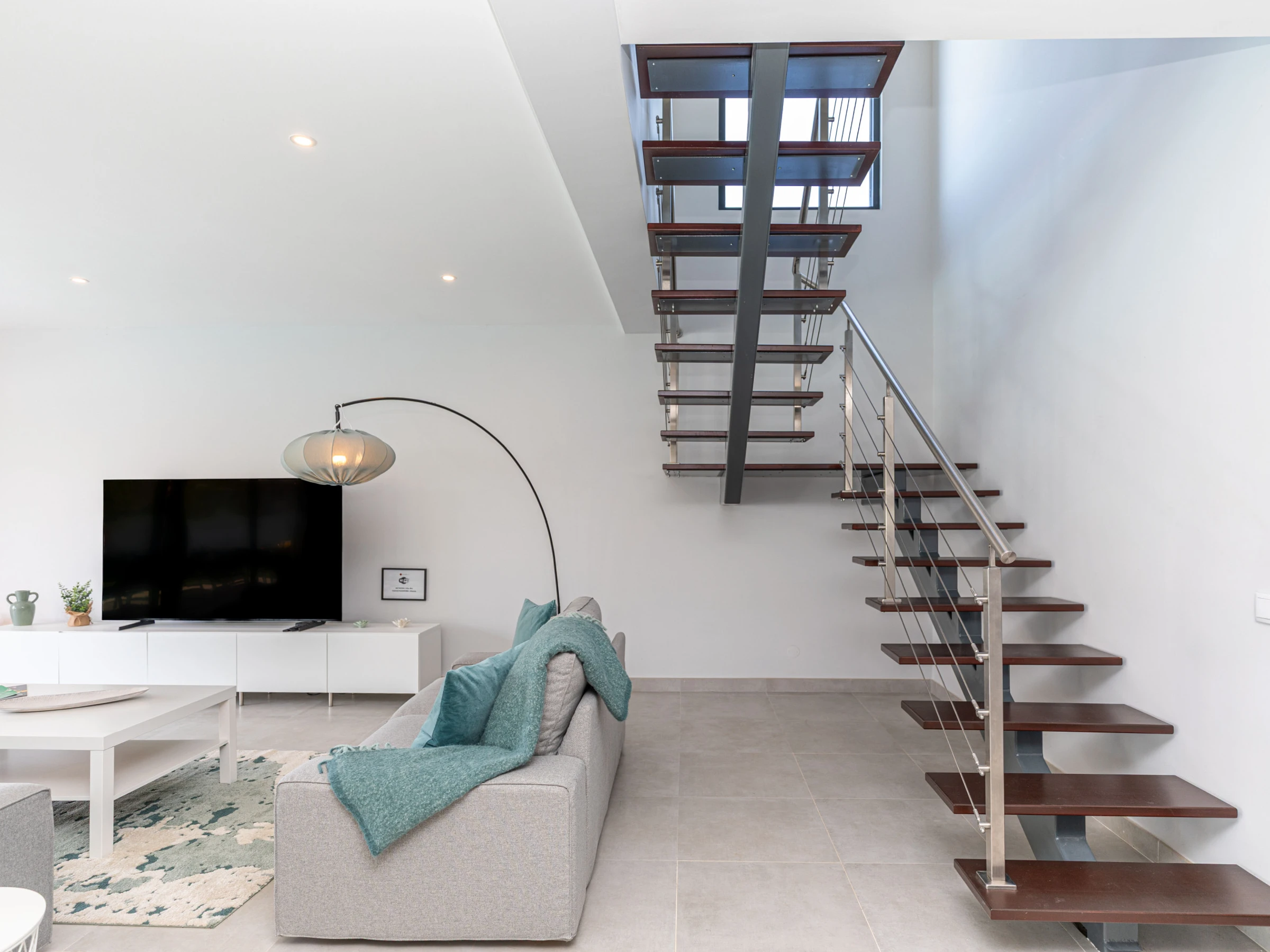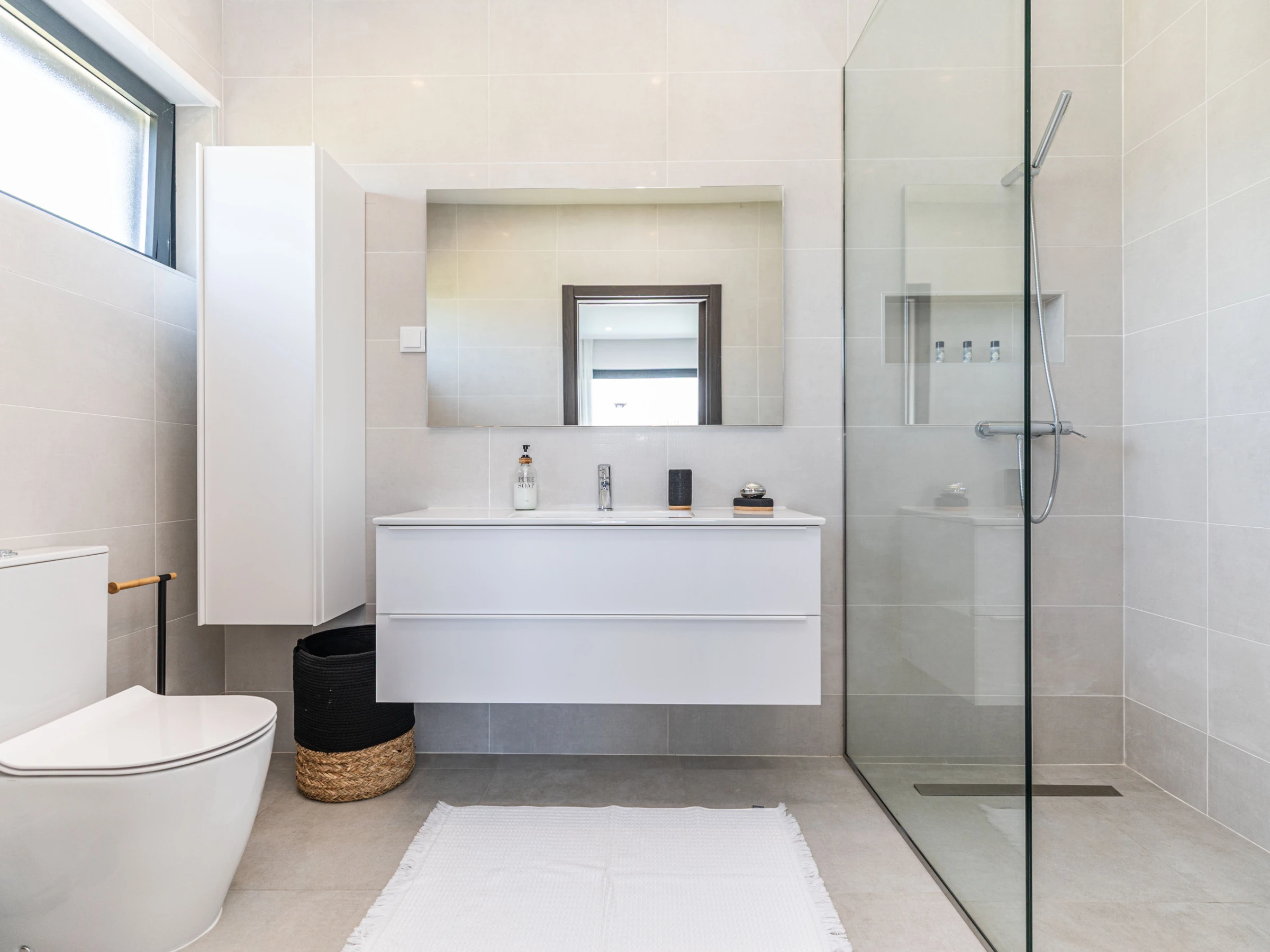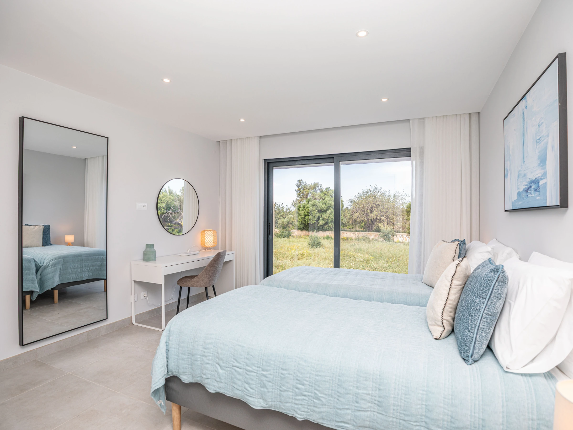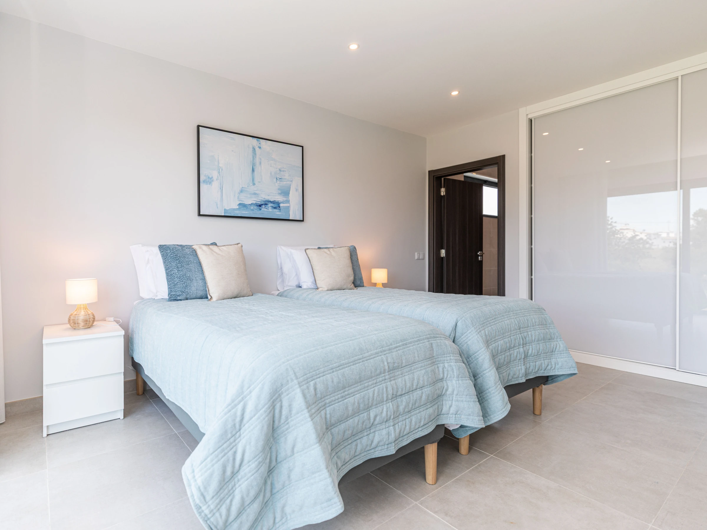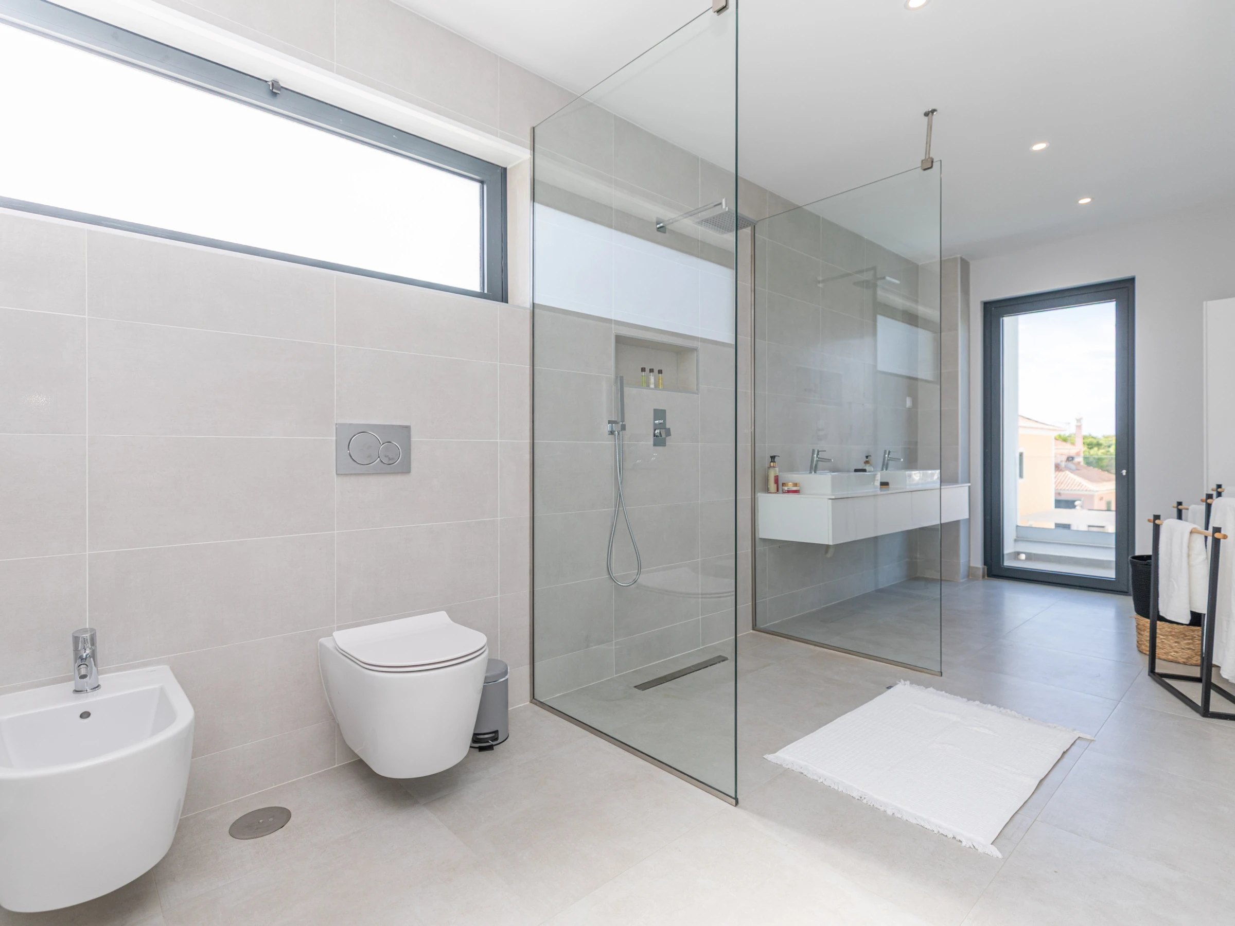 À l'étage, trois chambres supplémentaires magnifiques attendent : 2 chambres avec lit king size et une chambre avec un lit simple pour les enfants ou les amis partageant la chambre. Chacune est soigneusement conçue avec de grandes fenêtres, des volets électriques, des armoires intégrées, la climatisation et sa propre salle de douche privative pour un confort et une intimité maximaux.