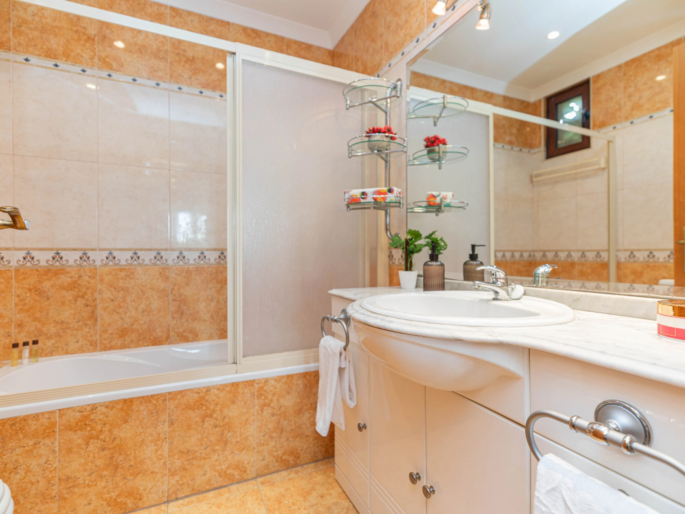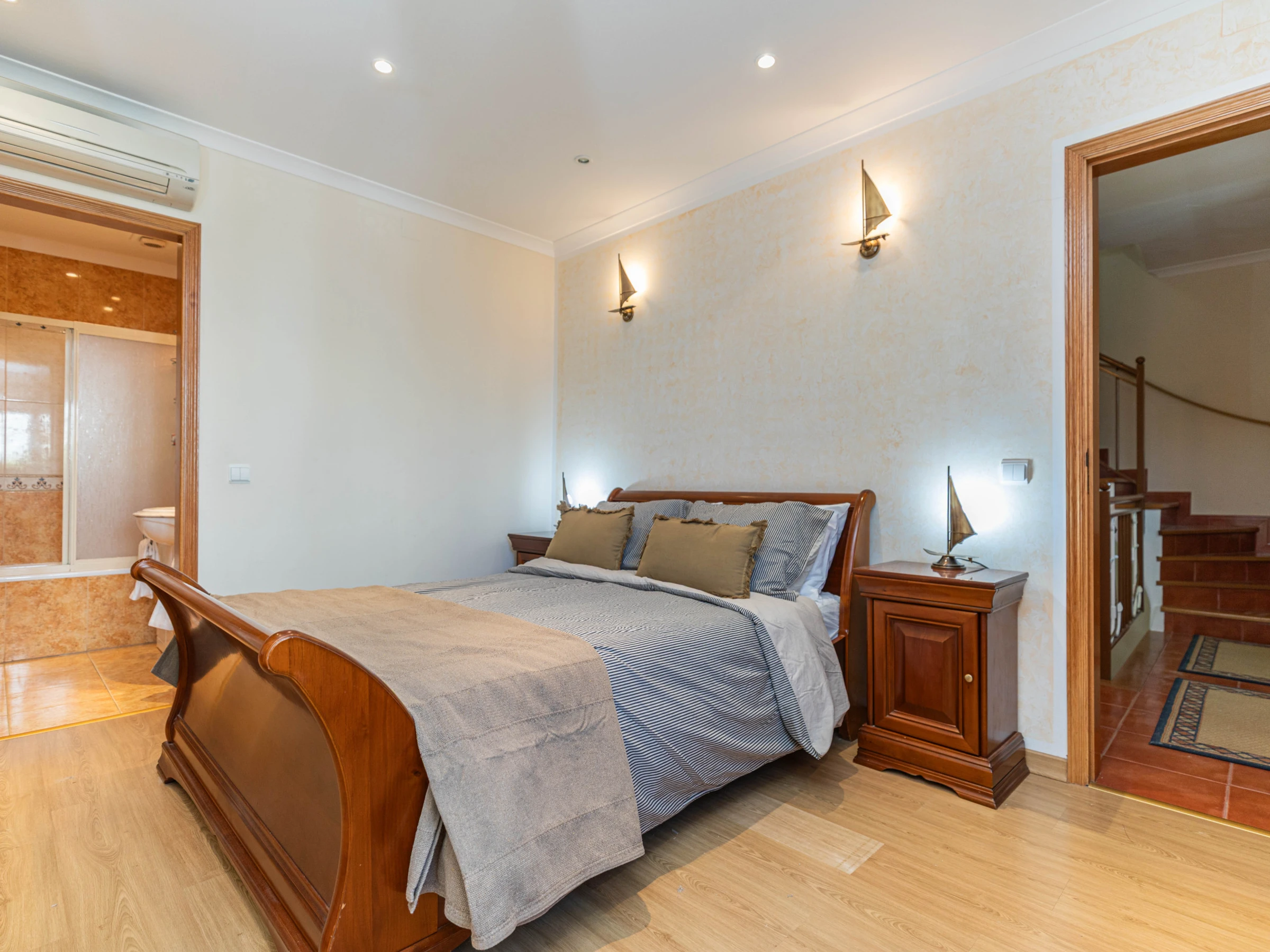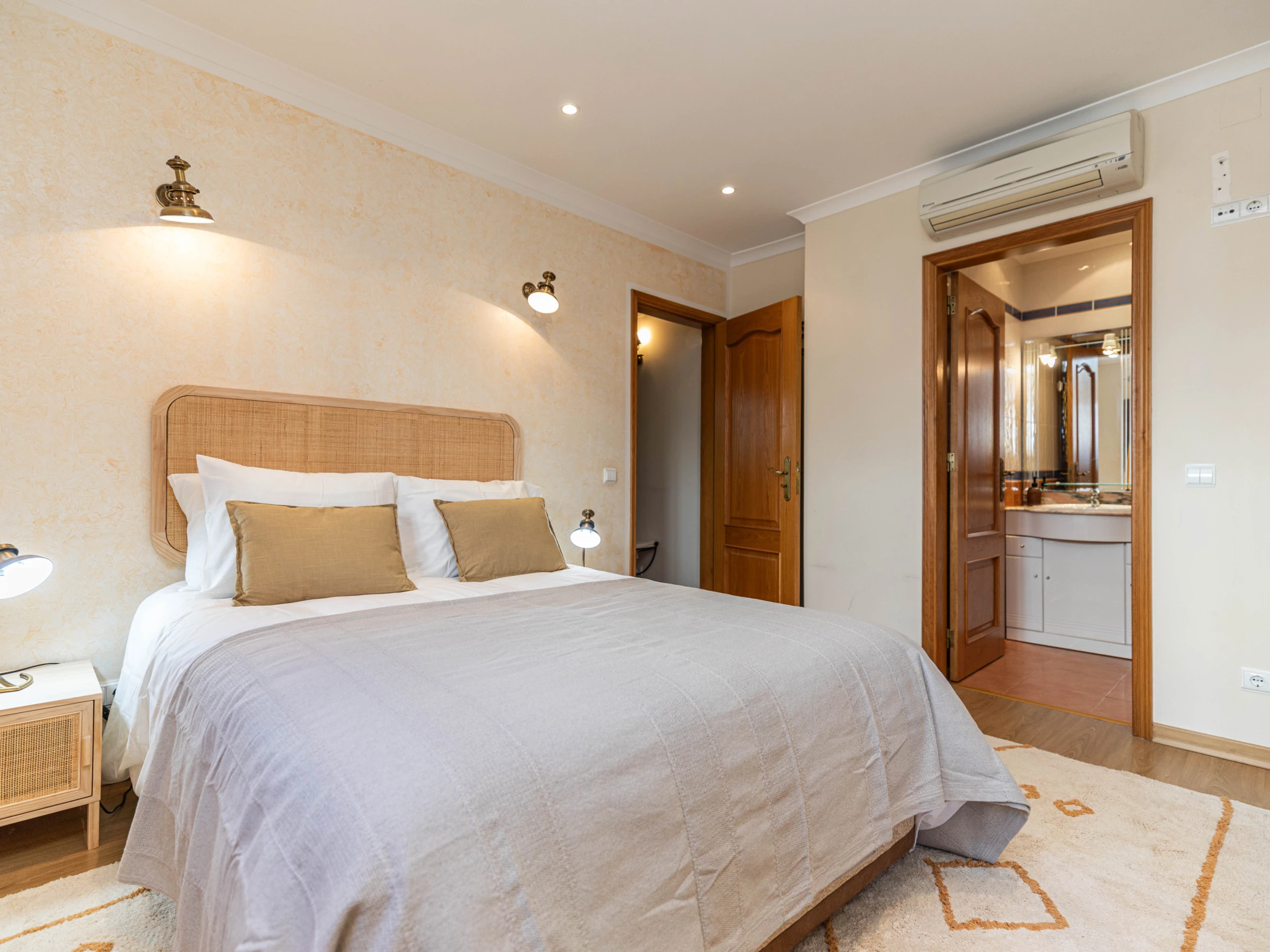 Deux chambres situées au premier et au deuxième étage offrent une retraite paisible avec climatisation, armoires intégrées et lits king-size confortables. Chacune dispose d'une salle de bain privative — l'une avec une douche à l'italienne, l'autre avec une baignoire et une douche suspendue — garantissant confort et intimité.