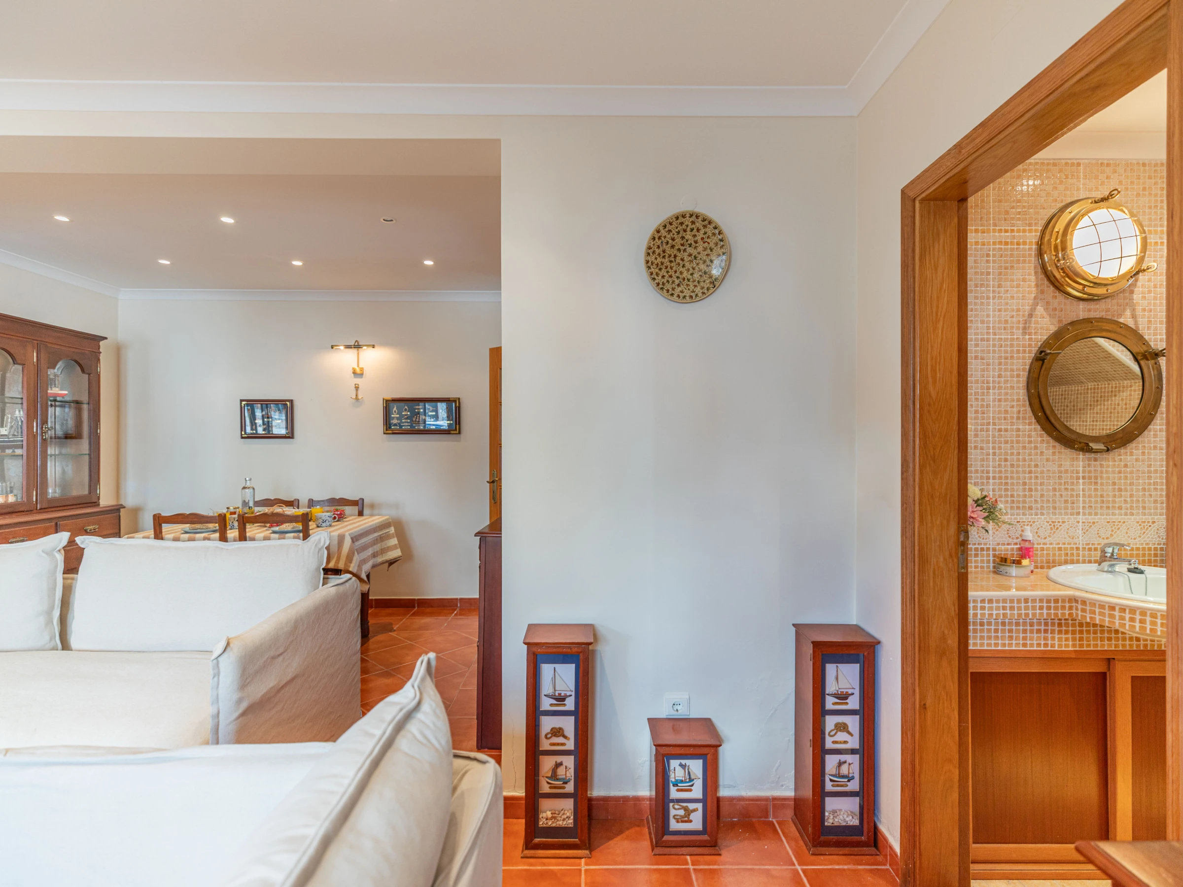 Entrez dans un espace de vie lumineux et aéré, où vous êtes d'abord accueilli par un salon confortable avec canapés, TV et Wi-Fi haut débit—parfait pour se détendre après une journée d'exploration à Tavira. Vers l'arrière, un spacieux espace repas présente une charmante table en bois, idéale pour les repas en famille ou entre amis. La cuisine adjacente entièrement équipée rend la cuisine agréable, avec une cuisinière à gaz, un four électrique, un lave-vaisselle, un réfrigérateur/congélateur et tous les appareils essentiels. La climatisation dans toute la maison maintient un intérieur frais et confortable pendant les chaudes journées d'été. Ce rez-de-chaussée dispose également d'un WC pour plus de commodité.