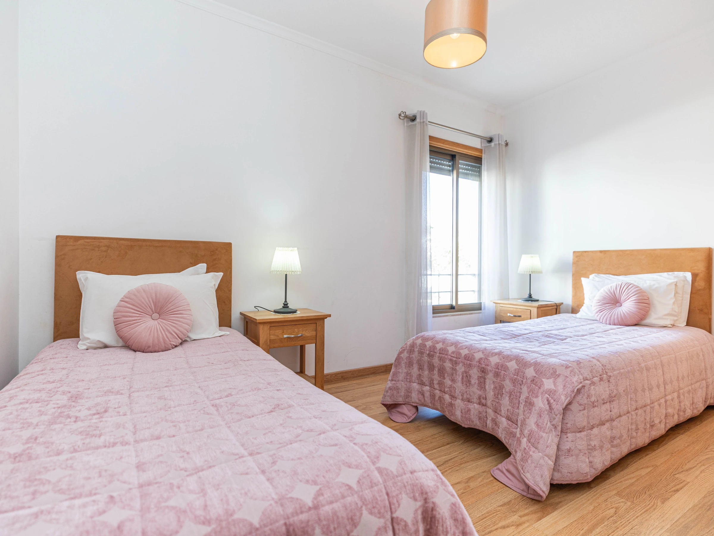 Cet appartement de plain-pied est idéal pour 2 couples ou une famille, situé dans la copropriété sécurisée : Horta Poço do Bispo. Il dispose de 2 chambres, une double et une twin, avec des armoires intégrées et une salle de bain familiale partagée avec baignoire et douche suspendue. La cuisine est équipée d'appareils intégrés, dont un lave-vaisselle et un lave-linge, donnant sur des espaces de vie lumineux comprenant un plan ouvert avec un salon et une salle à manger, avec des sièges confortables, une table et des chaises. Petit patio ensoleillé à l'avant de l'appartement, donnant sur la piscine.