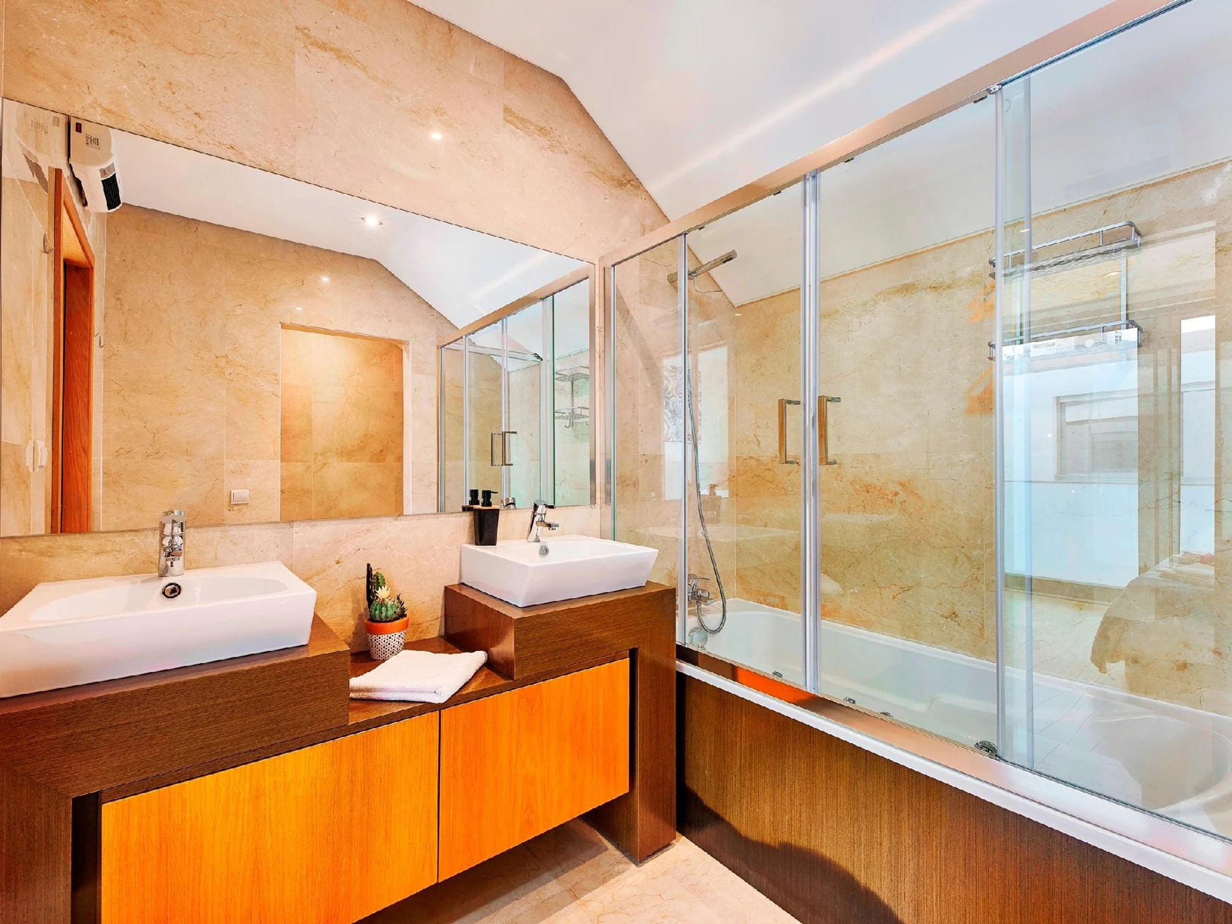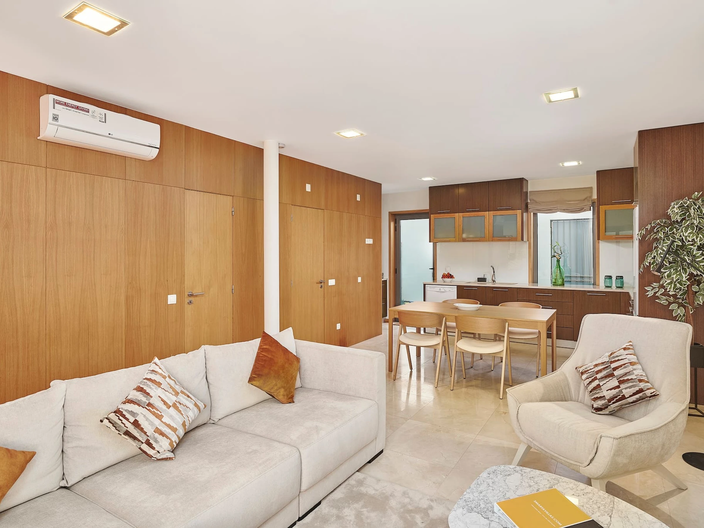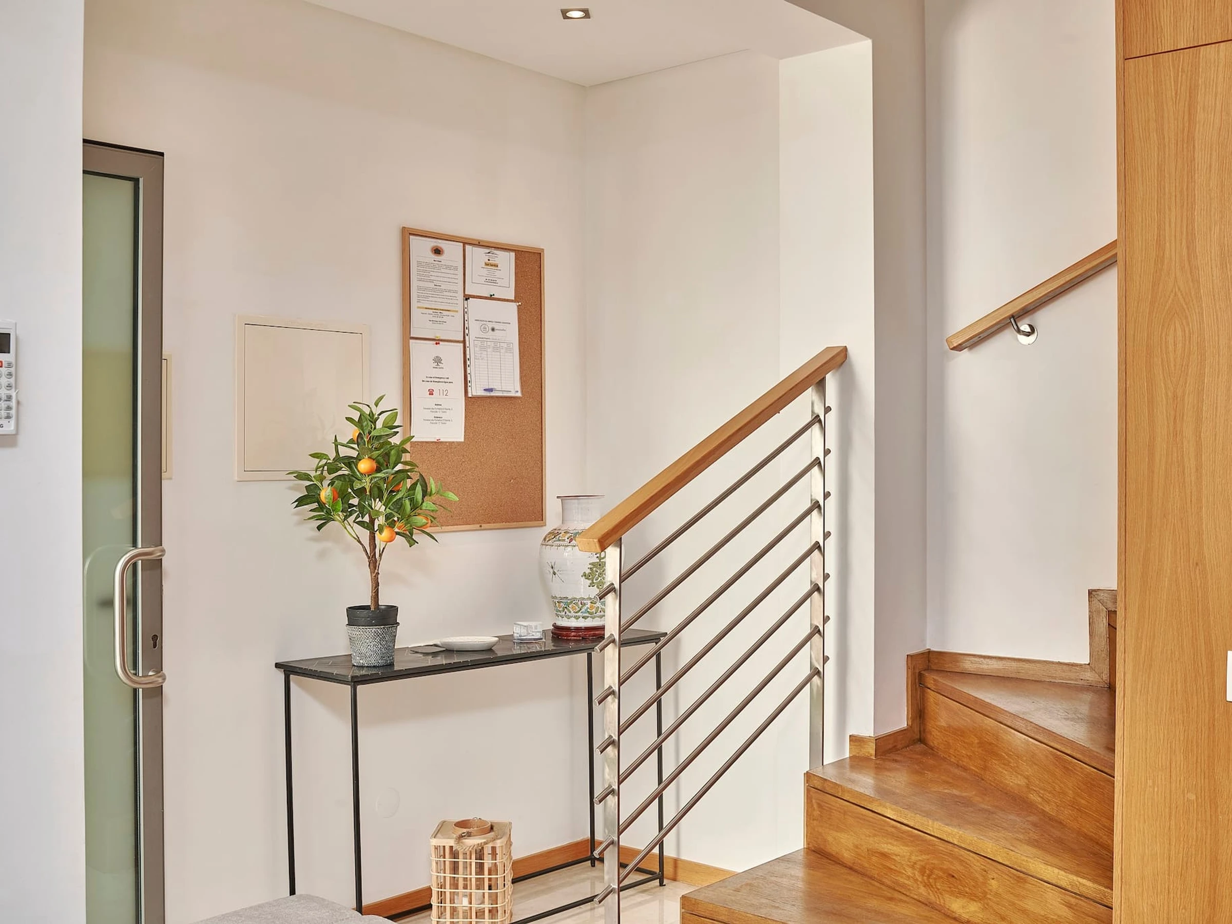 Depuis l'entrée principale du condo, vous êtes accueilli dans la charmante cour décorée d'arbustes attrayants menant à la piscine à débordement délicieusement scintillante (10m x 2m ; 1,5m de profondeur). Ici, vous pouvez prendre un trempage rafraîchissant puis vous détendre sur les transats fournis. Convertie d'un ancien moulin à olives, l'appartement a été habilement conçu sur trois étages pour offrir un espace et une lumière abondants, tandis que des équipements exceptionnels et des meubles et décors contemporains se combinent sans effort avec des sols en marbre poli et en parquet pour créer des intérieurs résolument modernes.