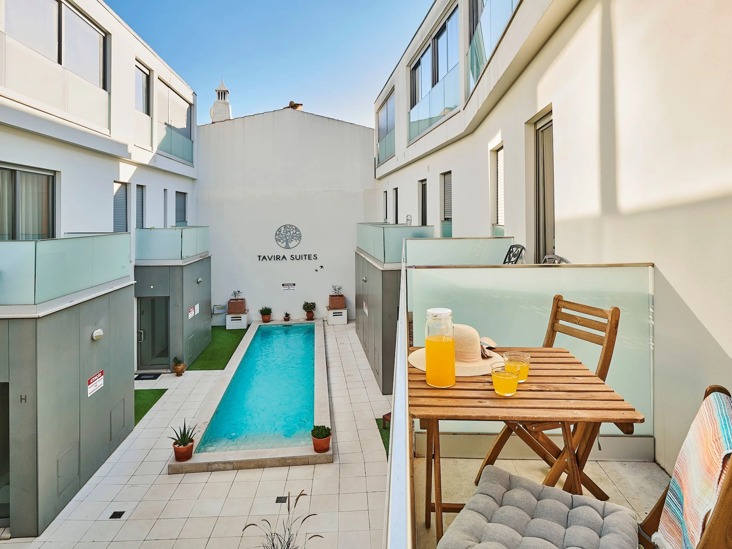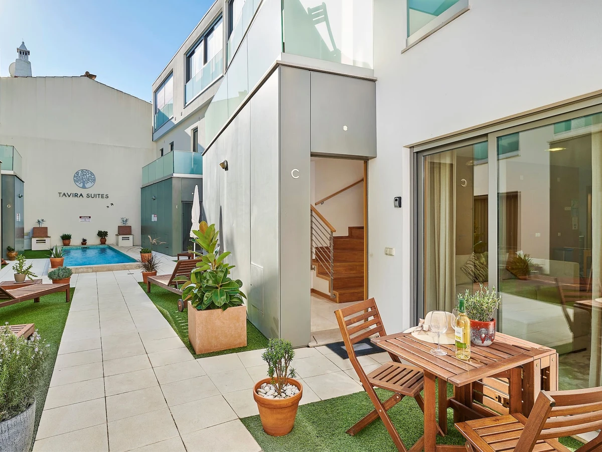 2 Chambres (Avec Salle de Bain Attenante) - Hébergement contemporain, bien aménagé et spacieux, à distance de marche de tous les services et attractions de Tavira, réputée comme la ville côtière la plus charmante de l'Algarve. Les caractéristiques impressionnantes comprennent des sols en marbre poli et en parquet, une cuisine entièrement équipée, des installations avec salle de bain attenante et une terrasse privée. À l'extérieur, une jolie cour ornée de bougainvilliers attrayants et d'agrumes parfumés entoure une piscine de nage rafraîchissante, idéale pour les chaudes journées d'été