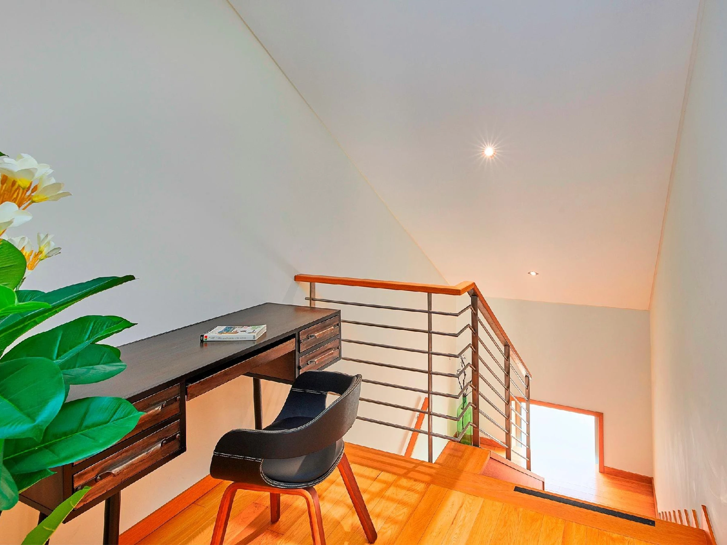 DEUXIÈME ÉTAGE : Le palier ouvert offre l'endroit idéal pour les emails et le temps administratif avec un espace de bureau et de travail. La suite de la chambre principale spacieuse dispose de sa propre salle de bain et de placards intégrés.