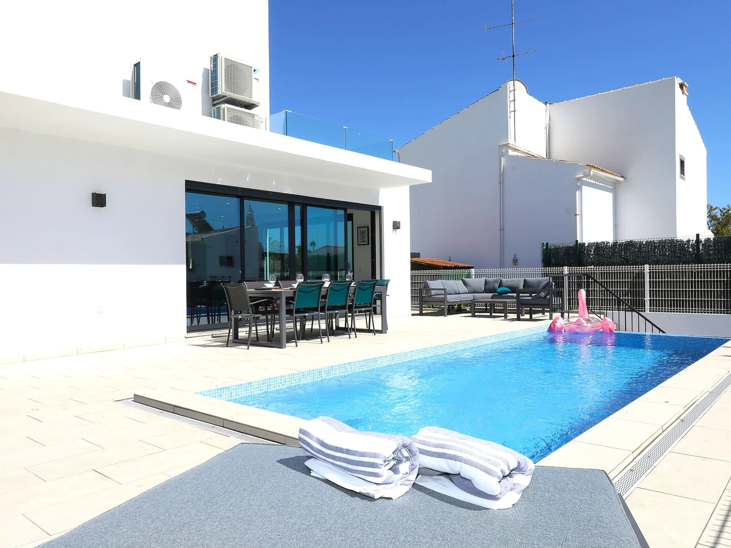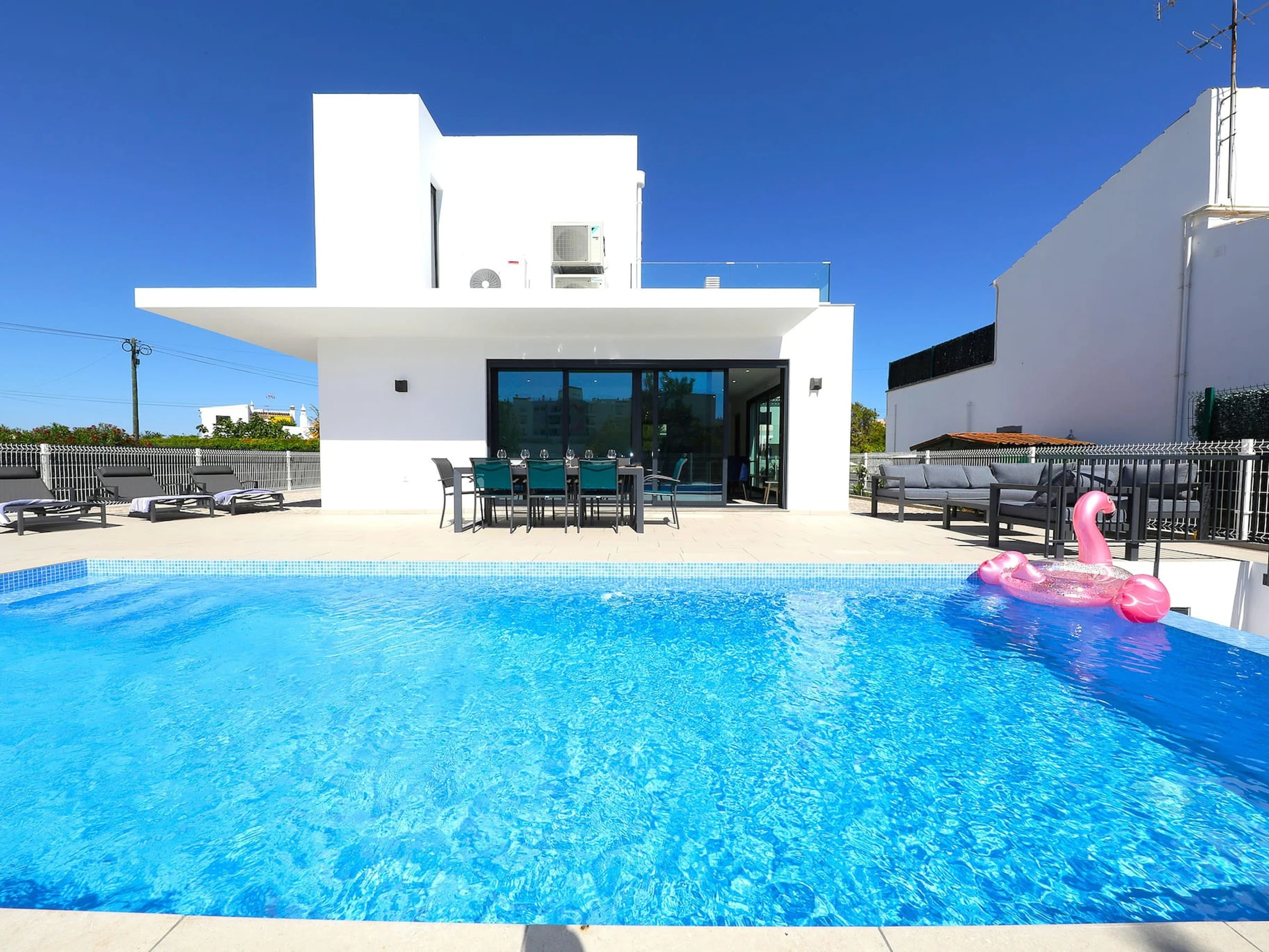 Une villa familiale impressionnante située près du centre-ville de Tavira. La décoration intérieure est fraîche et lumineuse, avec des espaces de vie ouverts et une cuisine/bar à petit-déjeuner superbe. 6 invités sont confortablement logés, avec 1 chambre commodément située au rez-de-chaussée. Les équipements extérieurs comprennent une magnifique piscine à débordement, un espace repas en plein air et une zone de repos confortable au bord de la piscine. Une promenade de 20 minutes vous mène aux restaurants, aux boutiques traditionnelles et à la navette maritime vers la magnifique Île de la Plage de Tavira.
