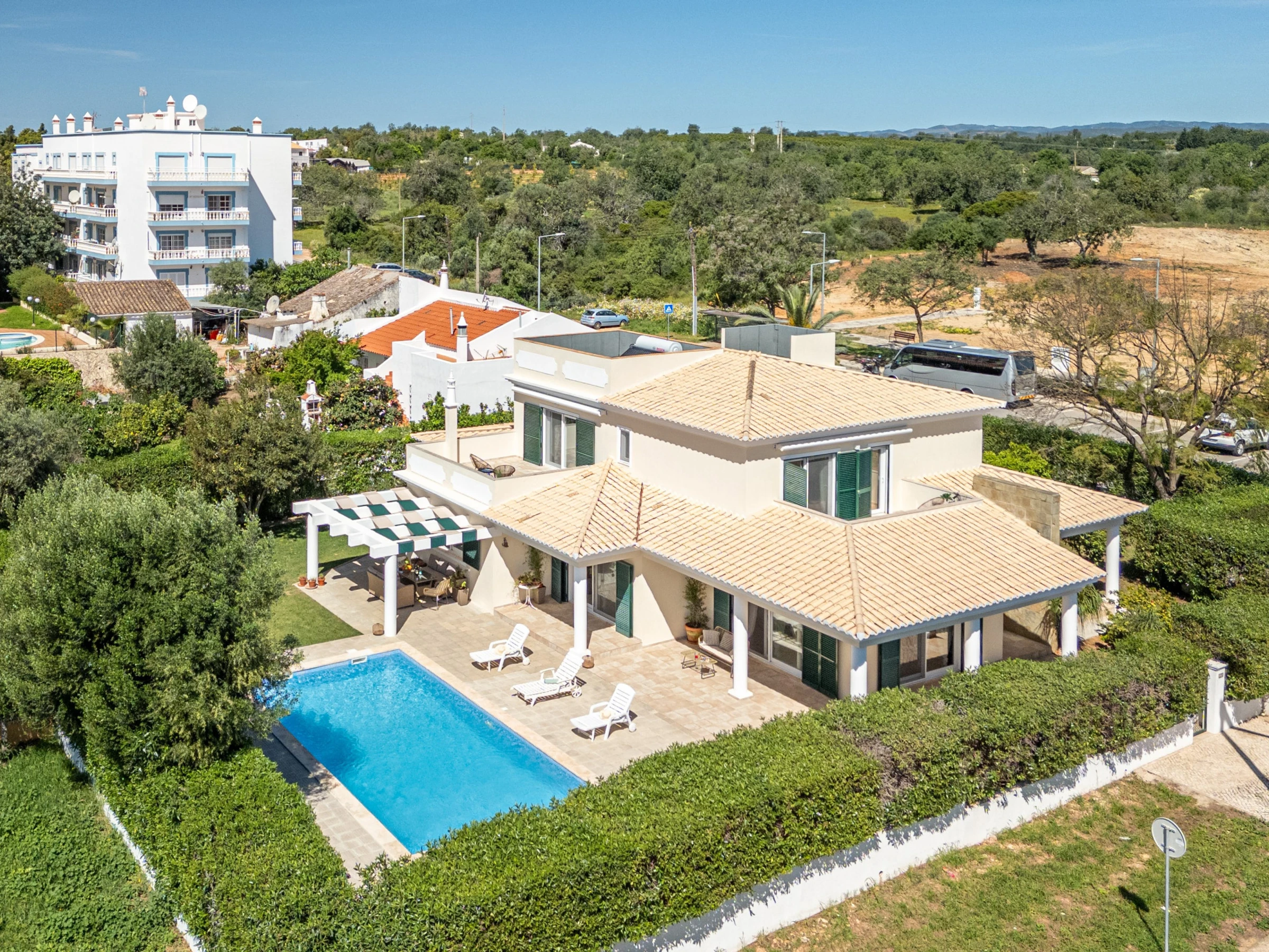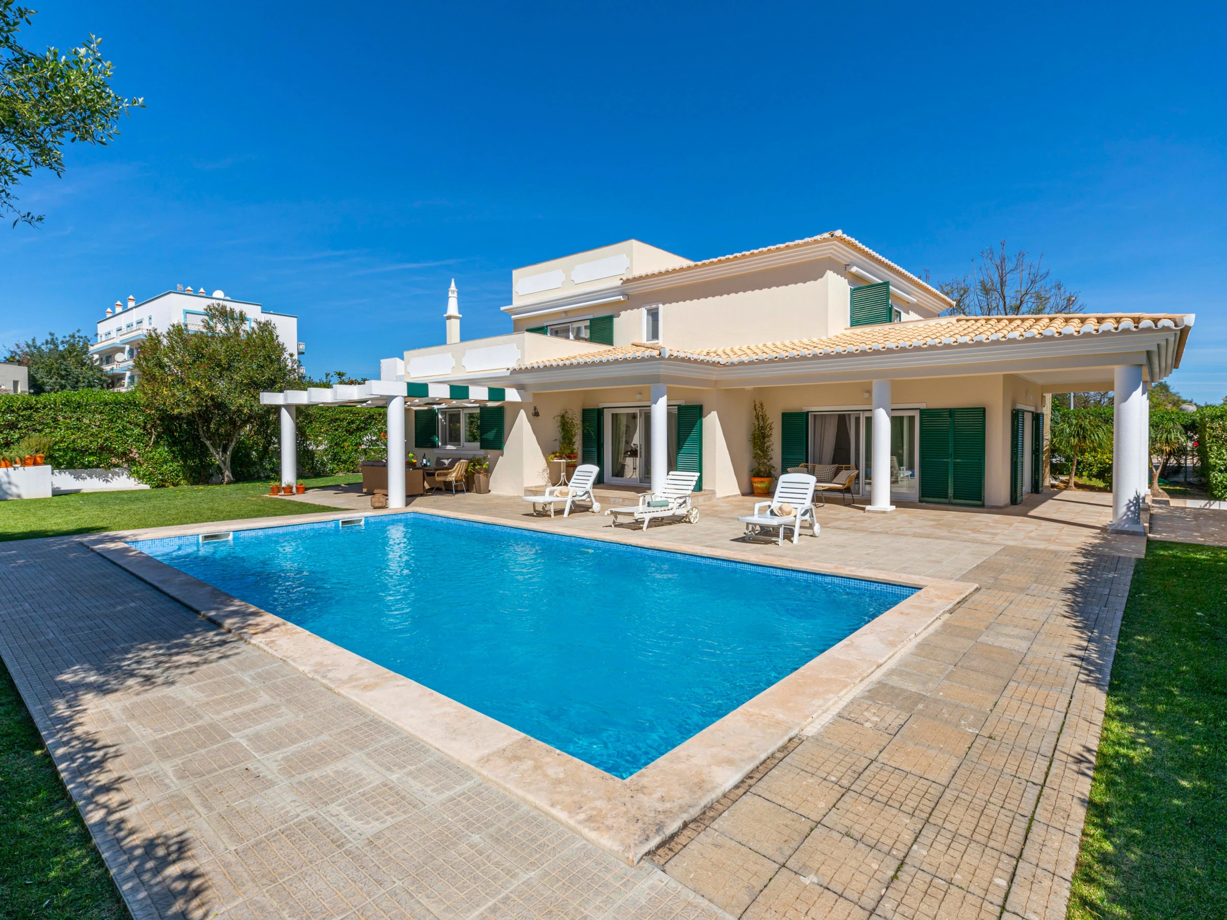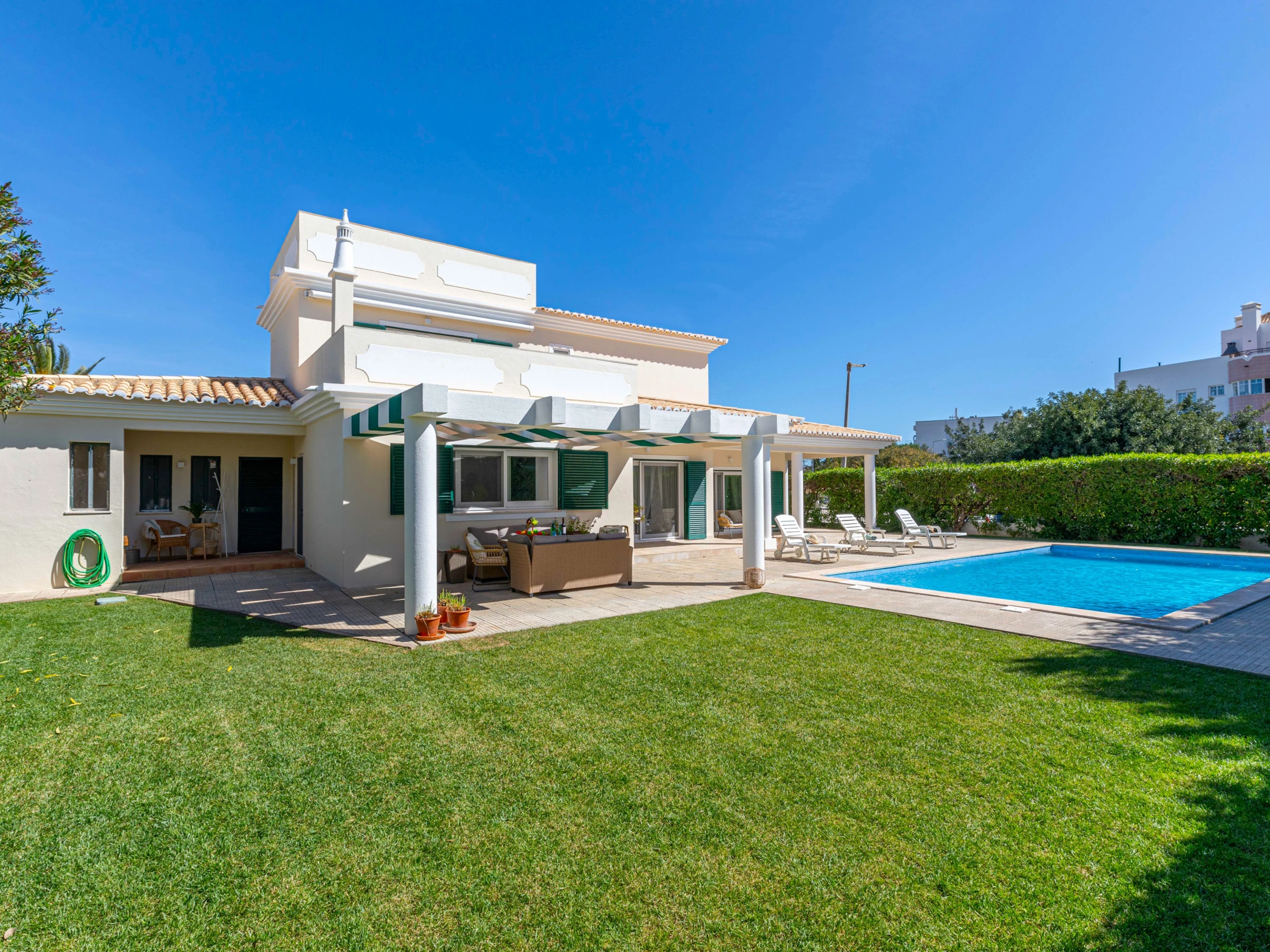 Villa do Vale est une magnifique villa familiale située dans un quartier résidentiel paisible à Tavira. Avec une piscine scintillante, des espaces herbeux luxuriants avec des arbustes matures entourant différents espaces de repas et de détente extérieurs, c'est la maison de vacances idéale ! L'intérieur élégant offre un espace de vie ouvert spacieux et 4 chambres avec des balcons privés. À seulement 2 km du centre historique de Tavira, la villa offre un excellent mélange d'expériences de piscine et de plage, ce qui en fait un excellent choix pour les familles.