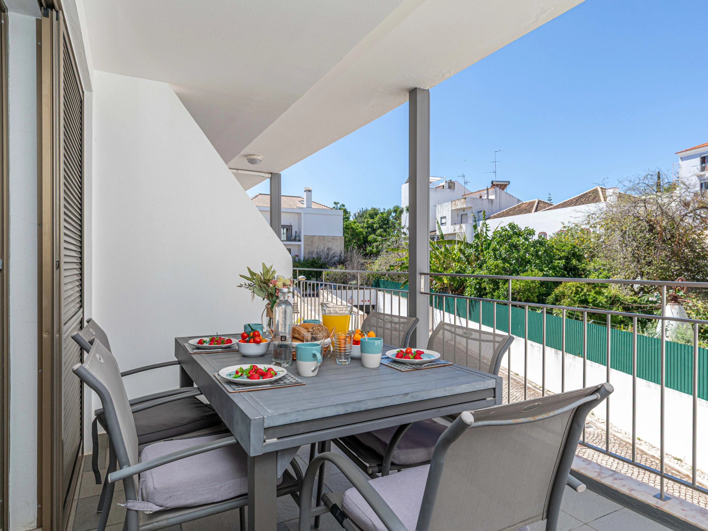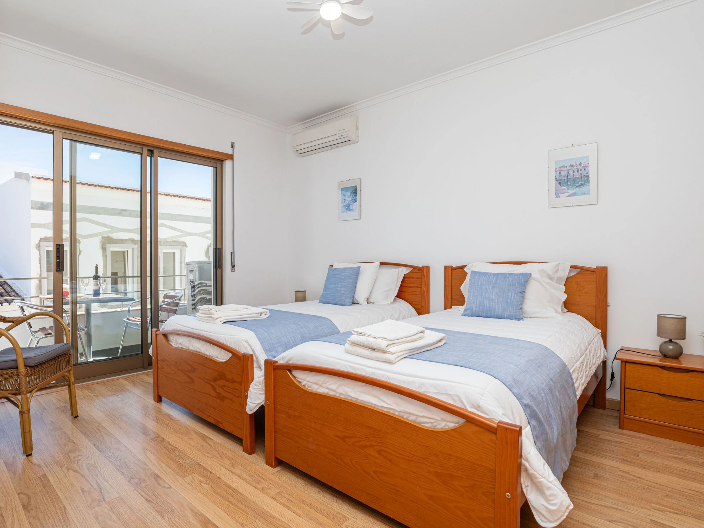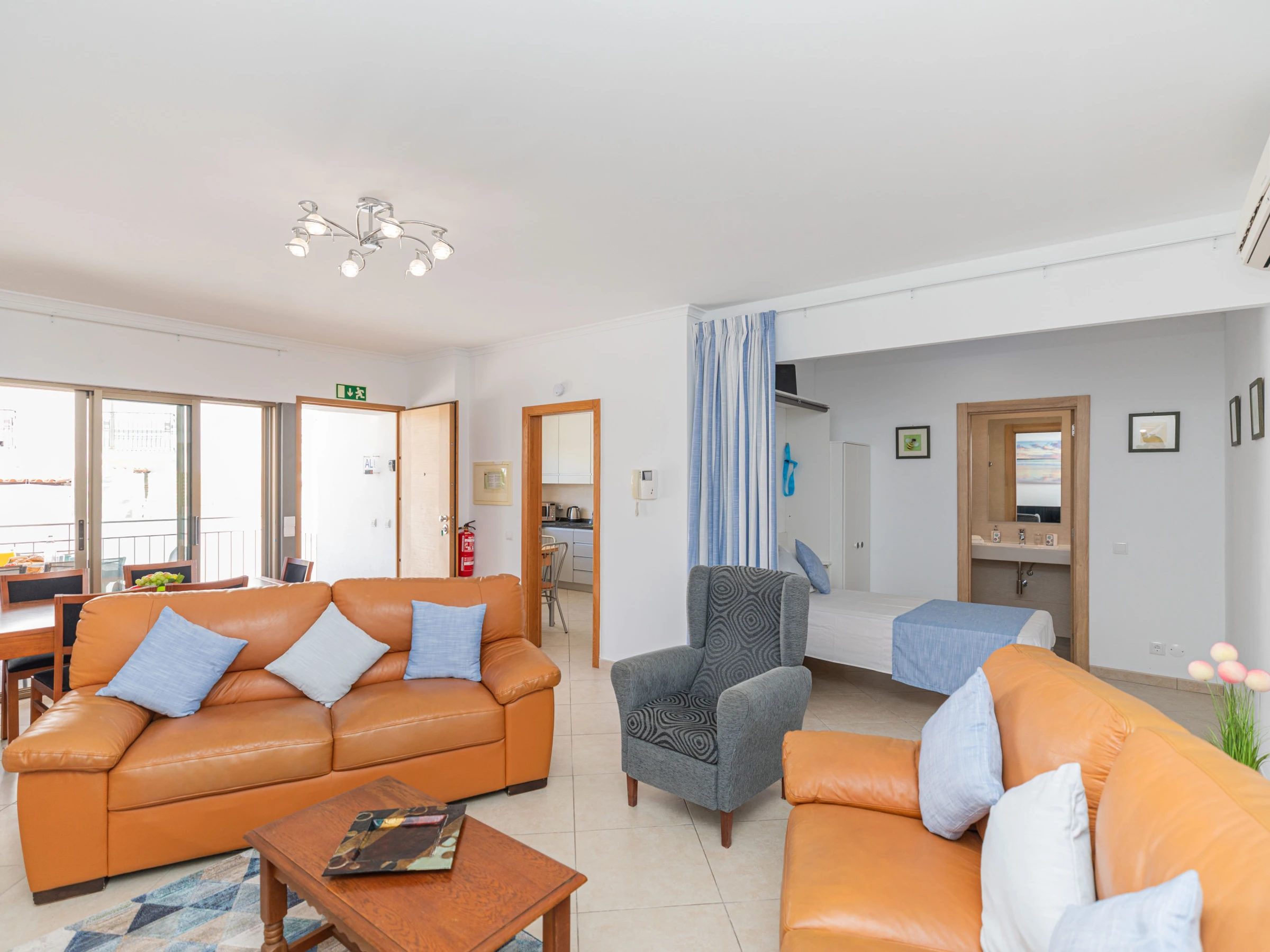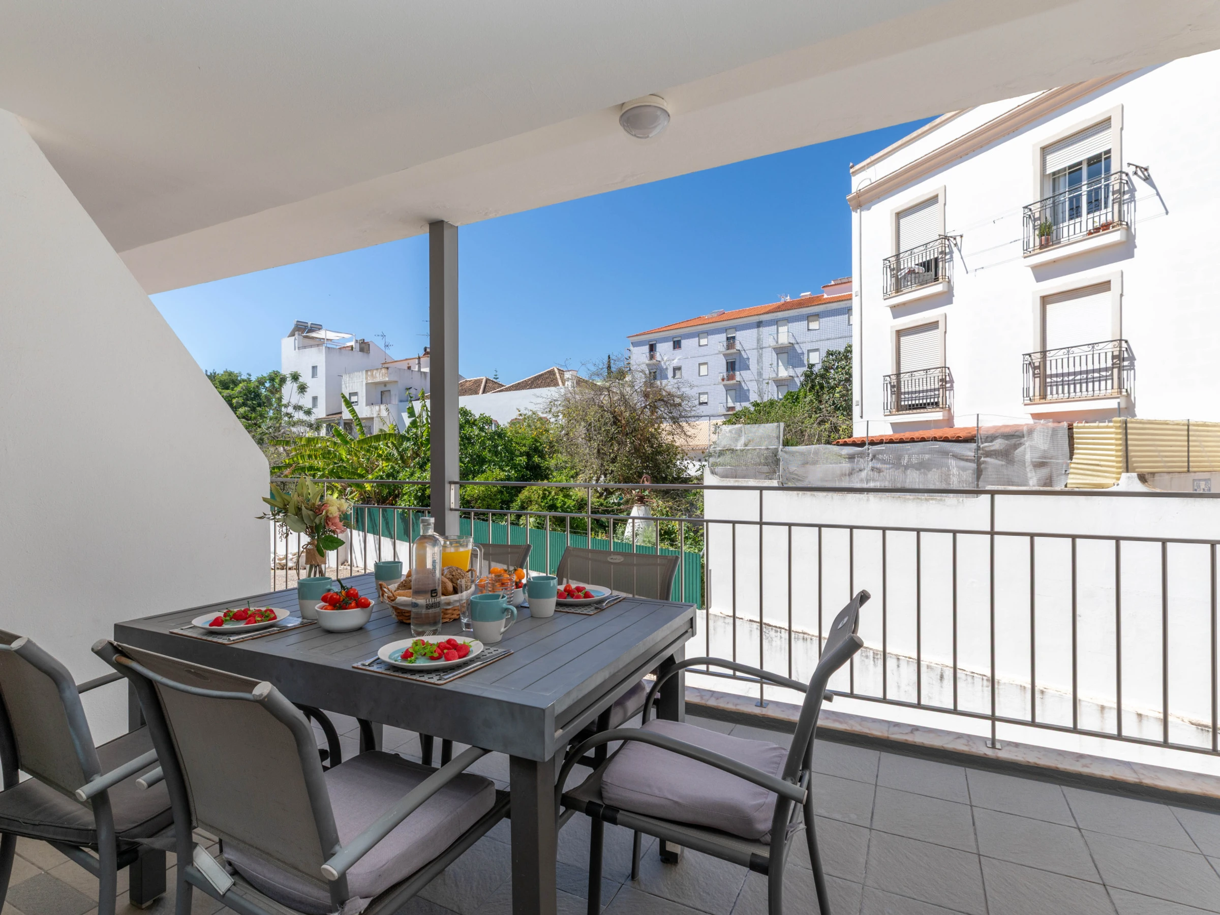 Situé au bout d'un balcon commun paisible, cet appartement lumineux et accueillant s'ouvre sur un salon et une salle à manger spacieux et ouverts. À l'intérieur, vous trouverez une table de salle à manger élégante, des canapés confortables et une smart TV—parfaits pour se détendre après une journée d'exploration de Tavira. Les deux chambres sont situées à l'arrière de l'appartement, chacune avec des lits jumeaux qui peuvent être séparés ou rapprochés selon vos besoins. Pour accueillir des invités supplémentaires, un canapé-lit escamotable est soigneusement rangé dans l'espace de vie. Deux salles de bains modernes et élégantes avec douches à l'italienne sont disponibles, et la cuisine entièrement équipée comprend tout, de lave-vaisselle à machine à laver—conçue pour un séjour autonome vraiment confortable.