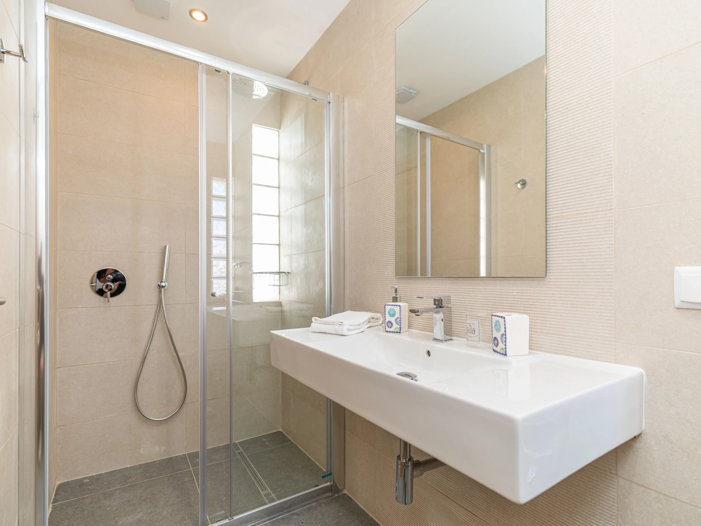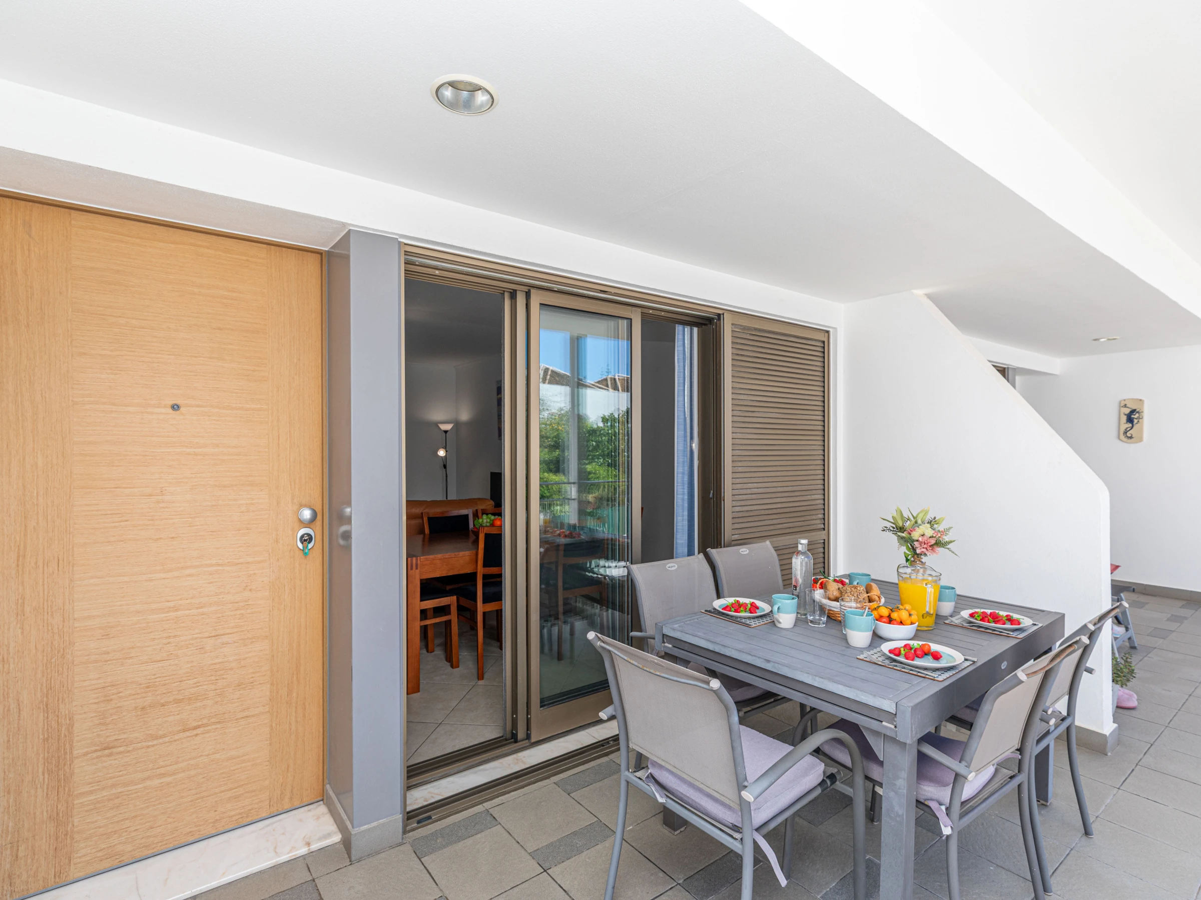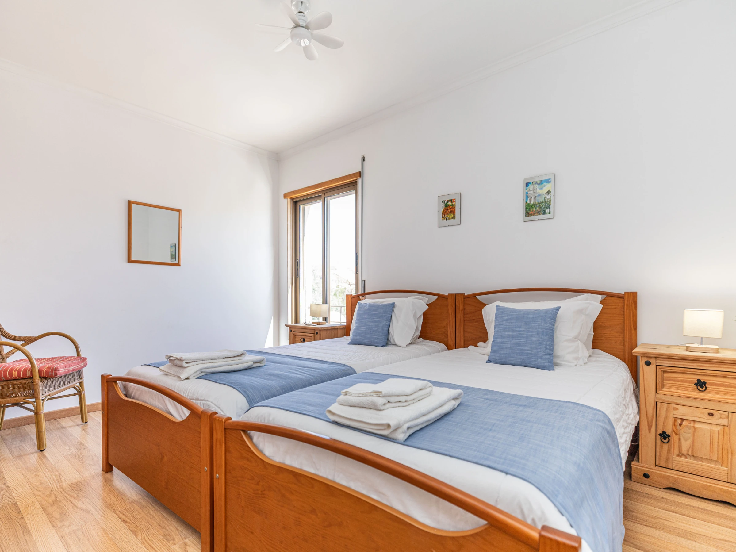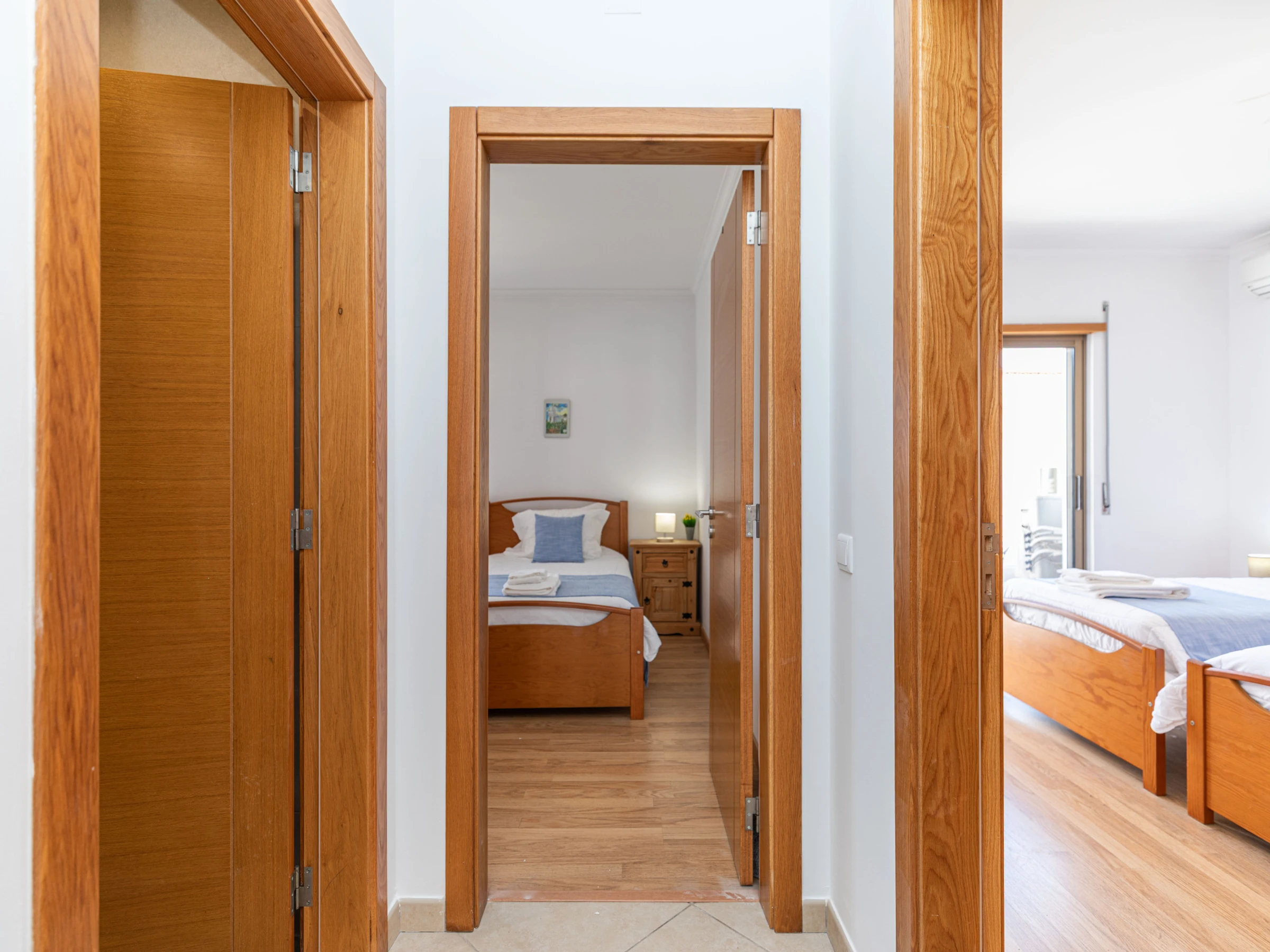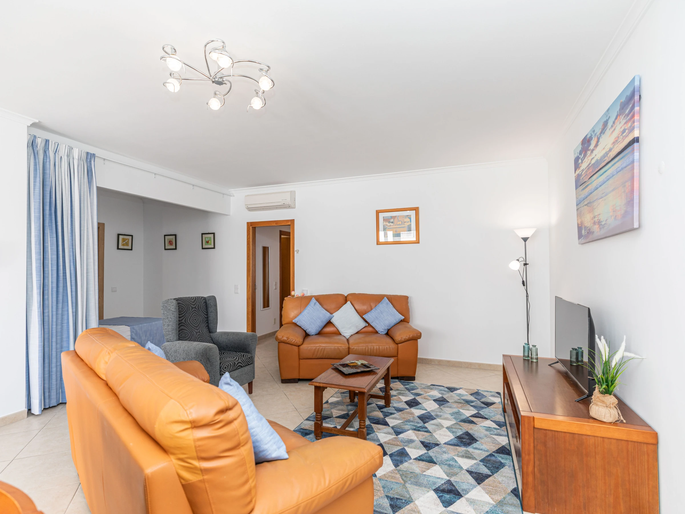Situé au bout d'un balcon commun paisible, cet appartement lumineux et accueillant s'ouvre sur un salon et une salle à manger spacieux et ouverts. À l'intérieur, vous trouverez une table de salle à manger élégante, des canapés confortables et une smart TV—parfaits pour se détendre après une journée d'exploration de Tavira. Les deux chambres sont situées à l'arrière de l'appartement, chacune avec des lits jumeaux qui peuvent être séparés ou rapprochés selon vos besoins. Pour accueillir des invités supplémentaires, un canapé-lit escamotable est soigneusement rangé dans l'espace de vie. Deux salles de bains modernes et élégantes avec douches à l'italienne sont disponibles, et la cuisine entièrement équipée comprend tout, de lave-vaisselle à machine à laver—conçue pour un séjour autonome vraiment confortable.
