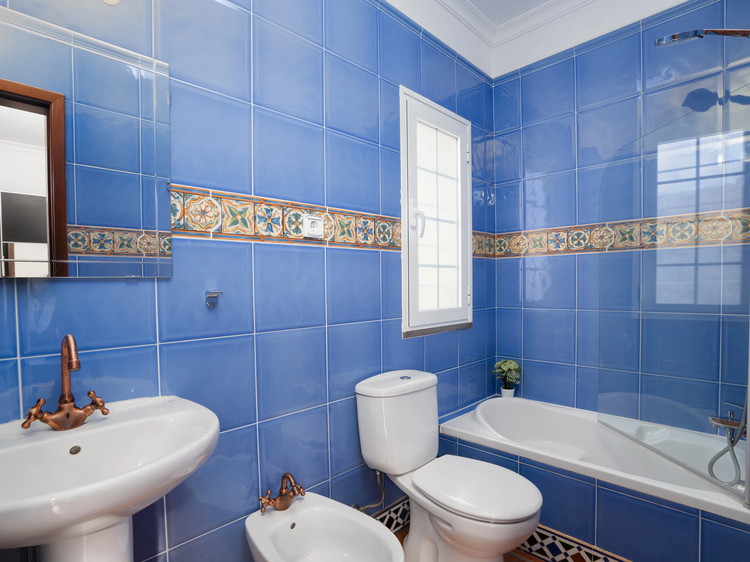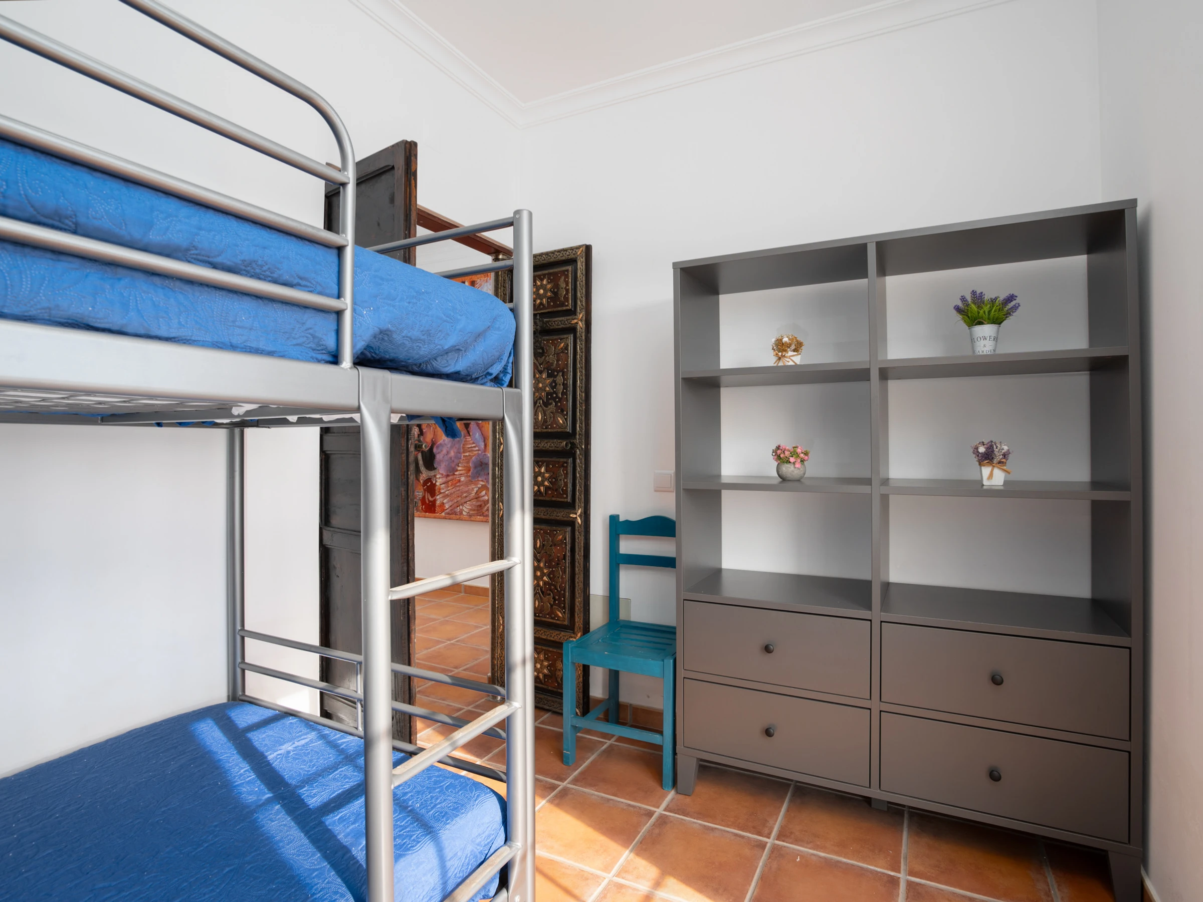 À l'étage, la villa poursuit son orientation familiale avec trois chambres supplémentaires, dont deux chambres avec un grand lit (une avec salle de bain attenante) et une chambre avec lits superposés conçue pour les enfants. Les deux autres chambres partagent une salle de bain avec baignoire. Toutes les chambres sont climatisées, équipées de volets occultants et disposent de nombreux espaces de rangement, garantissant des nuits fraîches et reposantes pour chaque membre de la famille.