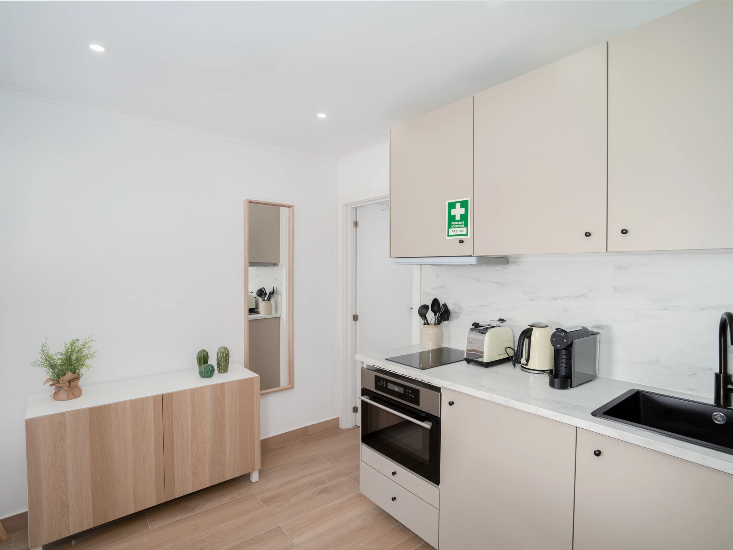 Pour plus de flexibilité, le salon dispose d'un canapé-lit confortable. Bien que l'appartement puisse accueillir jusqu'à quatre personnes, nous le recommandons comme le choix parfait pour deux ou trois invités qui souhaitent profiter au maximum de leur séjour sans compromettre le confort. La climatisation dans chaque pièce garantit que vous resterez au frais en été et au chaud en hiver.