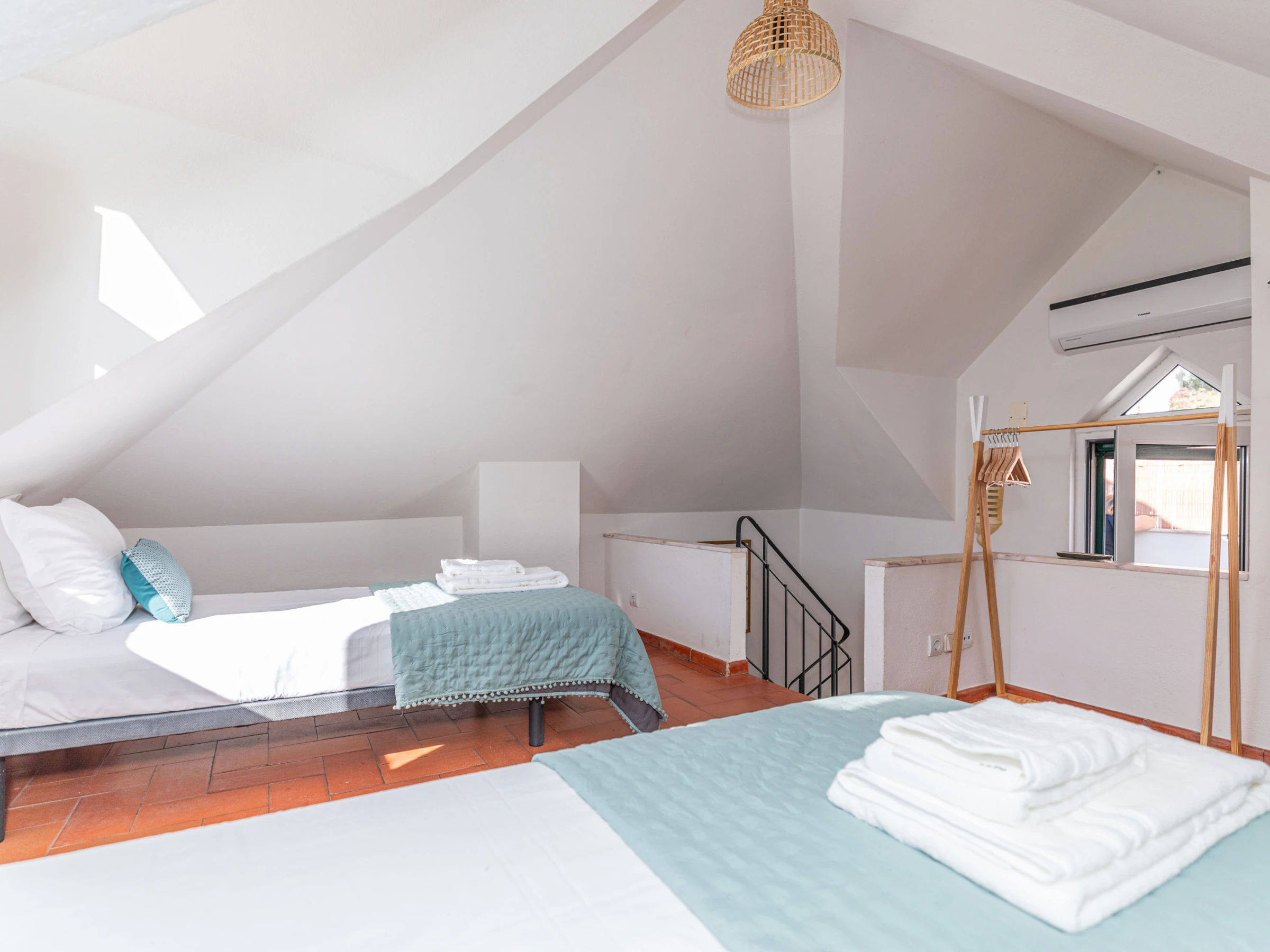 Le deuxième étage révèle une charmante chambre double nichée sous les combles, parfaite pour des amis ou des enfants. Sortez pour découvrir une terrasse isolée — un endroit privé où vous pouvez profiter du soleil ou savourer un verre du soir dans un environnement tranquille. Cet espace extérieur paisible est un petit coin de paradis. Climatisation à cet étage.