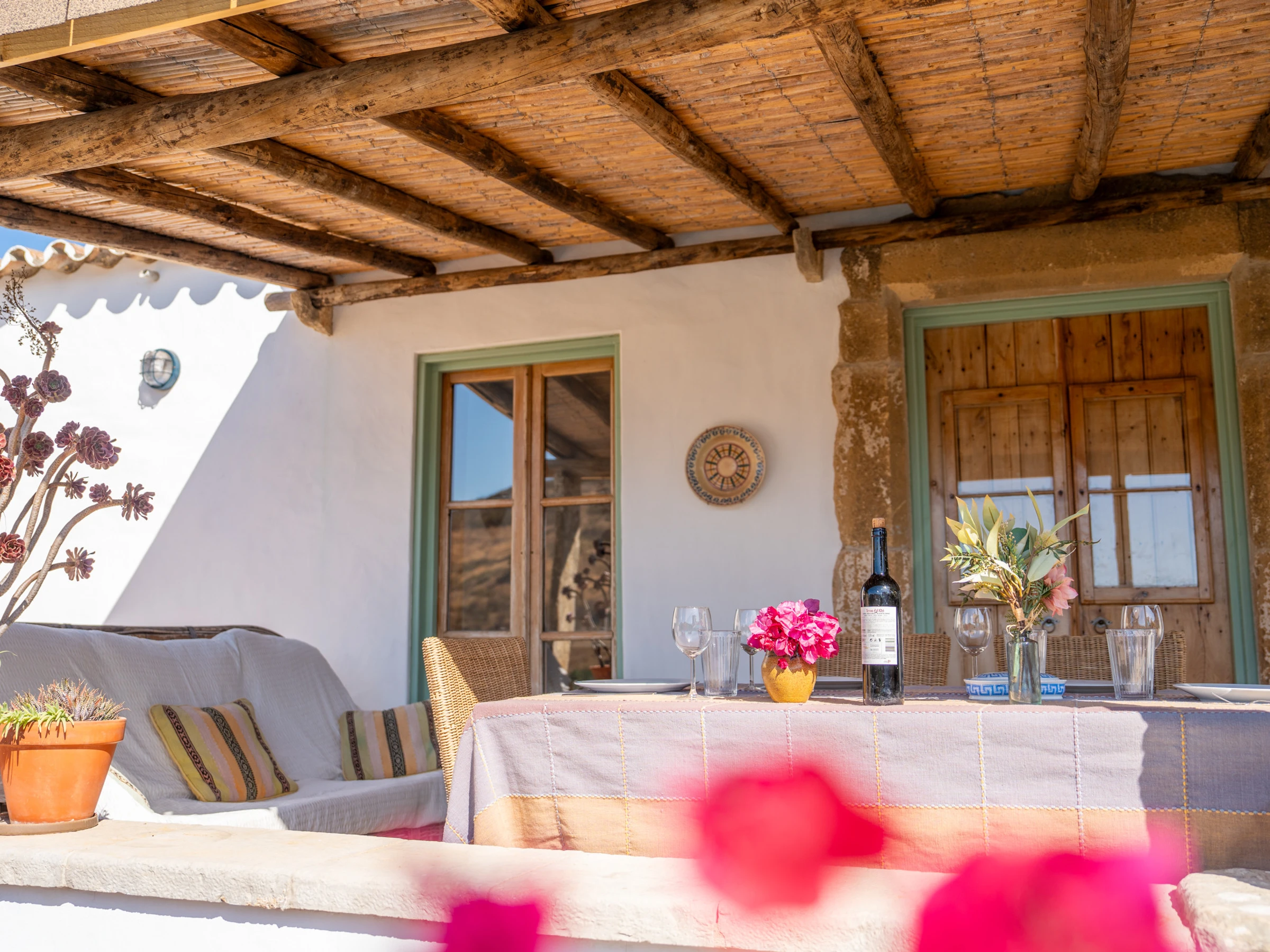 Si vous aimez les cottages rustiques traditionnels, c'est le choix parfait ! Les murs en pierre, les plafonds à poutres apparentes et le sol en pierre naturelle créent une ambiance authentique et intemporelle. La cuisine en bois, comprenant un lave-vaisselle, est spacieuse et bien équipée, avec une grande table à manger idéale pour les repas en famille ou les rassemblements décontractés. Celle-ci mène au salon, qui dispose de deux canapés confortables, d'une télévision et d'un Wi-Fi fiable, avec la climatisation qui maintient la fraîcheur en été et un poêle à bois apportant chaleur et charme pendant les séjours d'hiver. La maison principale dispose d'une chambre double avec deux lits simples (pouvant également être transformés en un lit king-size) et d'une salle de bain attenante, tandis qu'une deuxième chambre se trouve dans une annexe charmante attenante à la maison, avec un magnifique lit king-size — suffisamment proche pour la commodité, tout en offrant de l'intimité. Veuillez noter qu'il y a un chemin avec quatre petites marches pour accéder à l'annexe.