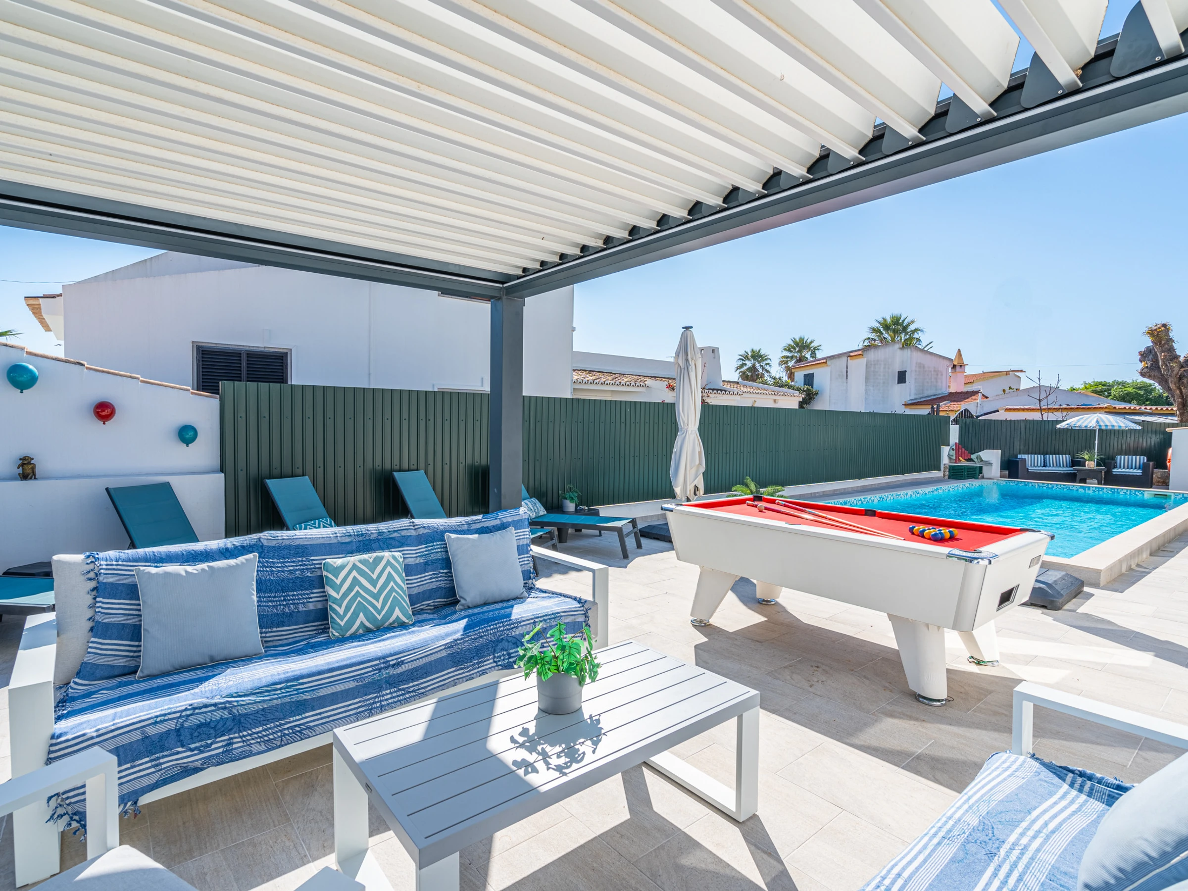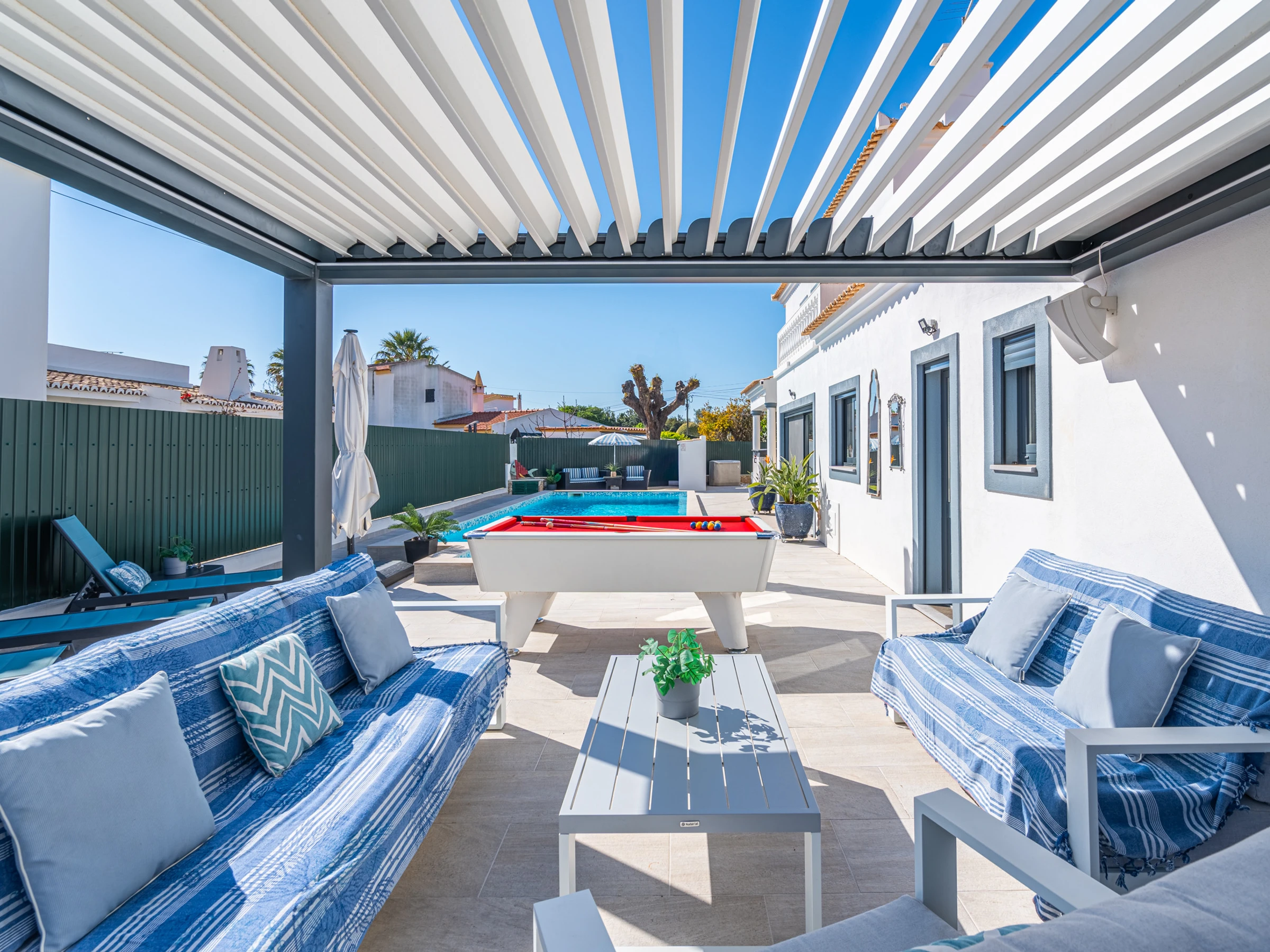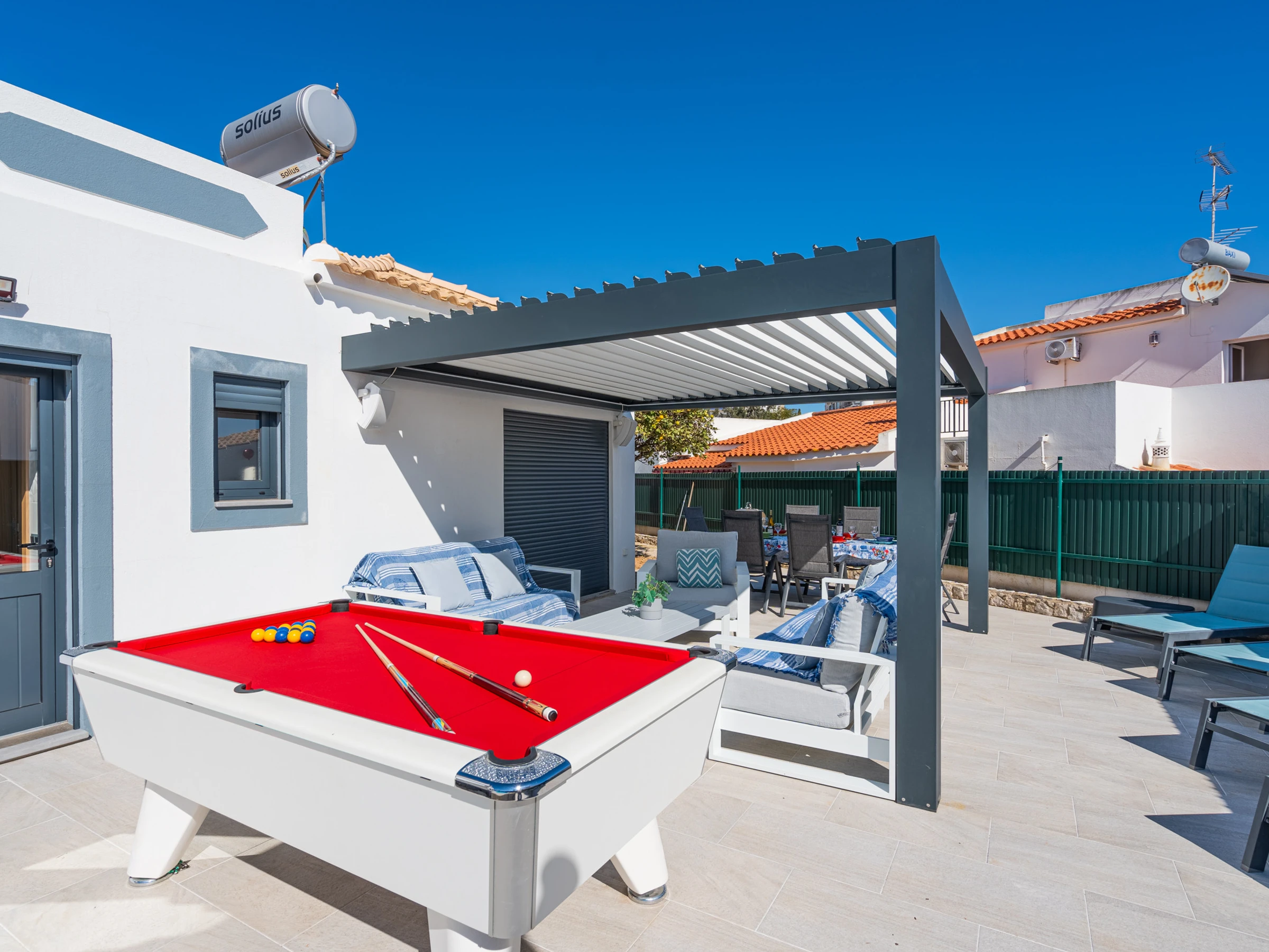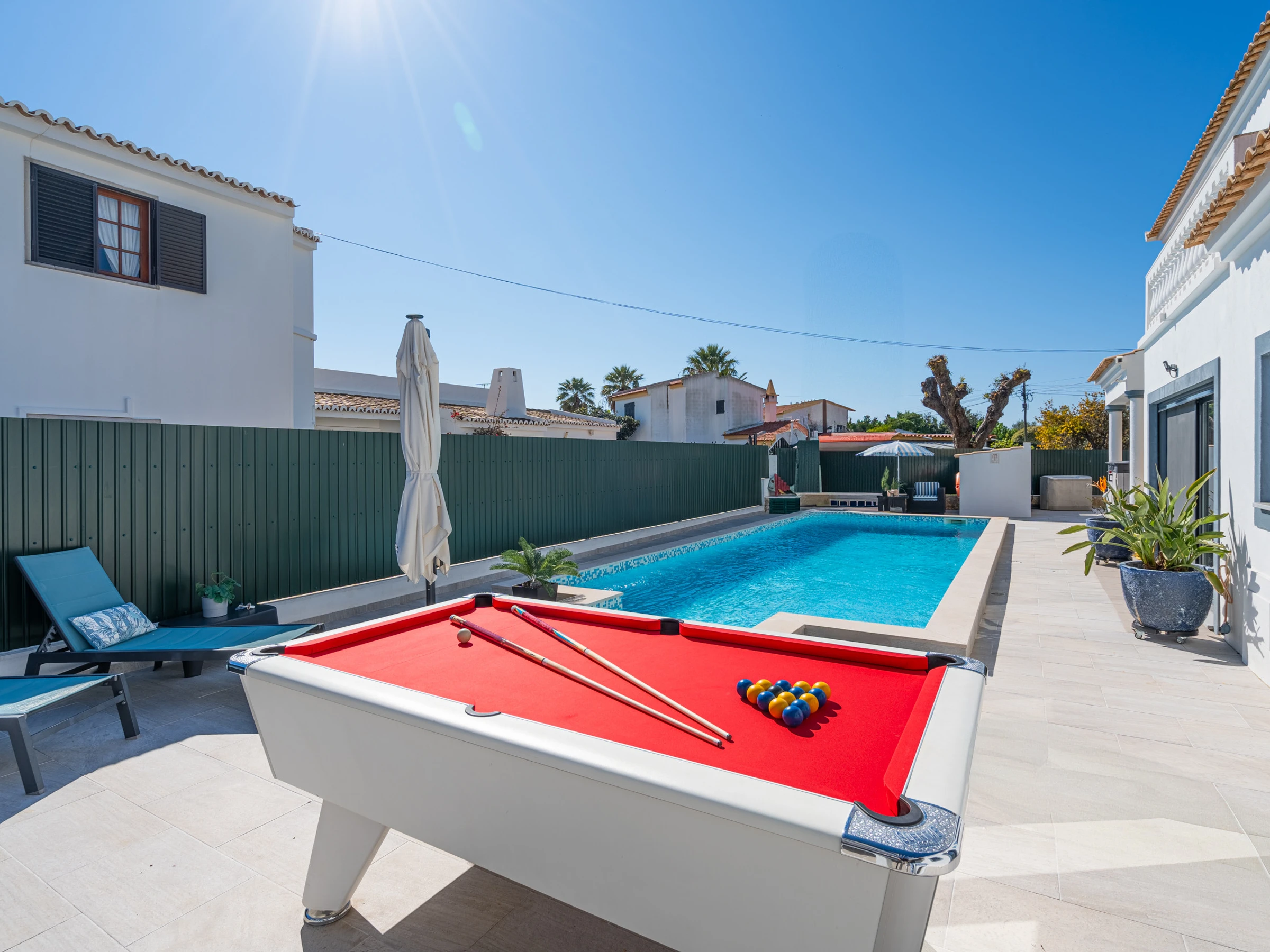 Villa élégante située près du centre de Tavira. La décoration intérieure est contemporaine et vibrante, avec des espaces de vie ouverts comprenant une cuisine superbe, un espace repas et un bureau. 6 invités sont confortablement logés, avec 1 chambre pratiquement située au rez-de-chaussée. Les équipements extérieurs comprennent une magnifique piscine, un billard, un espace repas en plein air et un jardin sécurisé. Une promenade de 20 minutes vous mène aux restaurants, aux boutiques traditionnelles et à la navette vers la magnifique Île de la Plage de Tavira.