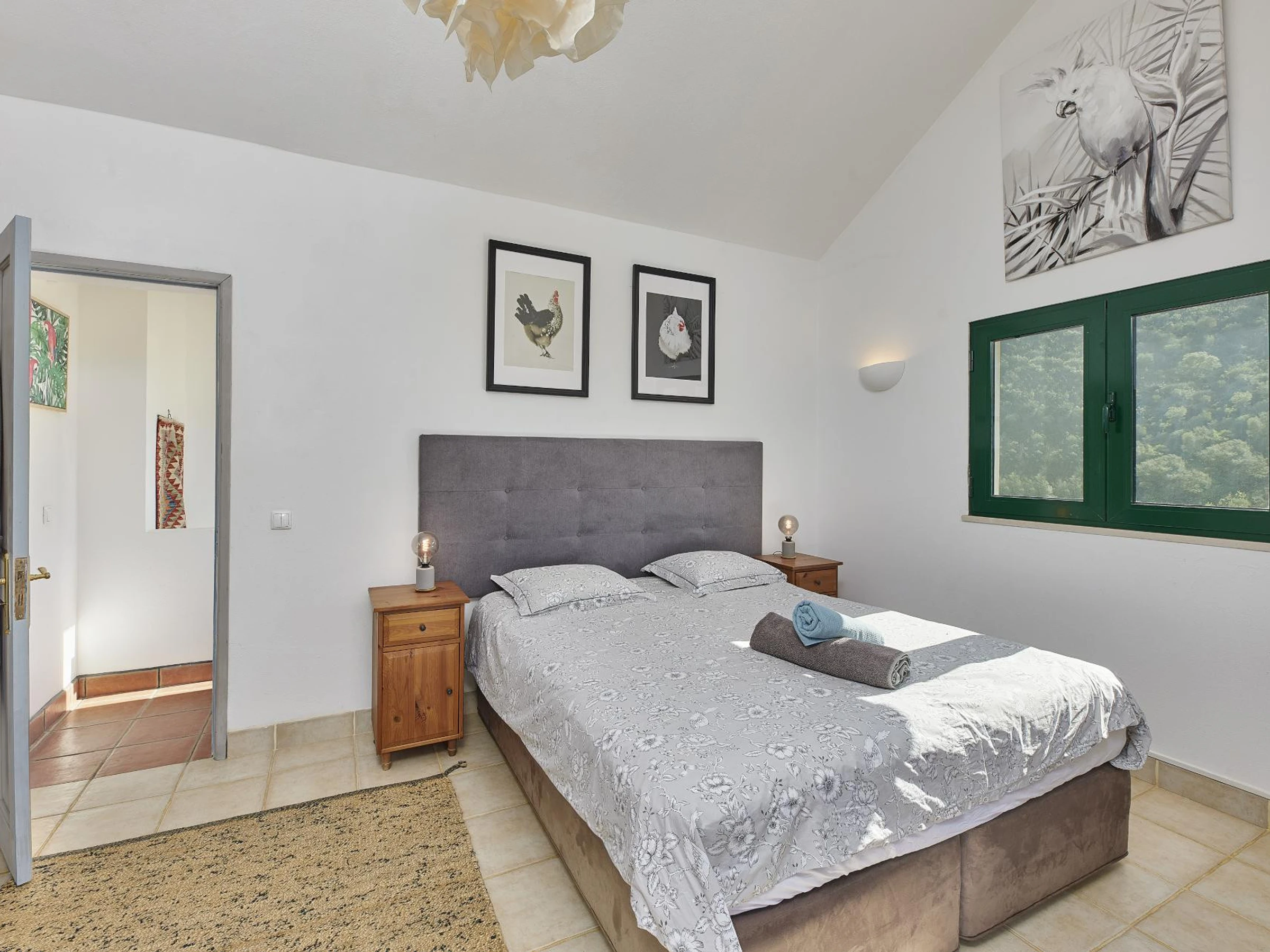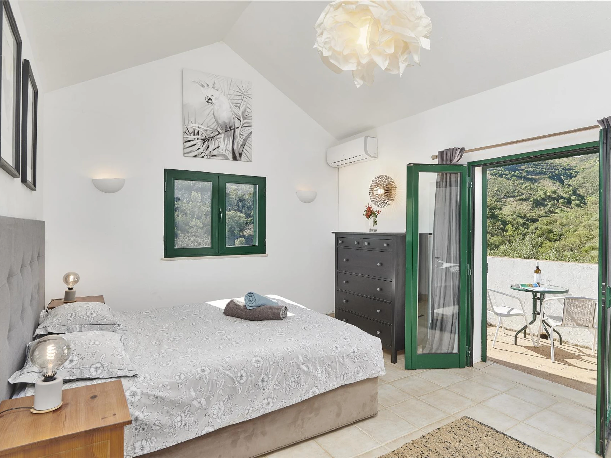 Également au rez-de-chaussée, il y a une chambre double pratique et une salle de bain séparée, parfaite pour les invités qui préfèrent un accès facile. À l'étage, la chambre principale dispose d'une salle de bain attenante et d'un balcon privé donnant sur la vallée, offrant un endroit serein pour profiter des vues du matin.