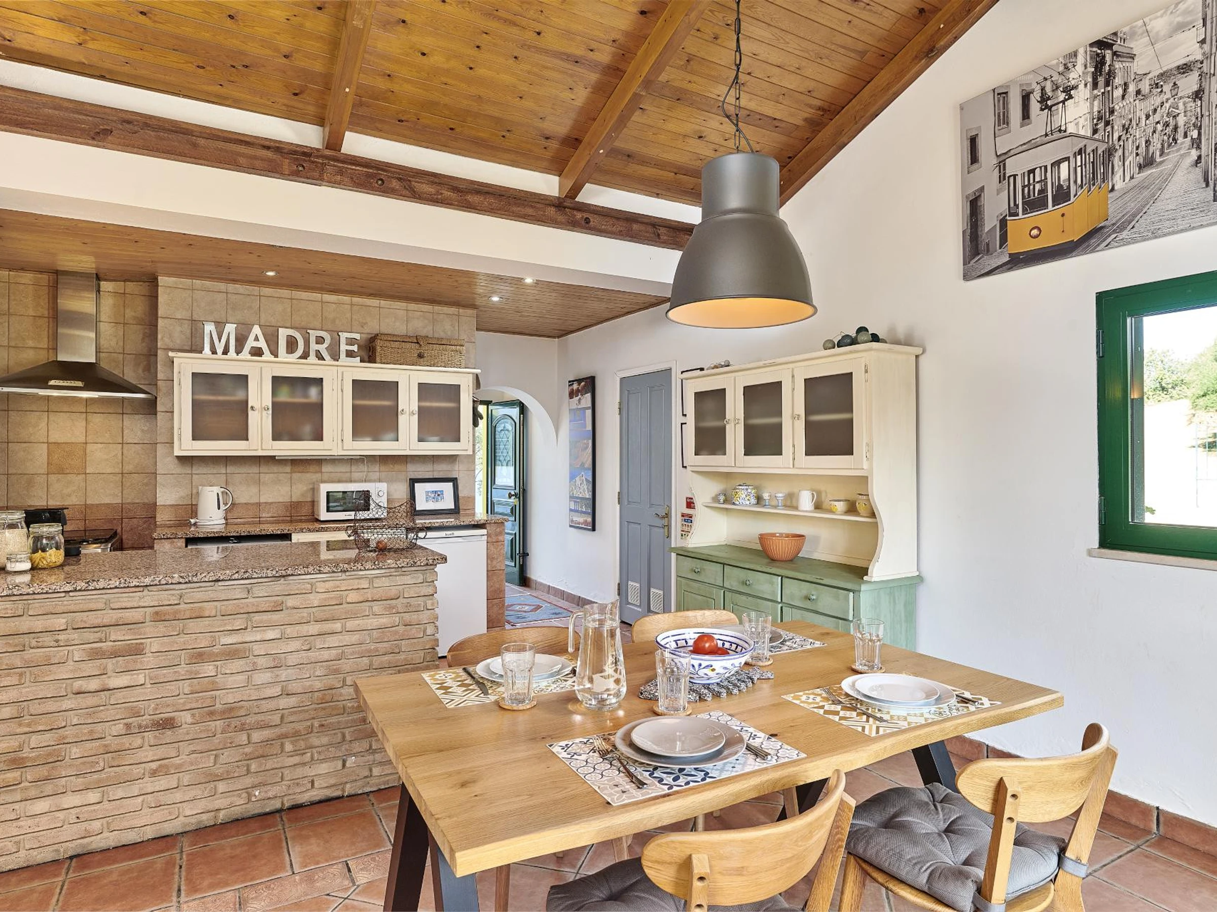 Casa Brisa do Rio est une charmante villa sur deux niveaux conçue dans un style traditionnel de ferme. Le rez-de-chaussée ouvert comprend une cuisine bien équipée avec des détails classiques de ferme, menant à travers une élégante arcade vers l'espace à manger en chêne, parfait pour les petits-déjeuners ou les repas à l'intérieur. Au-delà de l'espace à manger, le salon offre des canapés confortables, idéaux pour se détendre ou lire. La villa est équipée d'un mélange de chaînes portugaises et anglophones sur la télévision, et un Wi-Fi fiable dans toute la maison garantit que vous pouvez rester connecté même dans cet endroit paisible et isolé.
