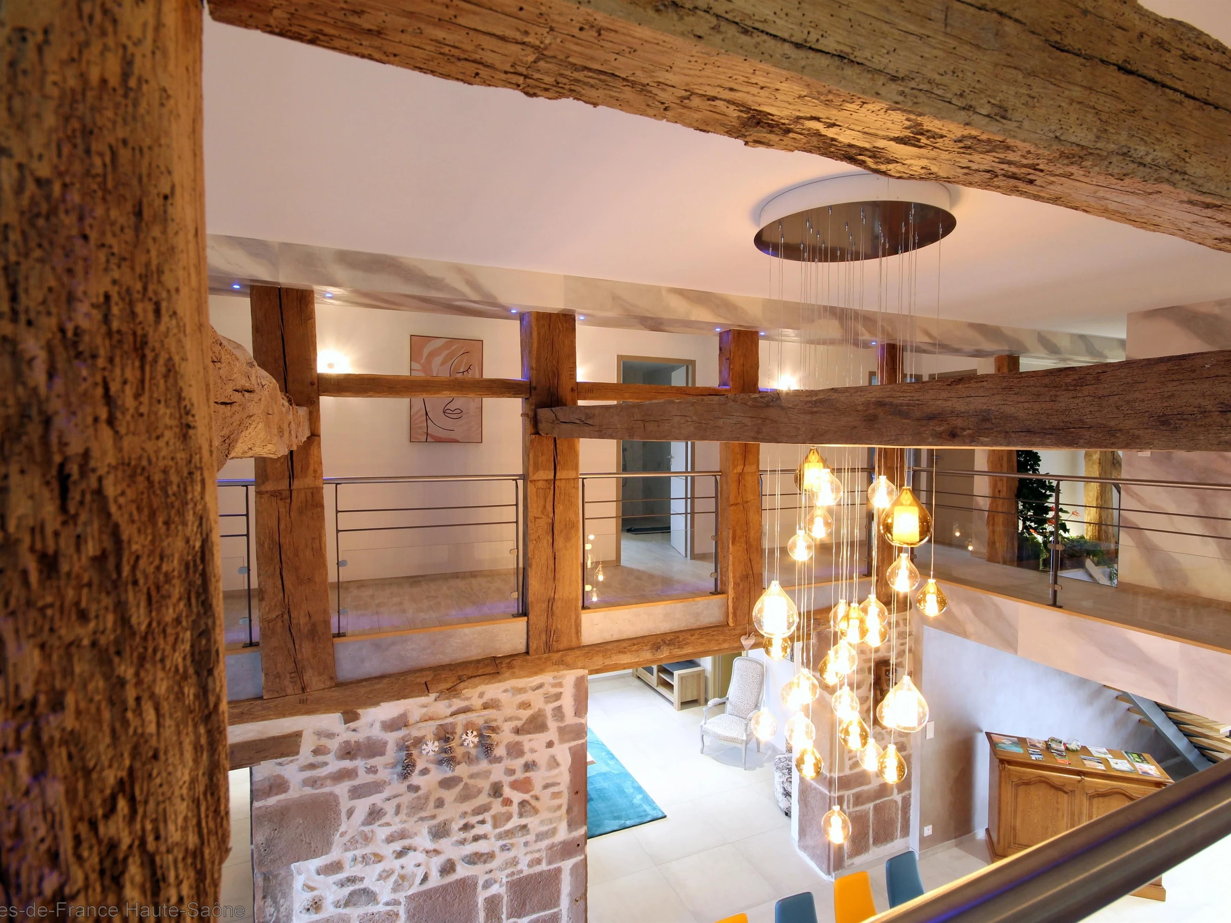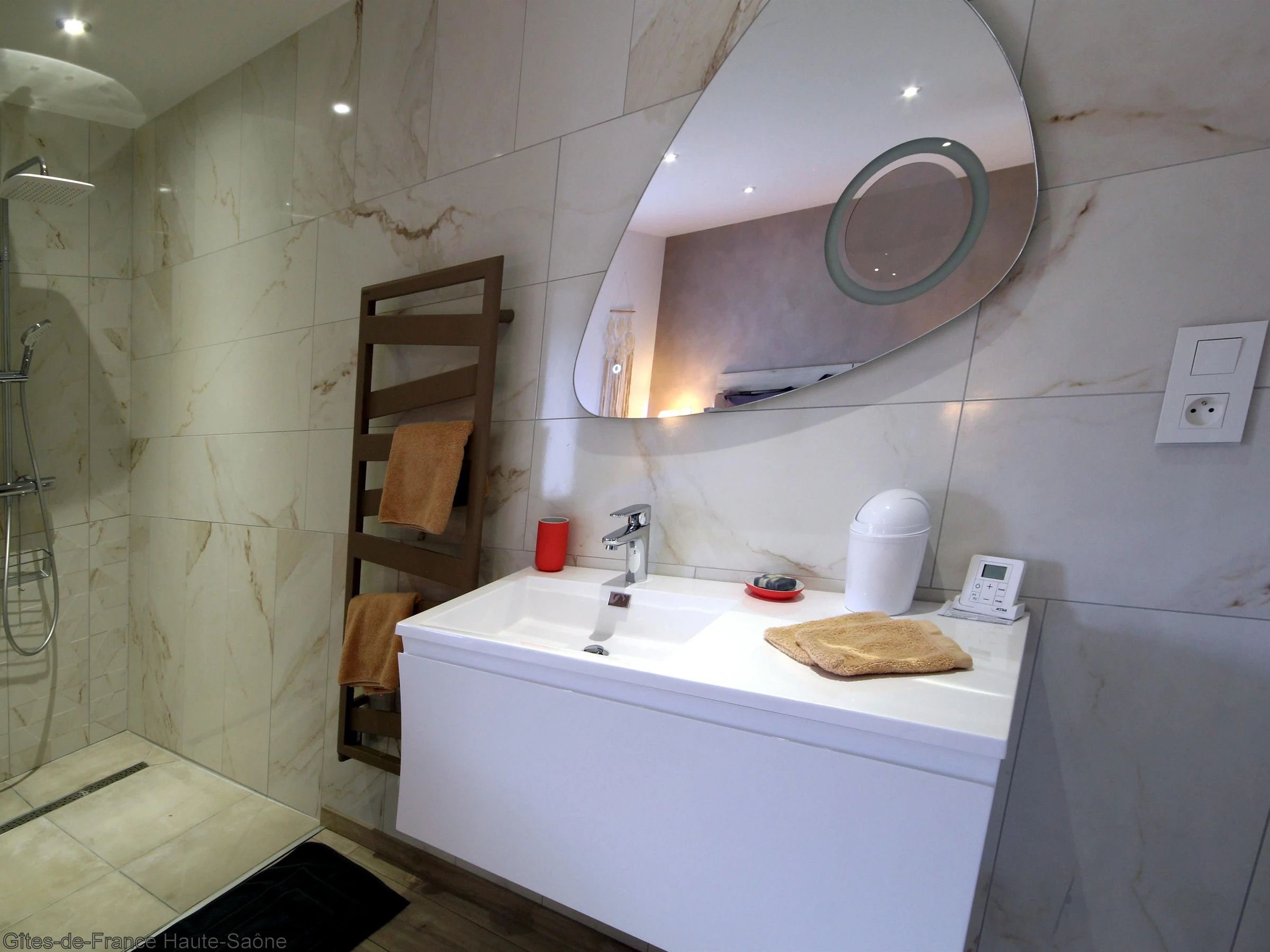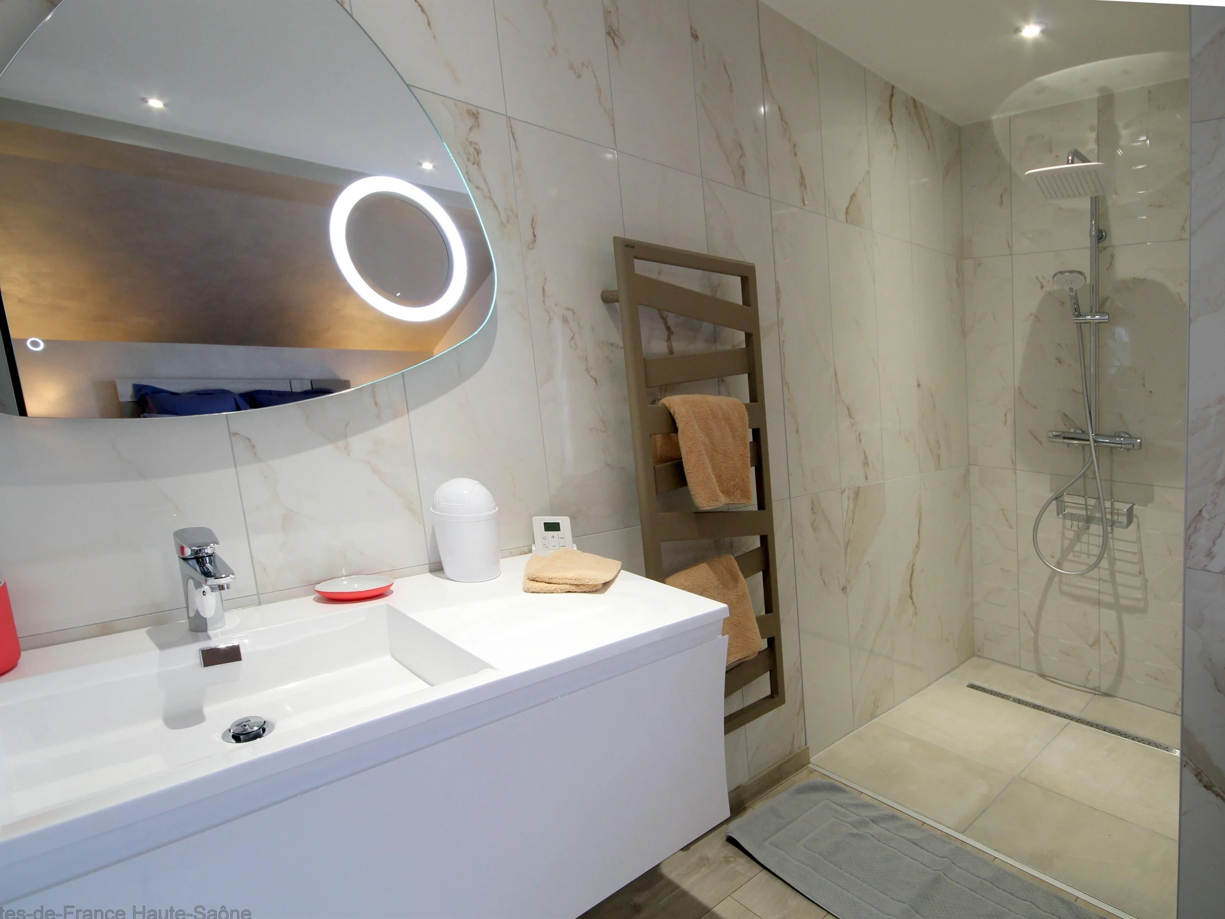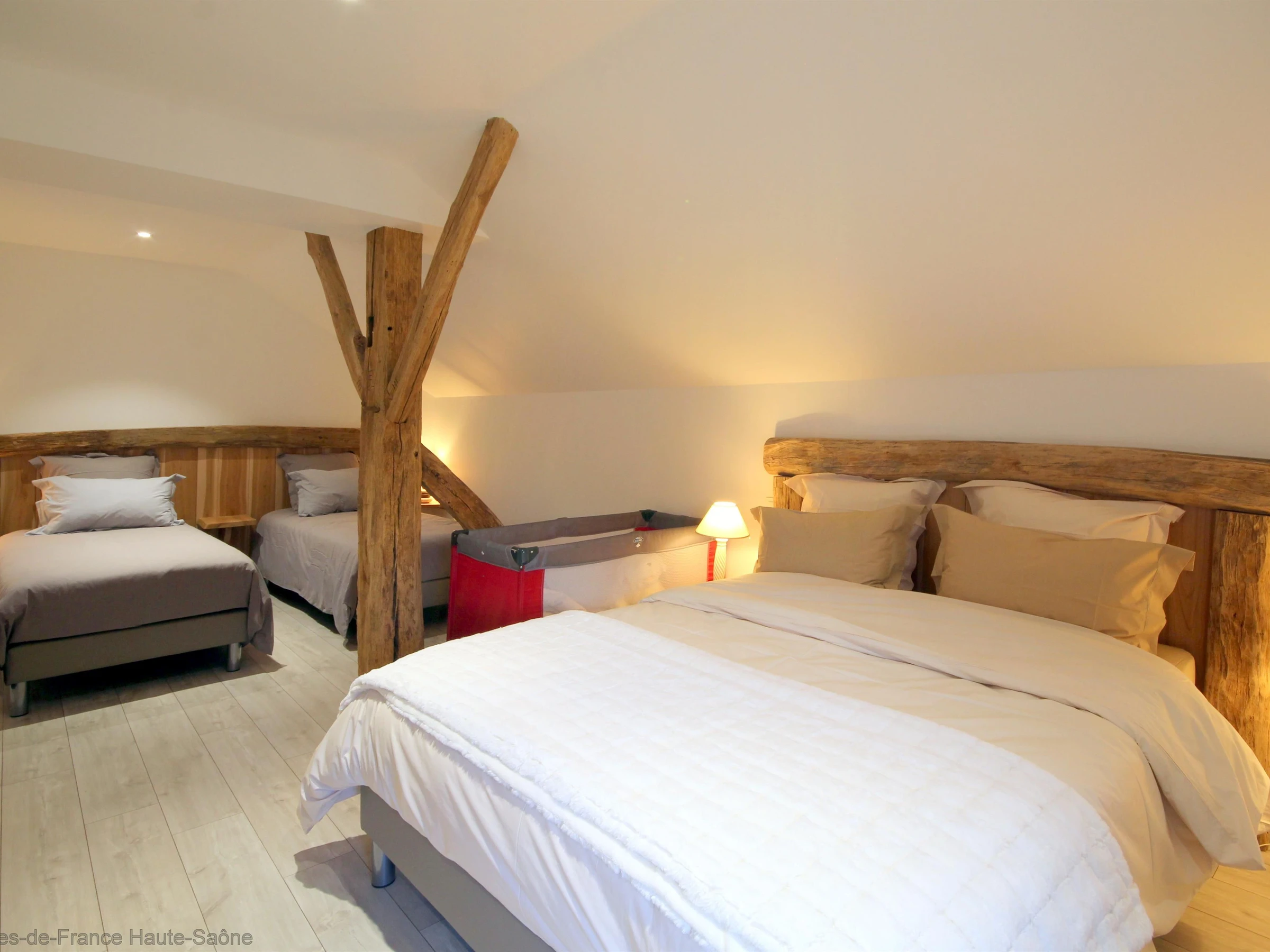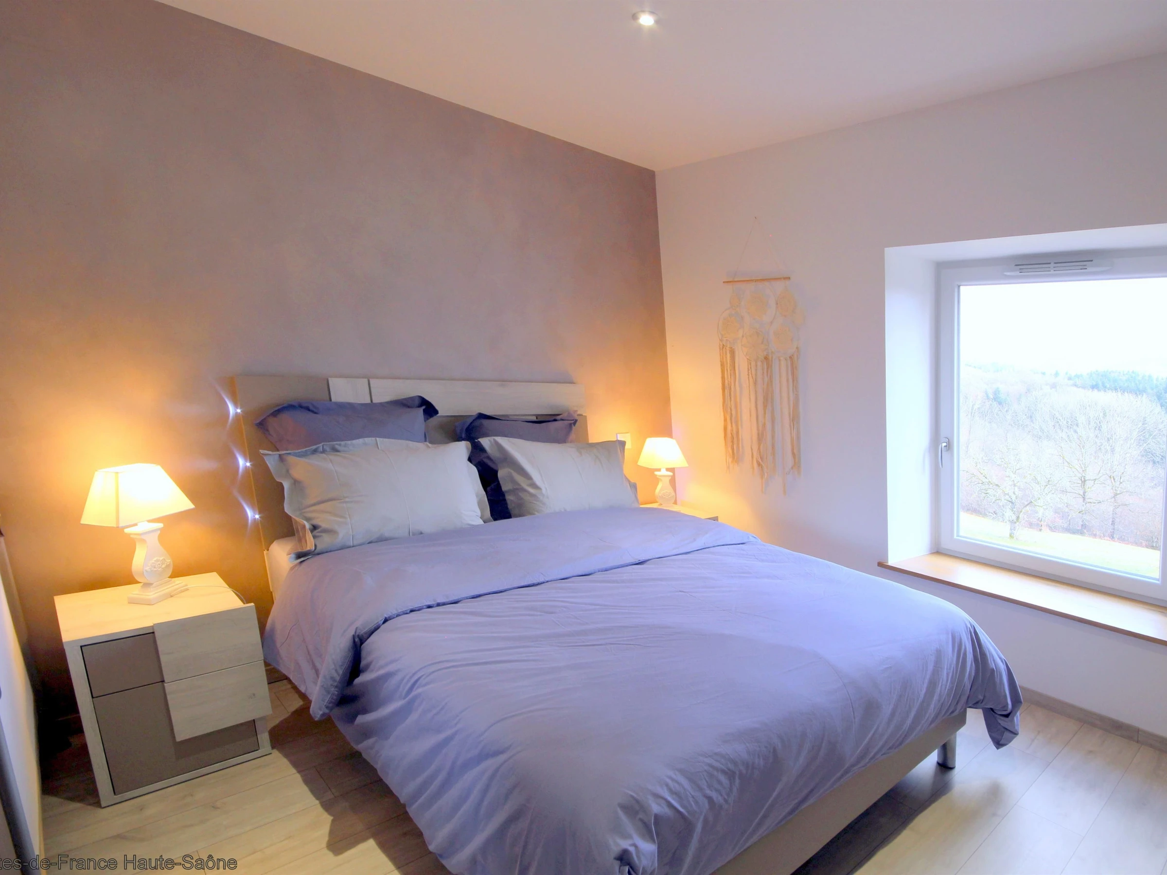 Dans les Vosges du Sud: découverte du Plateau des Mille Etangs et des Vosges Saônoises ; Écomusée du Pays de la Cerise à Fougerolles, thermes et casino de Luxeuil-Les-Bains. Nombreuses randonnées pédestres ou VTT, pêche. Pour les enfants : Parc animalier de Saint Valbert et zone de loisirs de la Praille à Melisey. Sports d'hiver : station de la Planche des Belles Filles à 27 km, ou Larcenaire à Bussang (28 km). Au rez-de-chaussée: cuisine moderne entièrement équipée avec électroménager de grande qualité, salle à manger spacieuse et lumineuse avec poêle à bois, salon avec canapé, fauteuils et TV écran plat. Buanderie, coin-douche, WC indépendant. A l'étage, 5 chambres : 2 chambres avec chacune 1 lit de 160 cm et salle d'eau privative, 1 chambre avec 1 lit de 160 et salle d'eau donnant sur une 4ème chambre (communicante) avec également 1 lit de 160, 1 chambre "familiale" avec 1 lit de 160 et 2 lits de 90, avec salle de bain attenante, WC indépendants. Agréable espace-détente avec sauna, transats et douche italienne. Possibilité de 2 à 4 personnes supplémenatires dans le gîte mitoyen (70G4152). Situé en pleine forêt (accès par une chemin en très bon état) sur un terrain de 40 hectares, au bord d'un étang privé. Extérieur en cours d'aménagement.