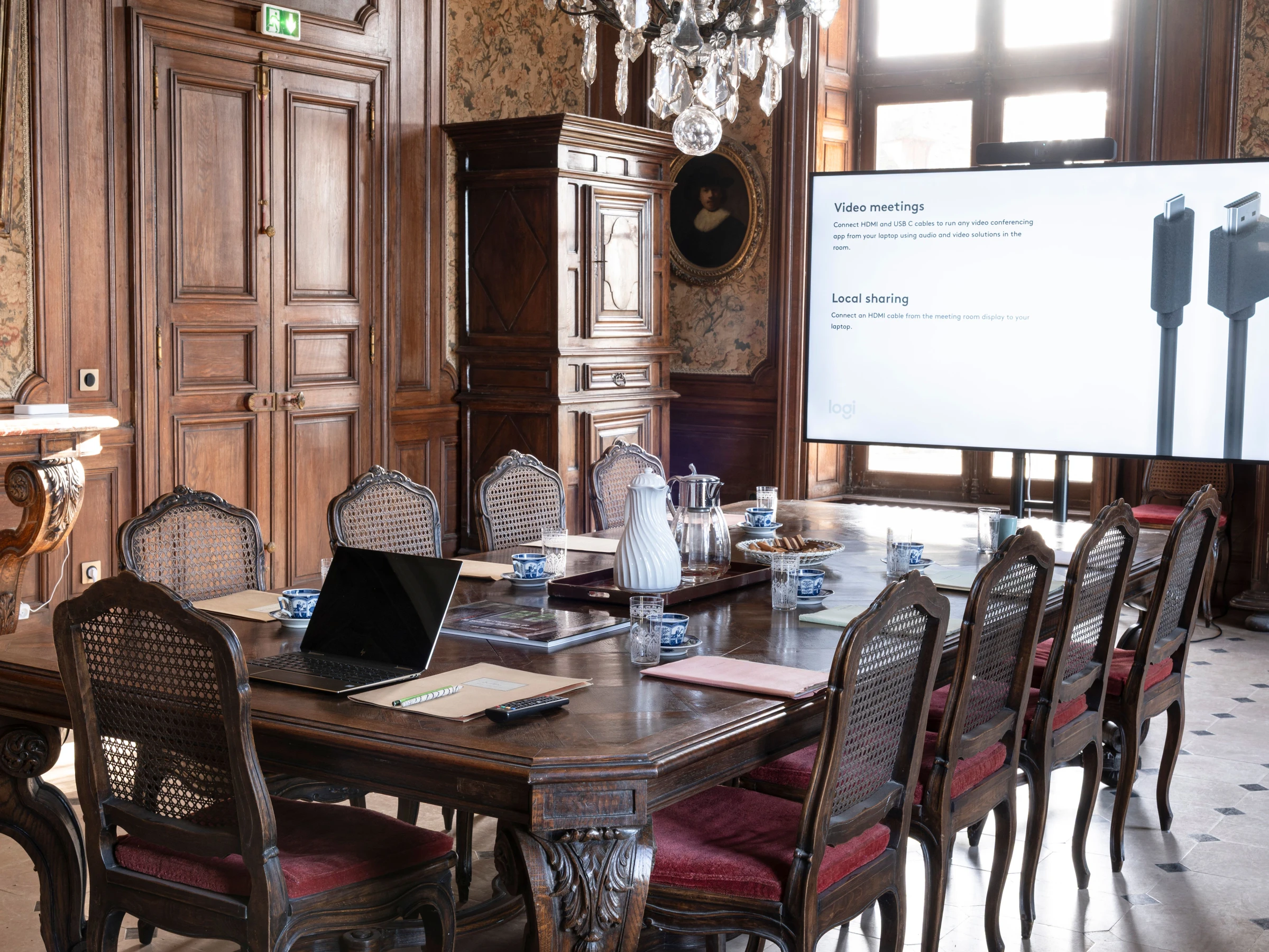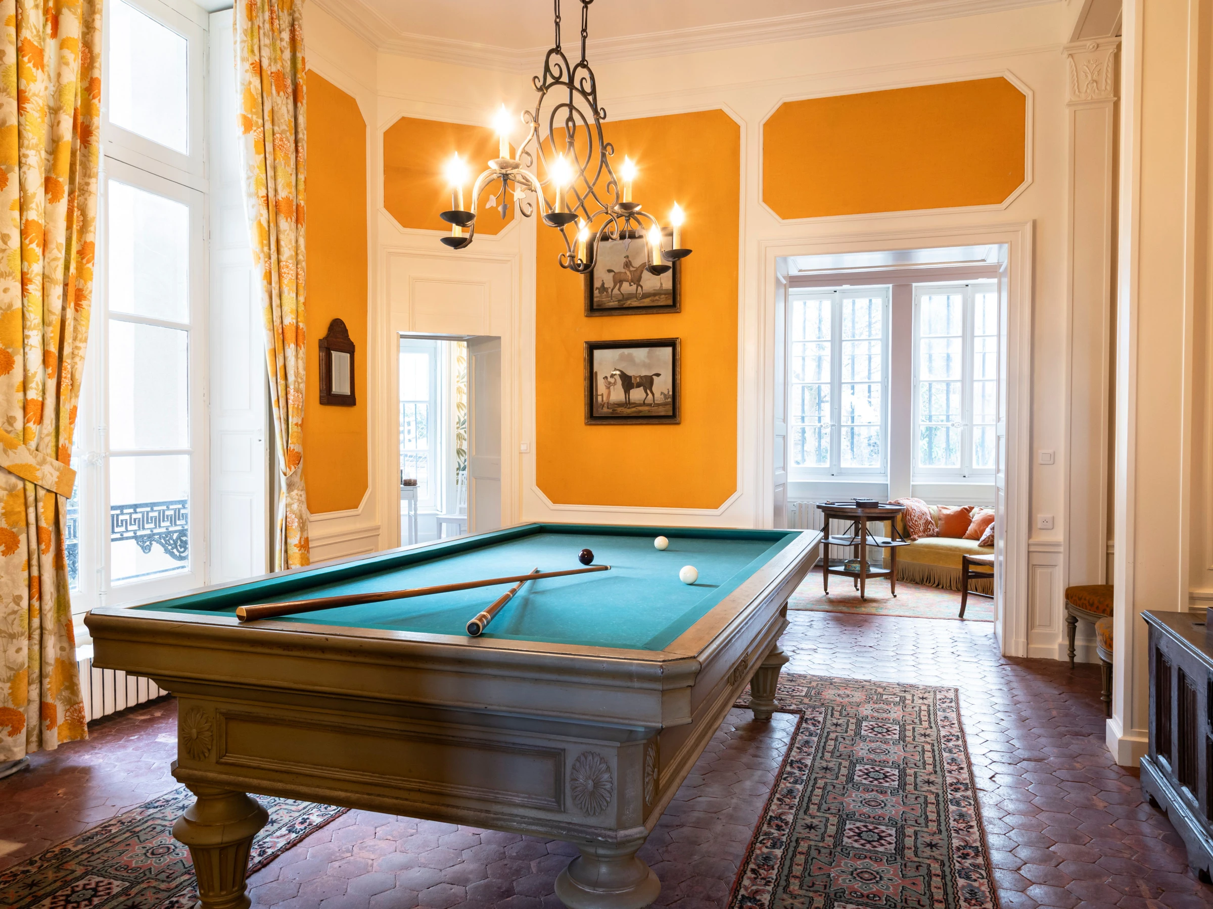 Rez-de-chaussée : espaces de réception avec salle de réunion de 70 m², salon de musique avec piano, salle de billard, bibliothèque, salon intime, vestiaire. Plusieurs chambres avec lits modulables et salles de bain ou d’eau privatives.