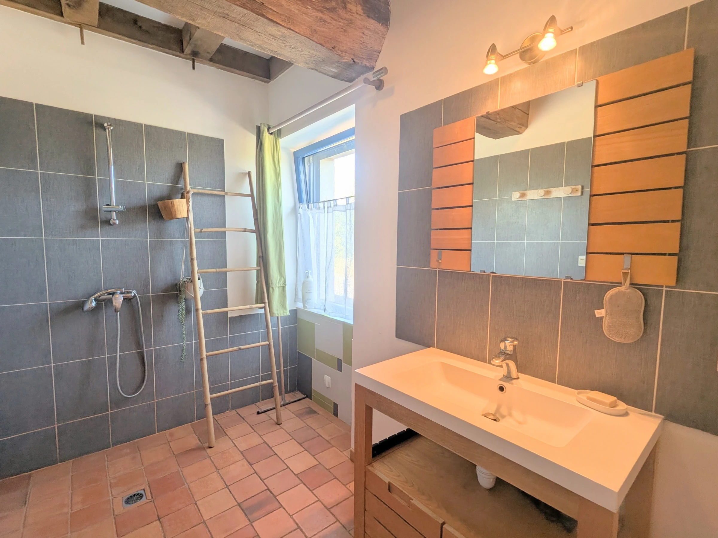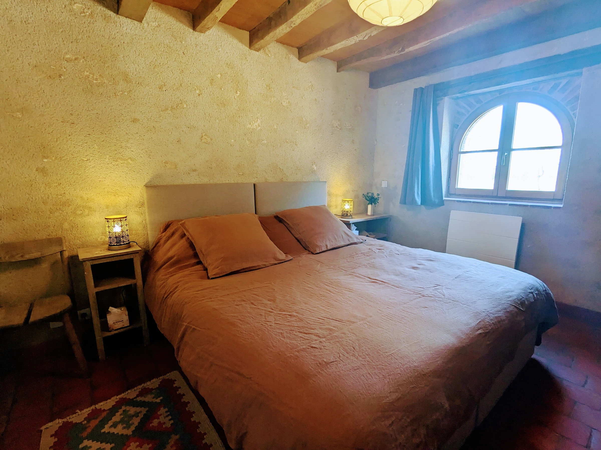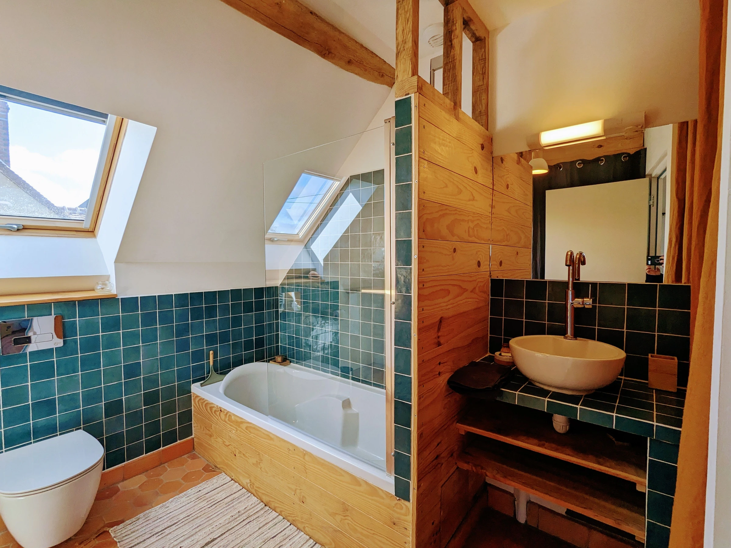 À 500 mètres à pied : Rdc, pièce à vivre avec coin salon et poêle à bois vitré, espace salle à manger-cuisine. Entrée: Espace pensé pour accueillir nos amis à quatre pattes, 1 salle d'eau / wc (douche à l'italienne, machine à laver et sèche serviettes), 1 chambre avec 1 lit 180x190 cm dissociables en deux lits de 90x190 cm si besoin.