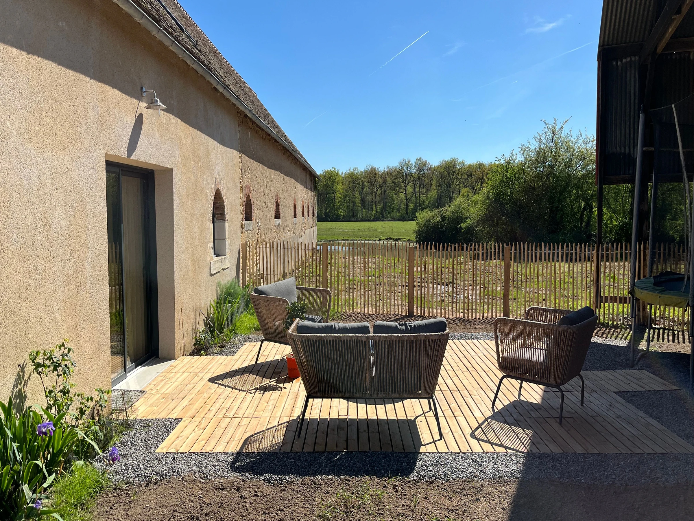 En Berry, en Brenne et proche de la Vallée de la Creuse, sur un Domaine agricole ensemble de deux maisons typiques berrichonnes situées à 230 mètres à vol d'oiseau l'une de l'autre (ou 500 mètres à pied). Chacune avec jardin privatif et cour partagée, vue sur une mare à la biodiversité riche, pour chaque gîte,