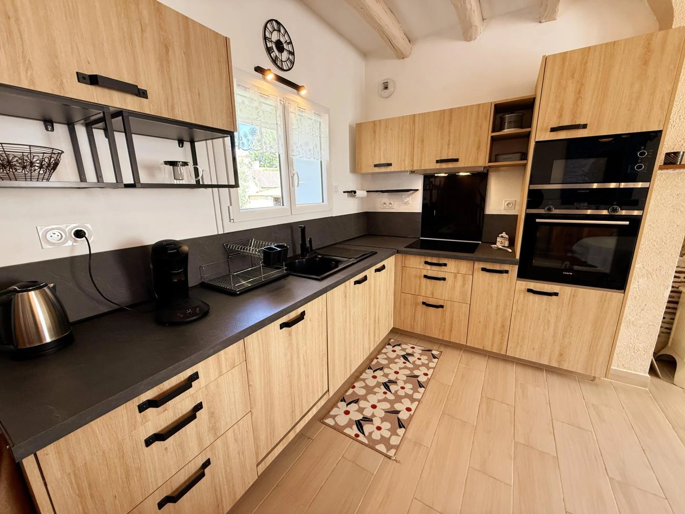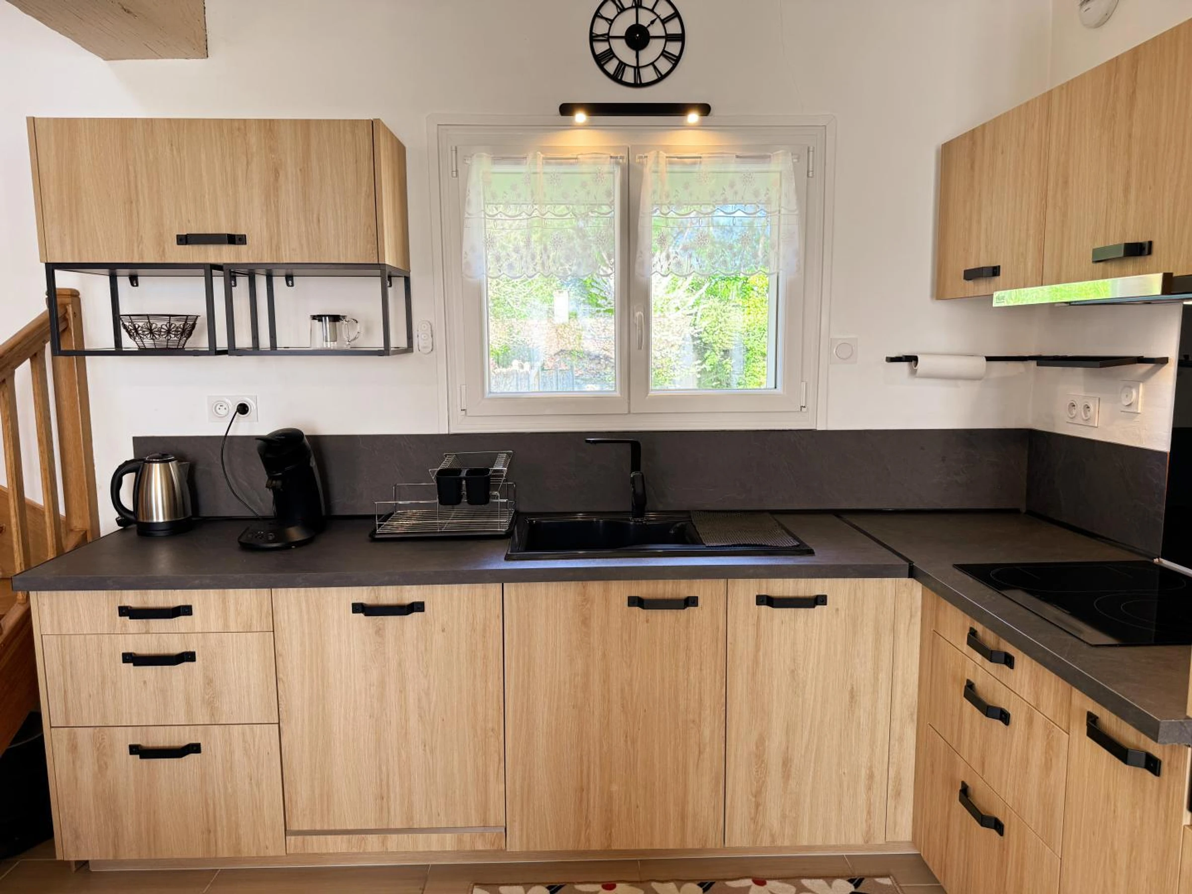 Côté extérieurs, vous bénéficiez d'une cour fermée à l'avant et d'un jardin clos à l'arrière avec salon de jardin. Jeux de plein air à disposition : mölkky, balançoire, croquet… pour des moments conviviaux en extérieur.