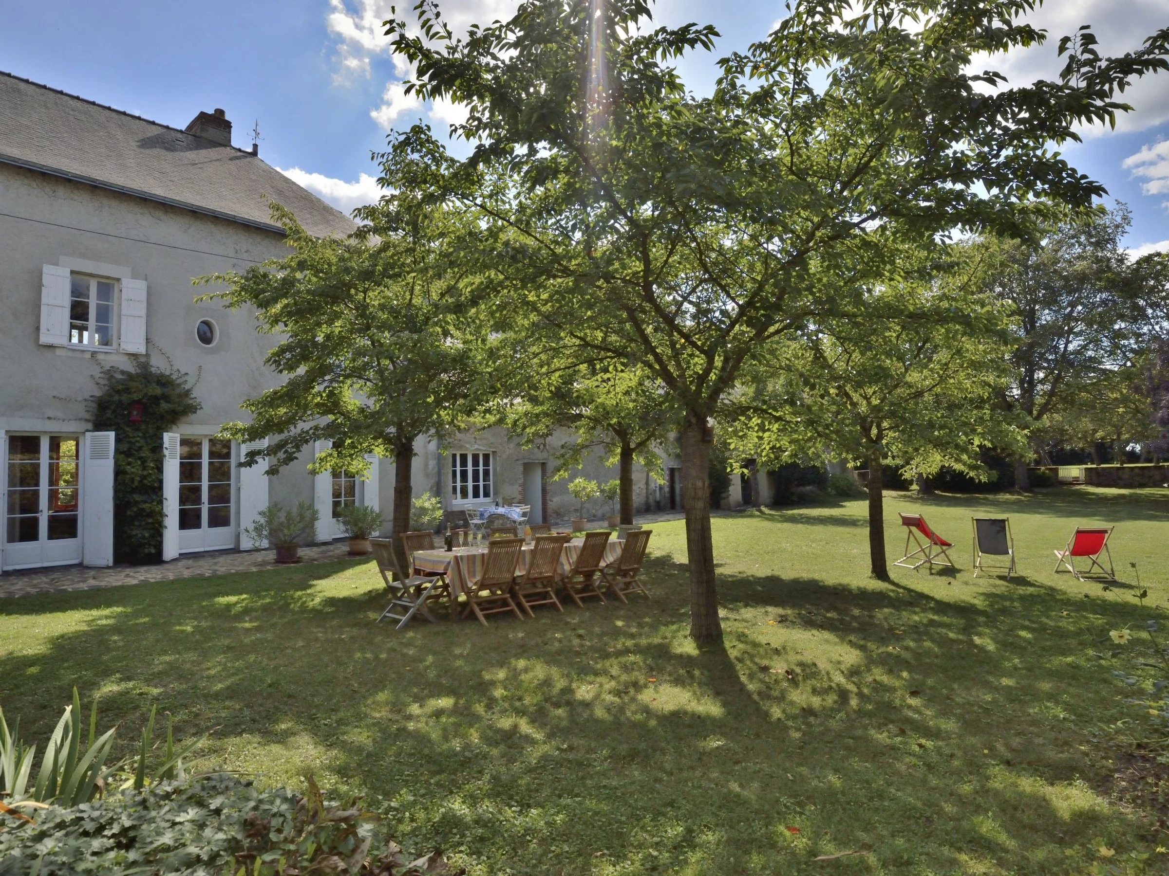 Maison de maître "Langevine". Dans la localité Thorigné d'Anjou, à 28 km du centre d'Angers (Vallée de la Loire), à 23 km du lac. A usage privé: grand jardin 7'000 m2 (clôturé) avec pelouse et arbres, piscine à l'abri des regards, cloturée (13 x 5 m, profondeur 100 - 150 cm, disponibilité saisonnière: [hidden] - [hidden] Tennis, ping-pong, place de parking (pour 5 voitures). Magasins 4 km, supermarché 6 km, restaurant 4 km, arrêt de bus "Grez-Neuville" 5 km, plage de sable "Rivière La Mayenne (Chambellay)" 8 km, parc "Isle Briand" 3 km. Terrain de golf (18 trous) 9 km, centre équestre 4 km. Attractions à proximité: "Guinguette" sur le bord de la Mayenne 2 km, Grez Neuville (Mayenne-départ bateaux) 5 km, La Jaille Yvon (canoe-kayak) 12 km, Etang St Blaise-Noyant la Gravoyère 23 km, Saumur 80 km, Fontevraud (Abbaye) - Nantes- Rennes 100 km. Région de randonnées: sentiers balisés 10 m. La piscine se situe sur un terrain clos de 500 m2 accessible par une porte sécurisée. La propriété n'est pas destinée à l'organisation d'évènements.