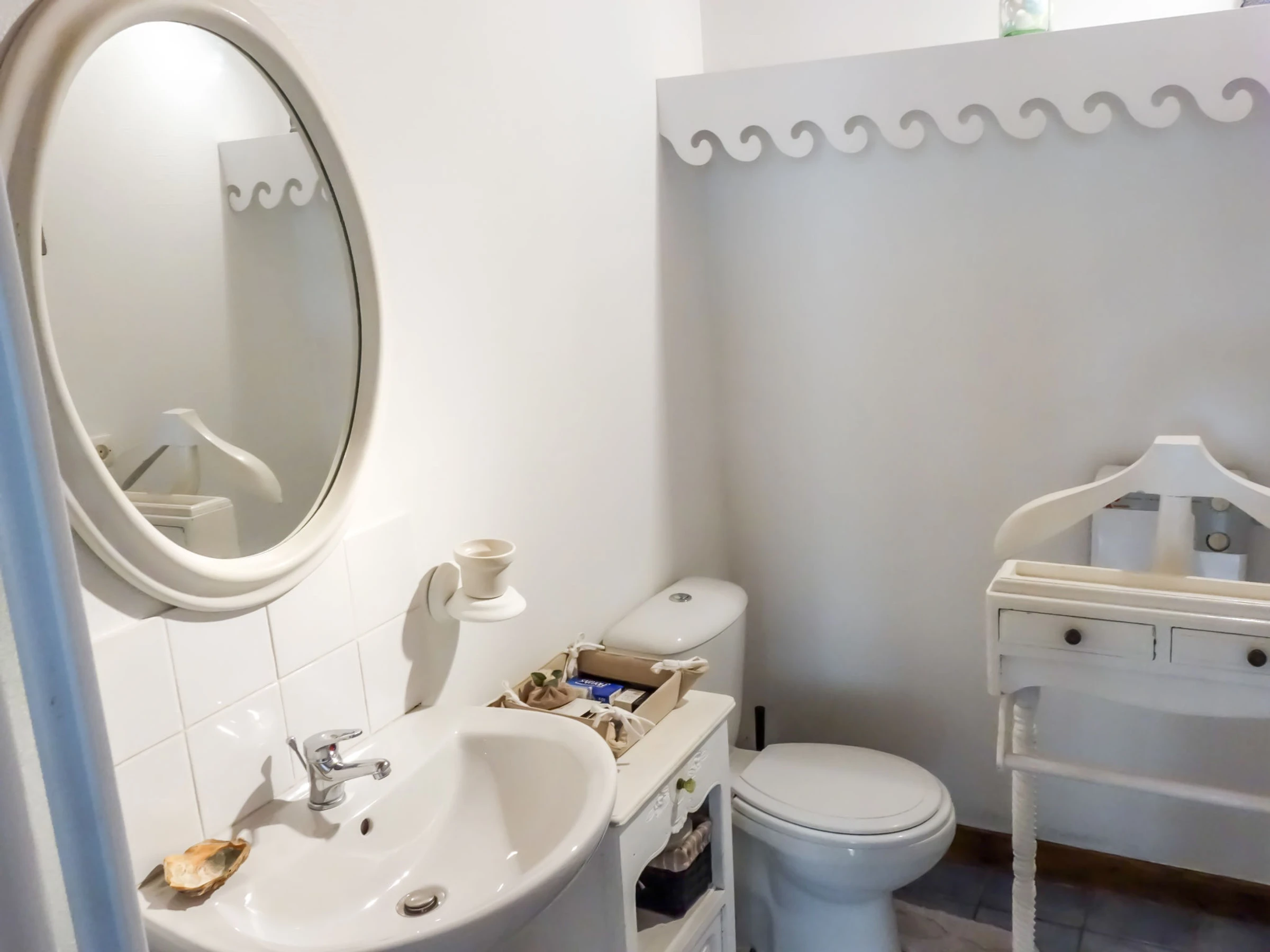 Maison 3 pièces 60 m2. Petit séjour/salle à manger avec poêle suédois, table pour les repas et TV (écran plat). Sortie sur la terrasse. Petite coin cuisine (4 plaques de cuisson, four, four micro-ondes). Douche/WC. À l'étage supérieur: (escalier raide) chambre avec passage mansardée avec 1 lit (90 cm). 1 chambre, Portes basses hauteur 110 cm avec 1 grand-lit (140 cm). Chauffage électrique. Terrasse 12 m2, tonnelle 10 m2. Meubles de terrasse, barbecue, chaises longues (2). A disposition: Internet (Connexion WIFI, gratuit). Place de parking (2 Voitures). Veuillez noter: non recommandé pour des enfants en bas âge. TV seulement FR, EN. A noter: l'accès à la chambre double se fait par une petite porte de la chambre simple.