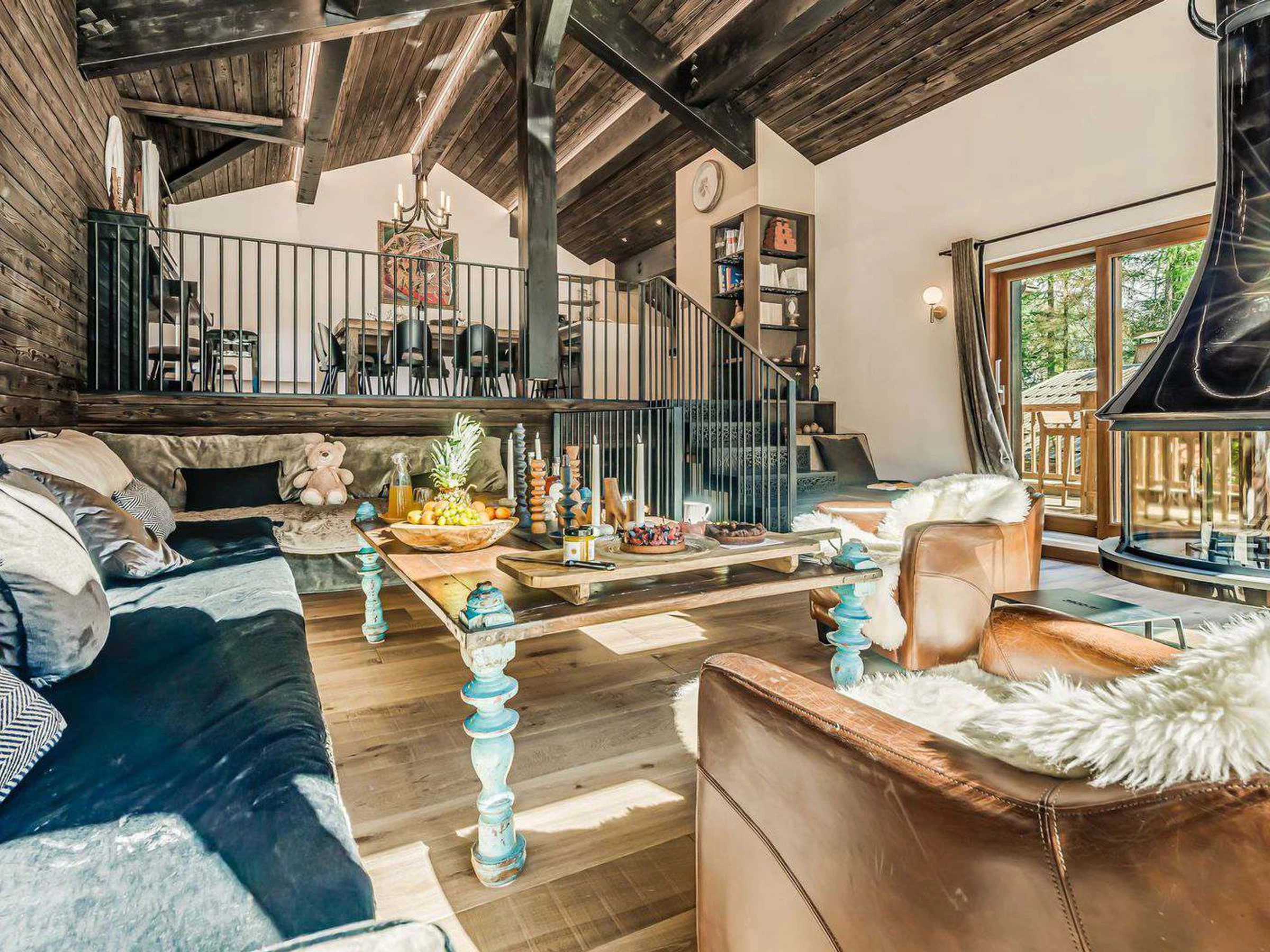 Le chalet culmine avec son grand salon - séjour - salle à manger et cuisine, qui s’étagent par demi-niveaux sous le toit et sa charpente de bois. Un piano droit à votre disposition permettra aux musiciens de partager leur art, et de rassembler vos convives autour de mélodies classiques, Jazz... et qui sait quelques tubes Rock N’ Roll...