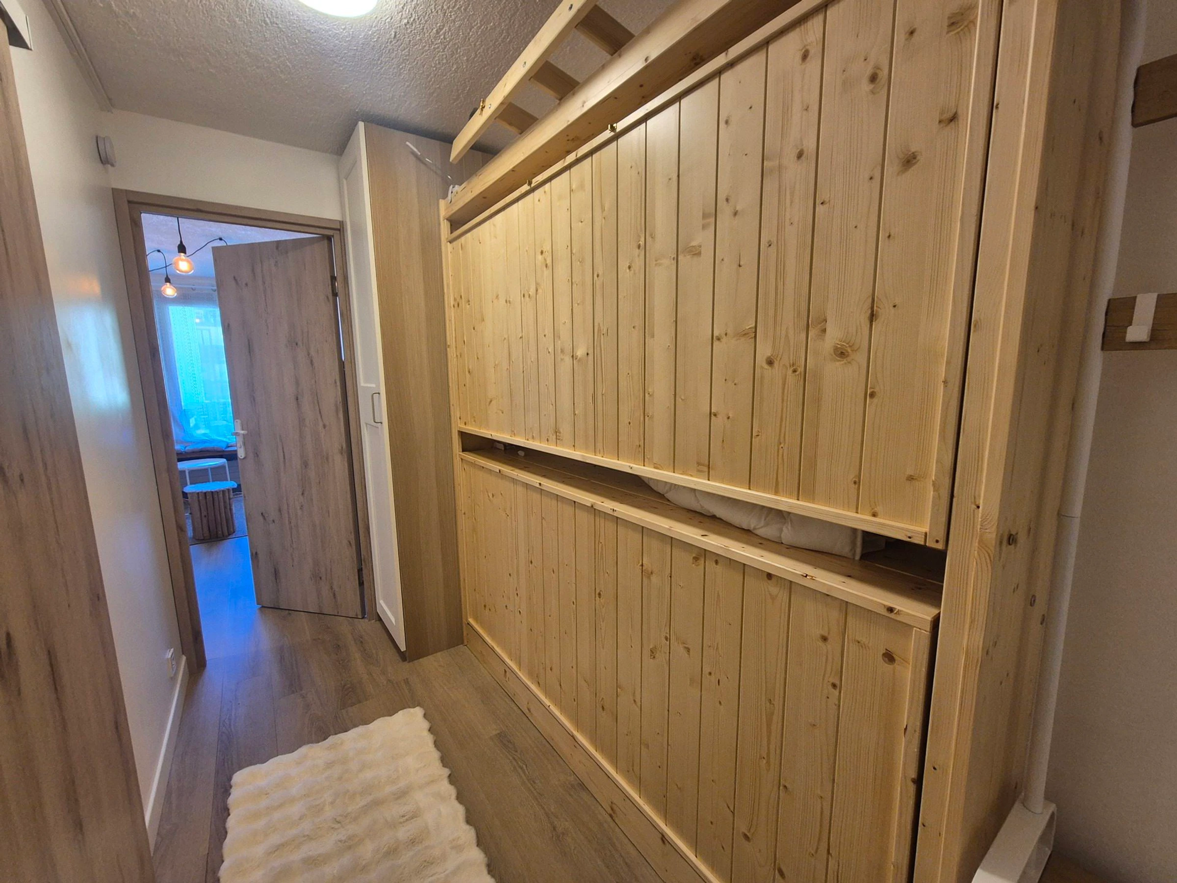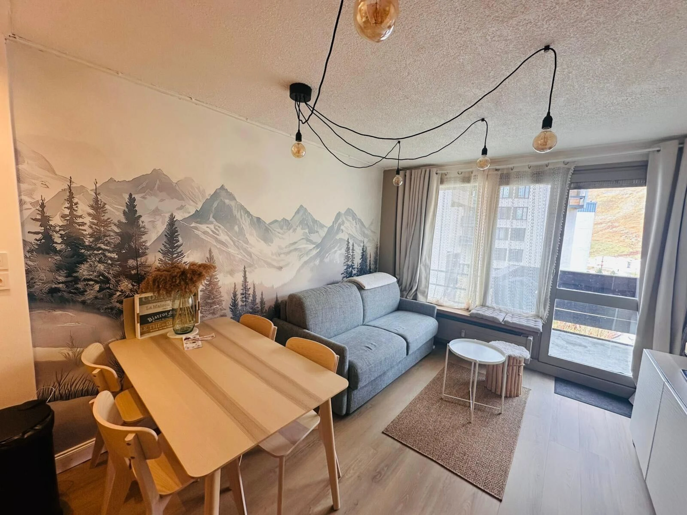 Studio de 23m² entièrement rénové, pouvant accueillir 4 personnes, situé au 1er étage avec ascenseur de la résidence Moutières B1, à Tignes Le Val Claret Haut.