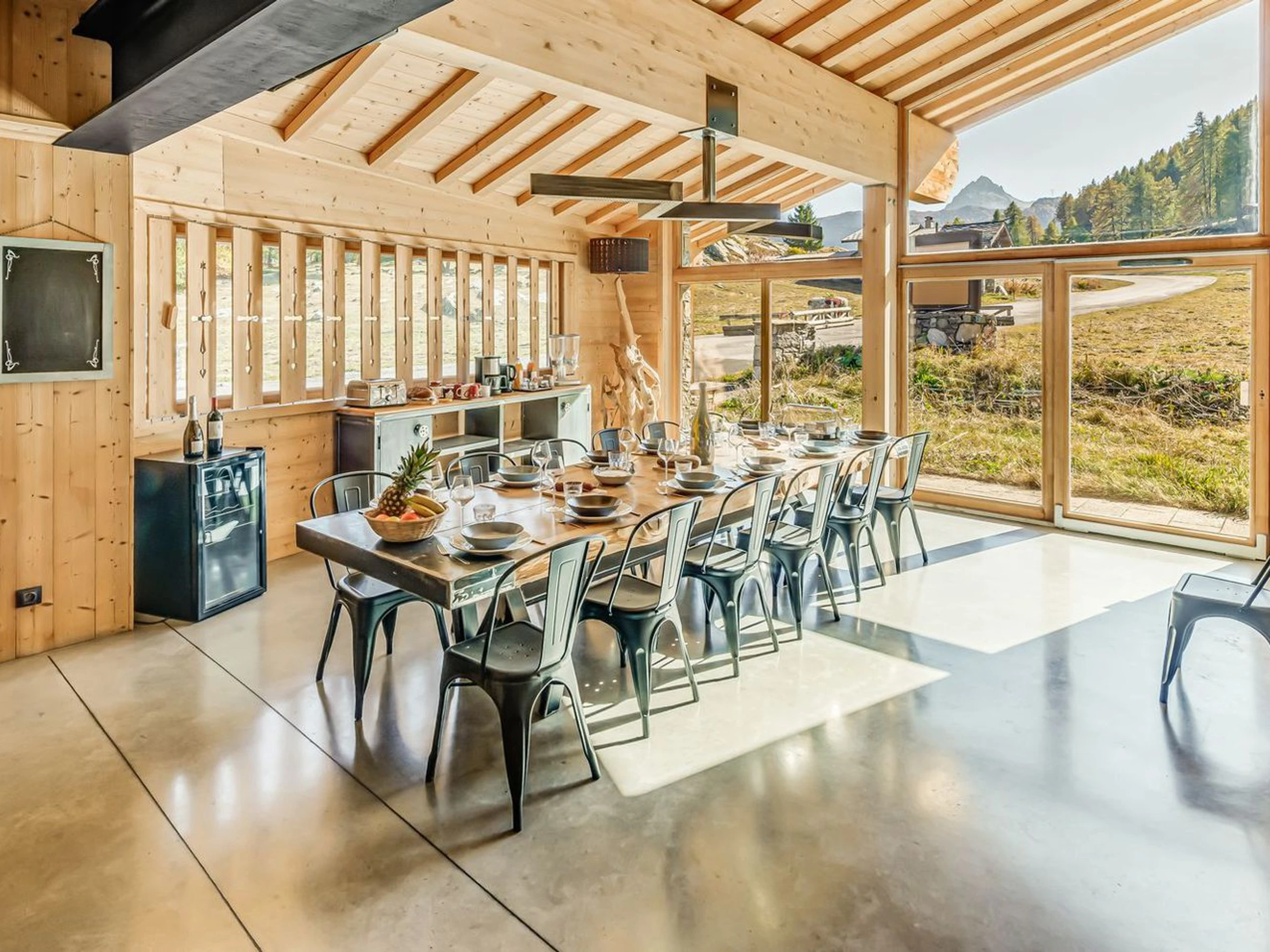 - salle à manger exposée Sud avec un ensemble table et chaises, 1 cave à vins.