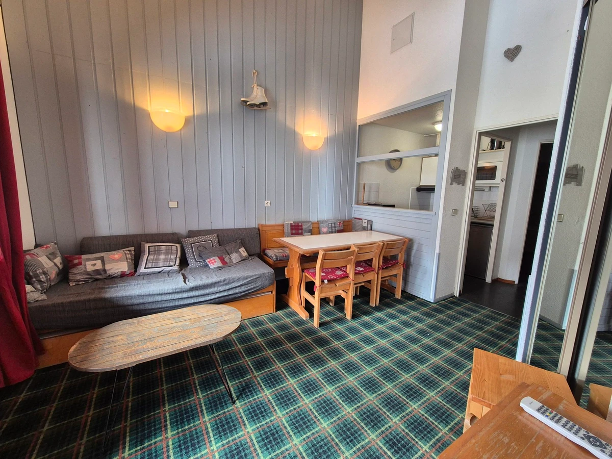 Appartement 2 pièces cabine de 35m², équipé pour 6 personnes et situé au 3ème étage avec ascenseur de la résidence "Hameau Du Borsat III", à Tignes Val Claret. Ski aux pieds, en face rdv pioupiou ESF