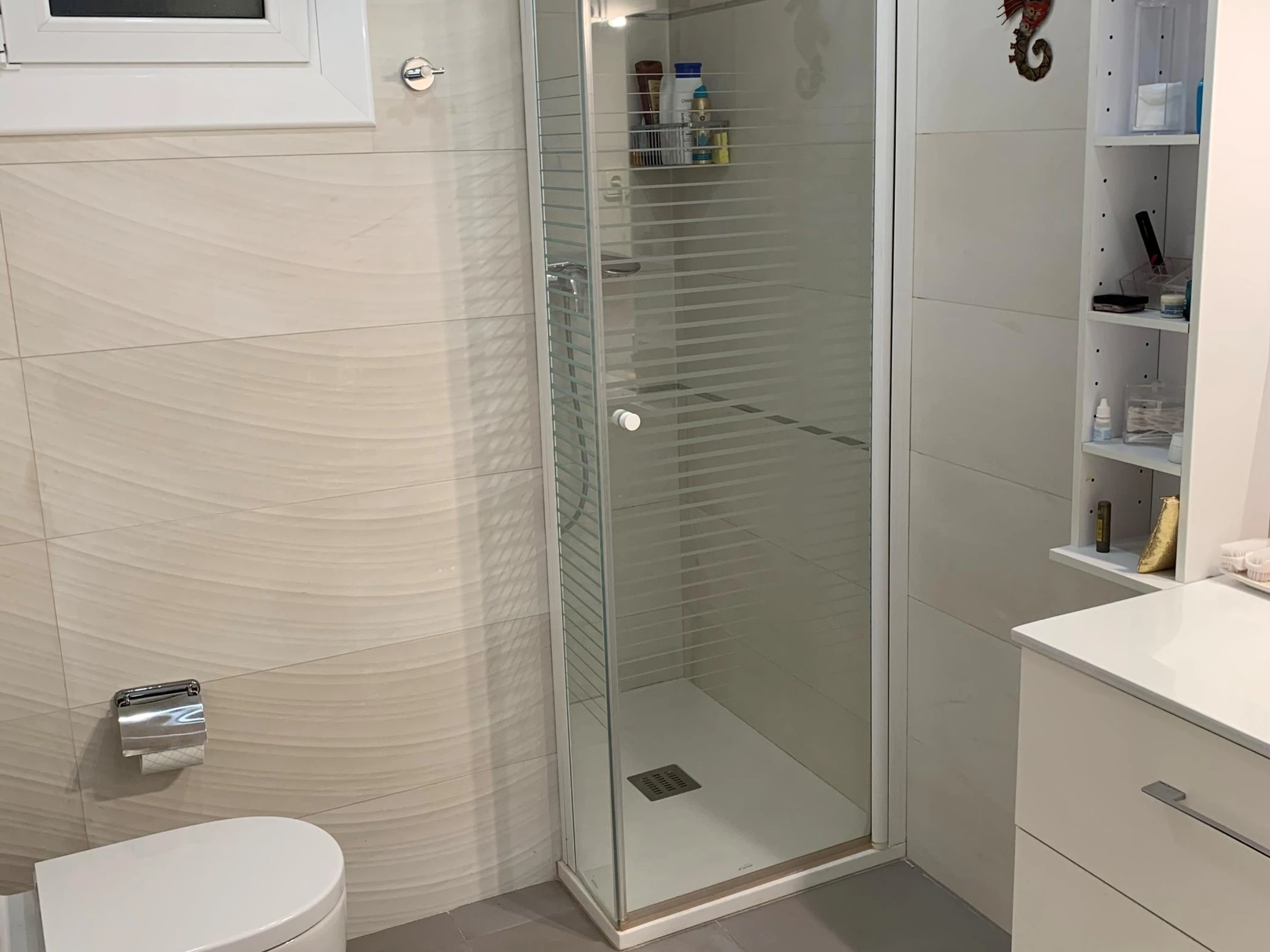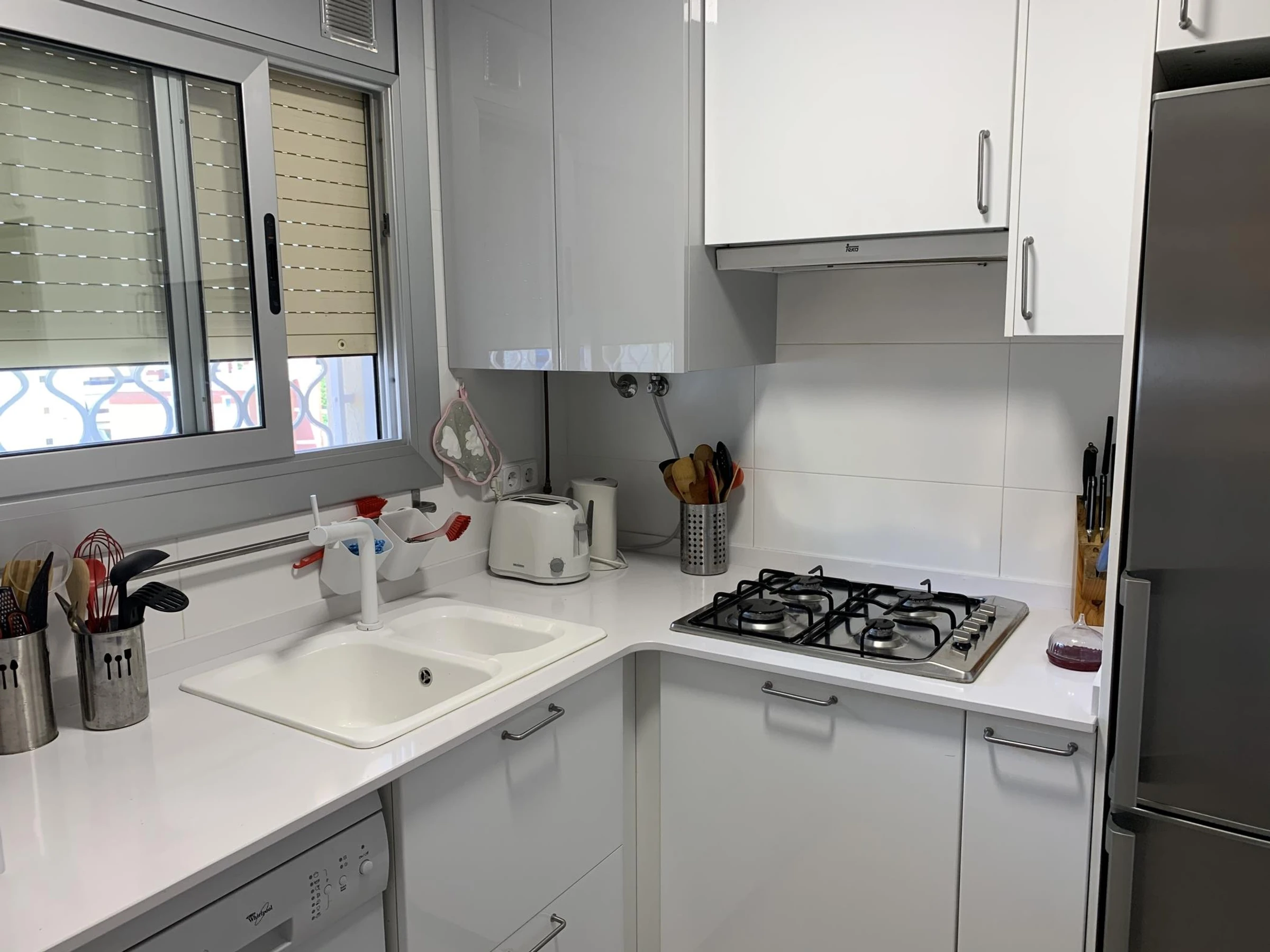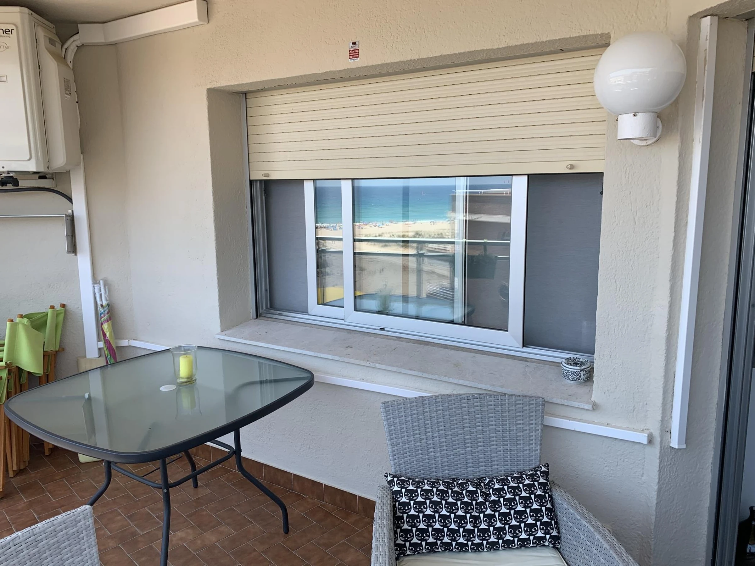 Très bel appartement, rénové, de 60 m2 au 5ª étage avec ascenseur face à la mer, 2 chambres doubles, 1 salle de bain avec douche, cuisine complète sans four, tout rénové, climatisation dans la salle à manger et les chambres, balcon avec très bonne mer vue, avec auvent et mobilier. Draps et serviettes inclus. Espace communautaire sans piscine. Très proche du centre-ville et du supermarché. Restauration variée à proximité de l'appartement.