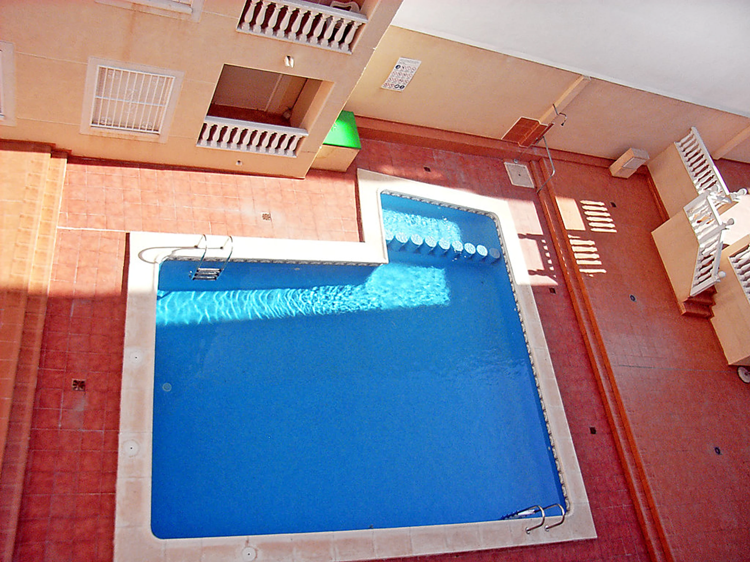 "Edificio Nabila Playa II", apt 2 pièces 40 m2 au 3ème étage. Aménagement très simple: séjour/salle à manger 15 m2 avec 1 divan-lit (135 cm, longueur 190 cm), table pour les repas, TV et radiateur électrique. Sortie sur le balcon. 1 chambre 12 m2 avec 1 grand-lit (135 cm, longueur 190 cm). Cuisine ouverte 4 m2 (4 plaques de cuisson, four micro-ondes, cafetière électrique) avec bar, chauffe eau (50 litres). Bain/bidet/WC. Petit balcon 3 m2. Meubles de terrasse. Vue sur la piscine. A disposition: lave-linge. Veuillez noter: 2 animaux/ chiens autorisés. TV seulement ES. VT-441622-A Inclus: Animaux, Linge (1er jeu de draps et serviettes), Frais d'énergie, Nettoyage final