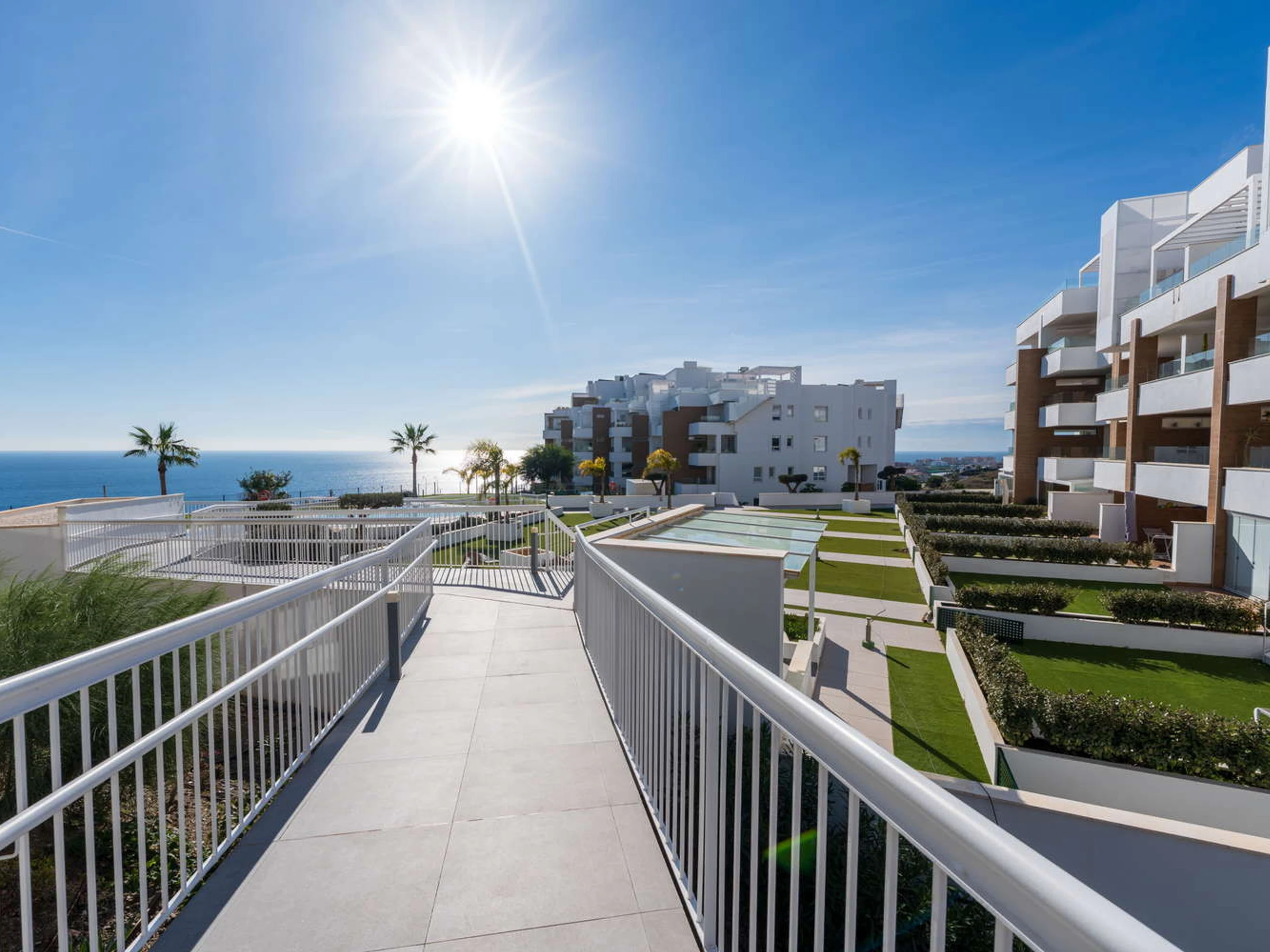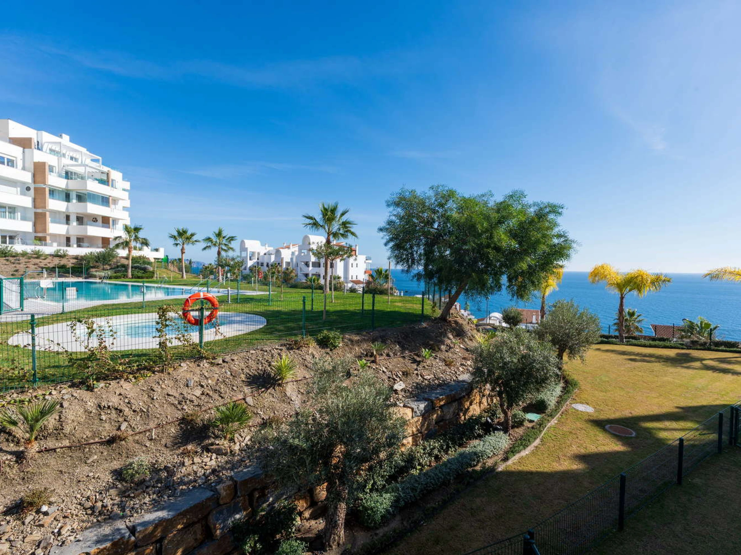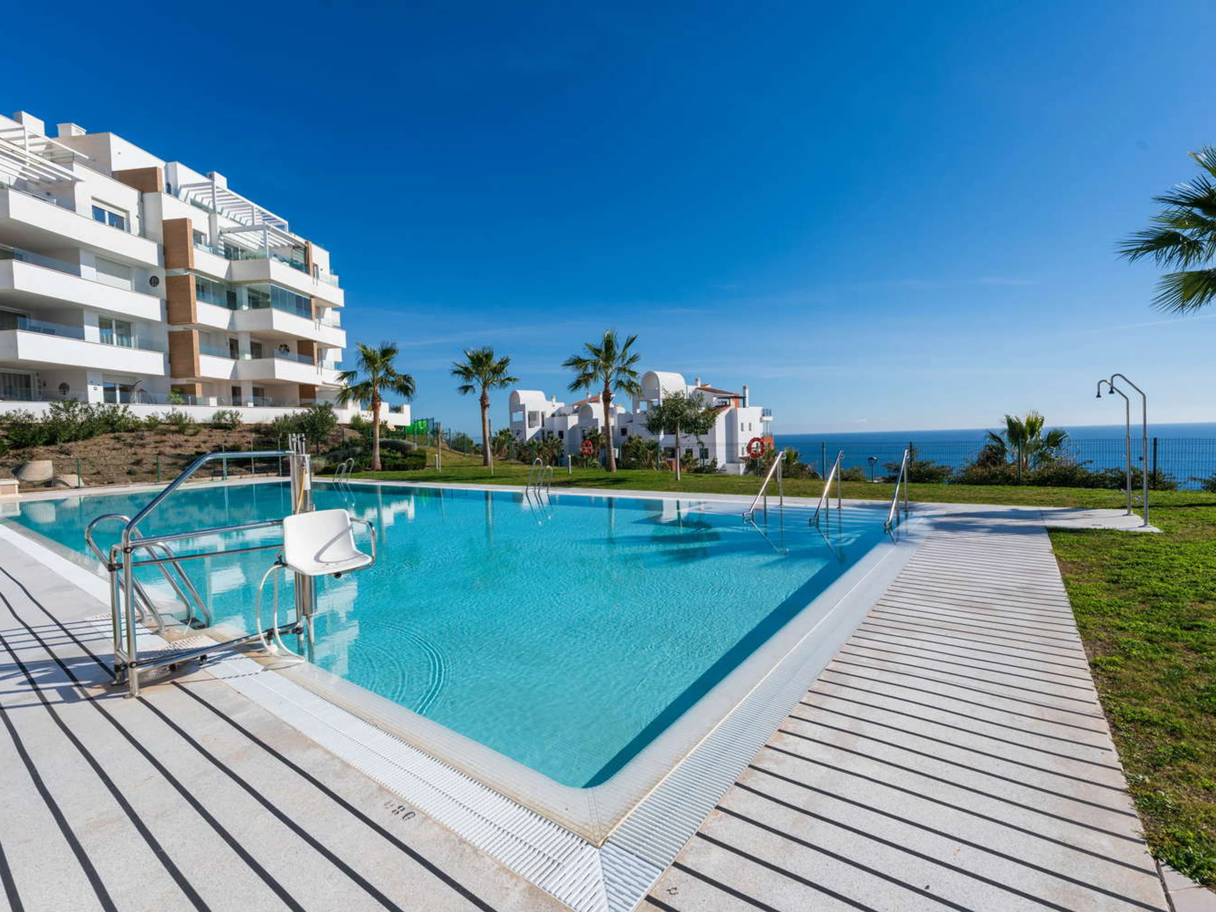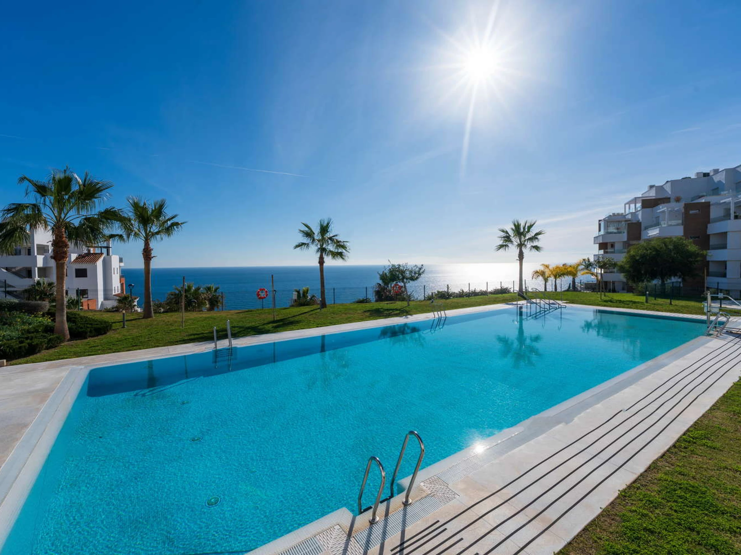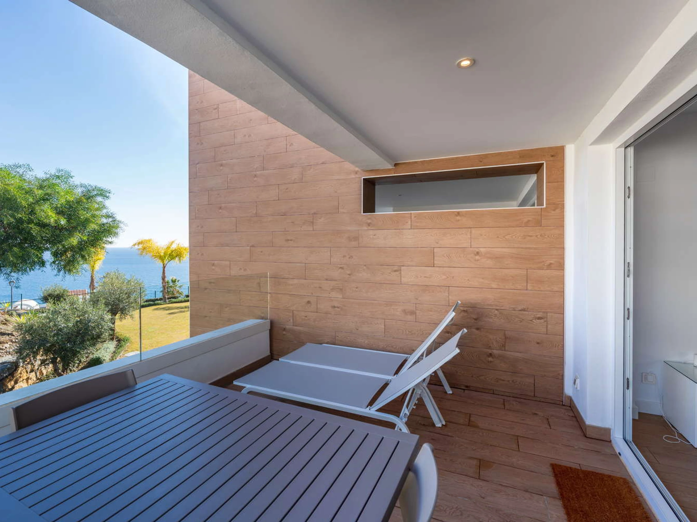 Vie intérieure et extérieure : L'architecture moderne efface les limites : le salon s'étend vers une terrasse privée orientée vers le plaisir visuel. Vous y trouverez une table pour des dîners intimes au coucher du soleil et deux transats exclusifs pour bronzer en toute intimité sans avoir à descendre dans les zones communes, tout en profitant d'une vue relaxante sur la piscine et la mer.