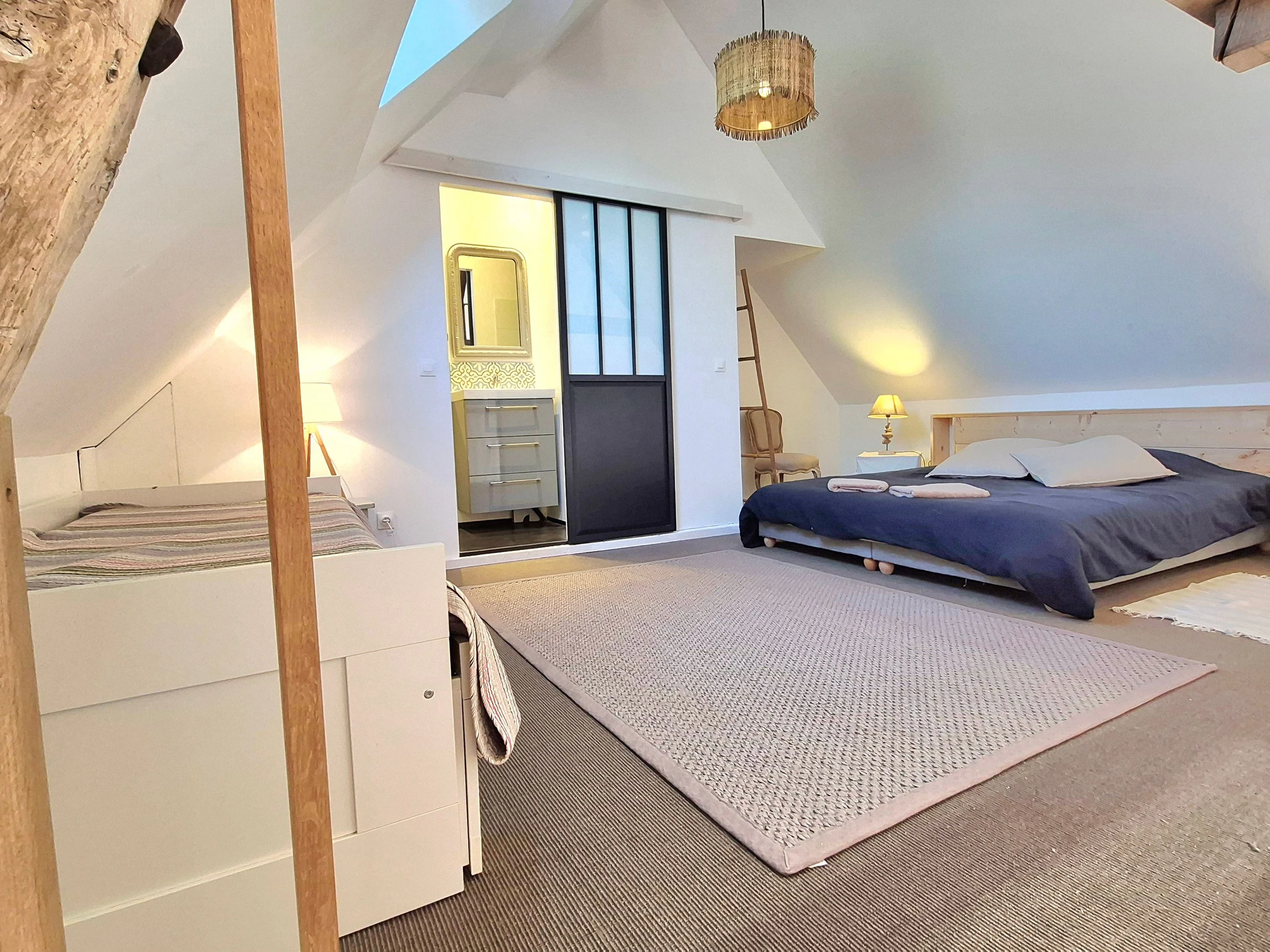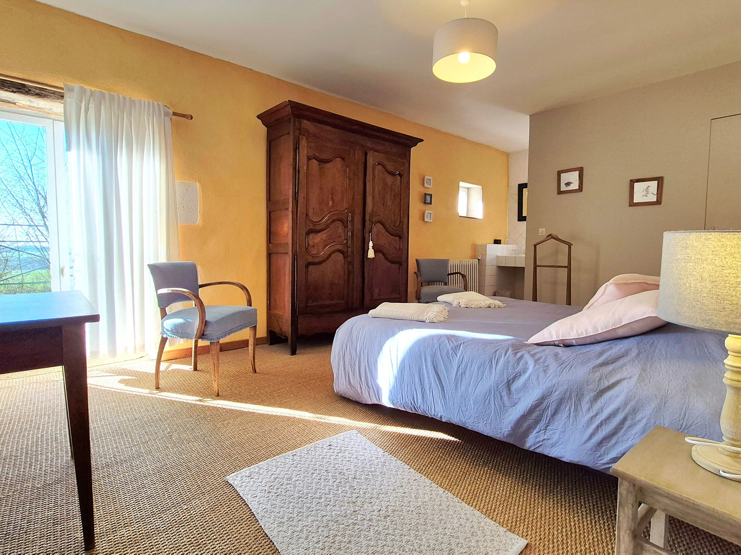 Possibilité lit supplémentaire : 20€ /personne Au 1er étage, chambres "l'étang" avec 1 lit 160x200 - salle d'eau avec wc séparé.