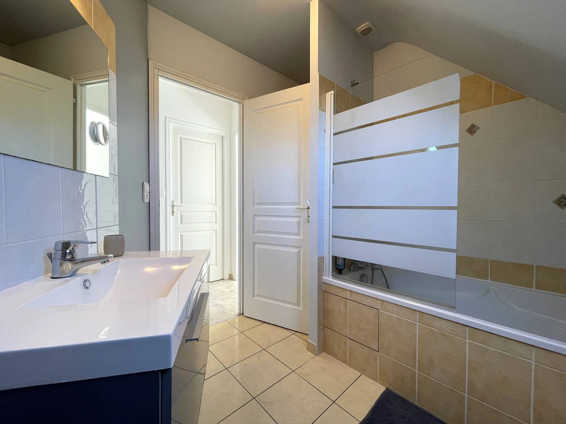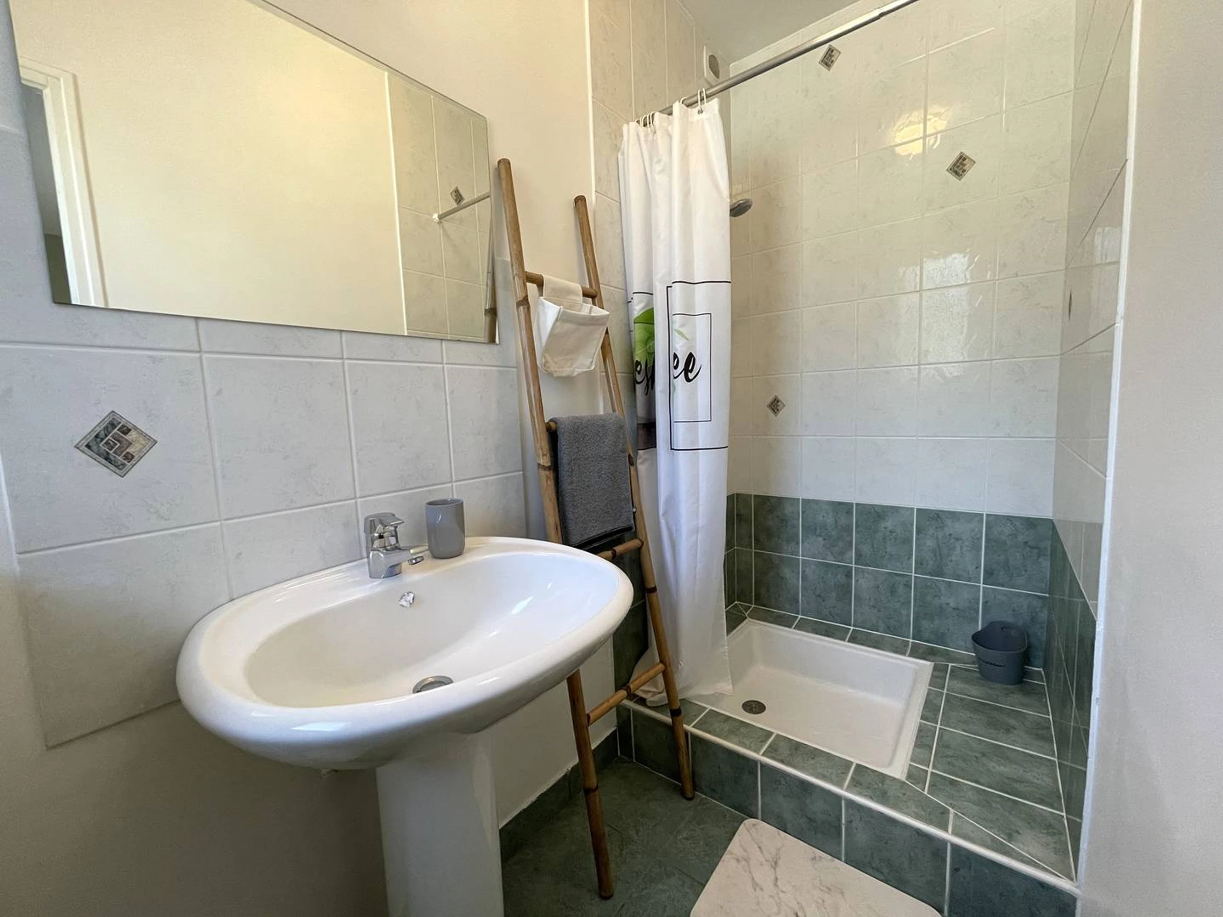 1 chambre avec 1 lit de 1 personne et 1 grand lit 2 personnes en 140cm avec couettes, avec 1 salle d'eau attenante avec lavabo et douche -
