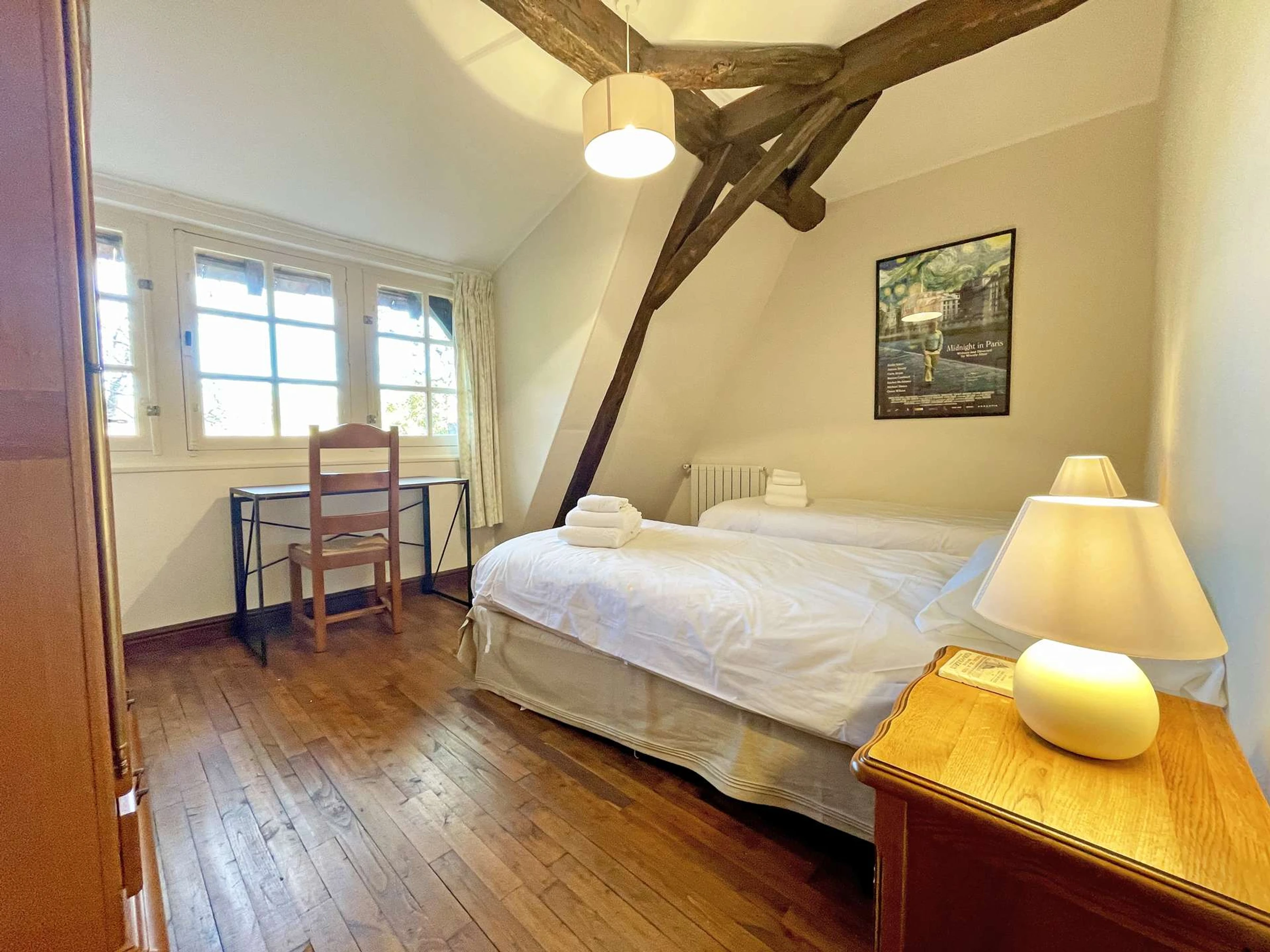 Puis au premier étage, se trouvent une chambre double, une chambre avec deux lits simples et deux salles de douche avec toilettes.