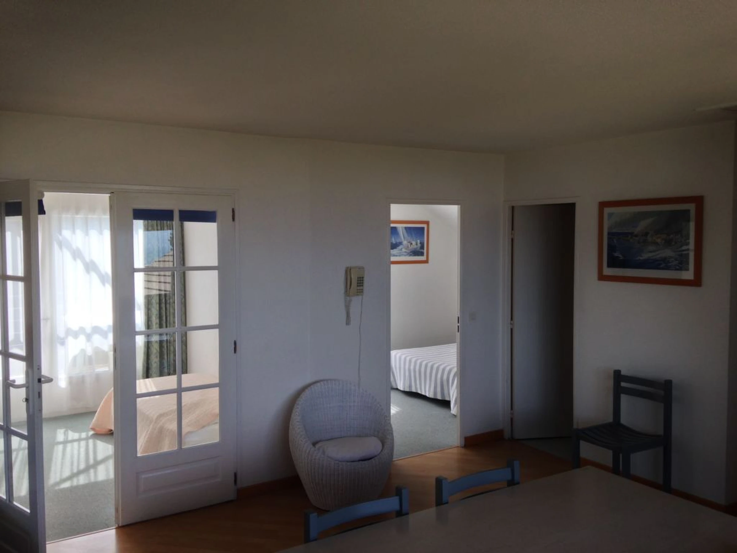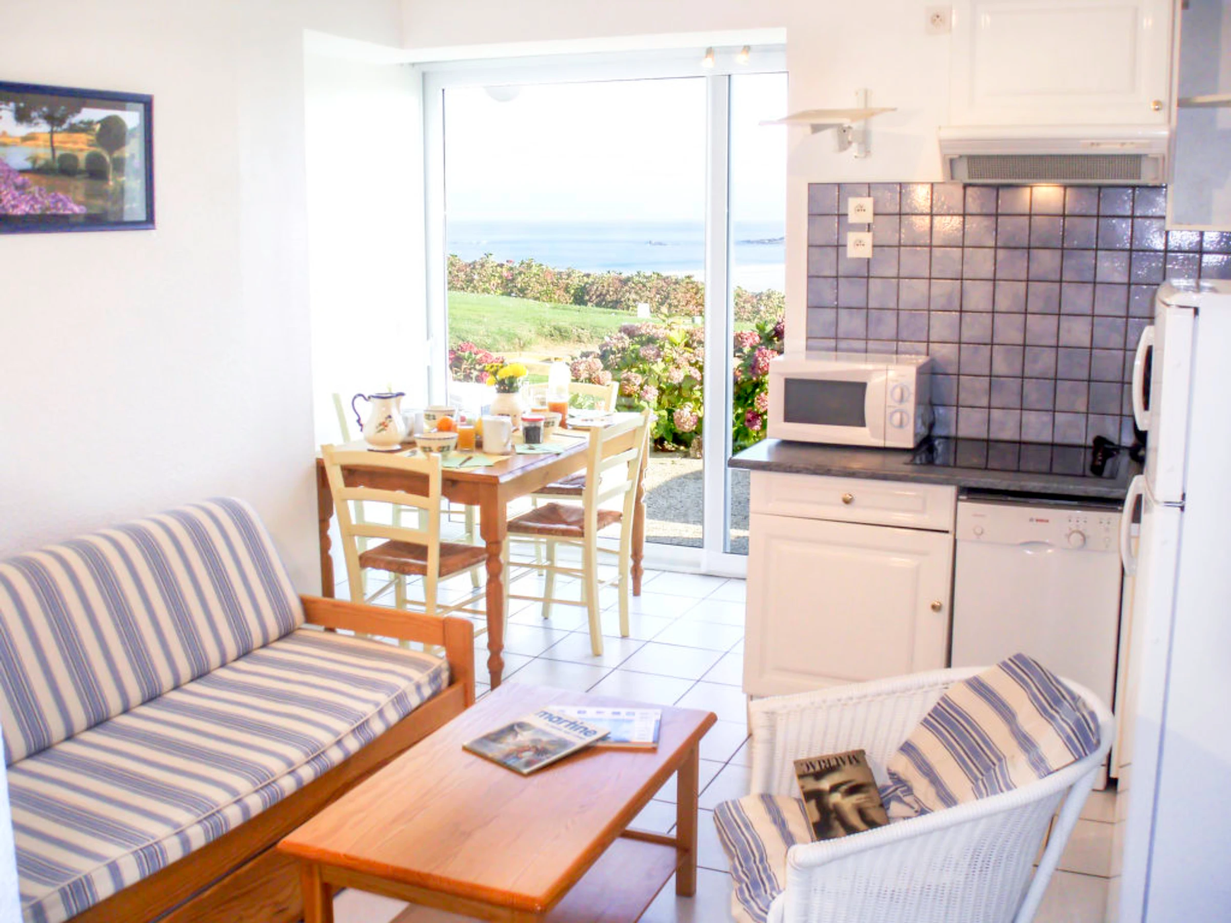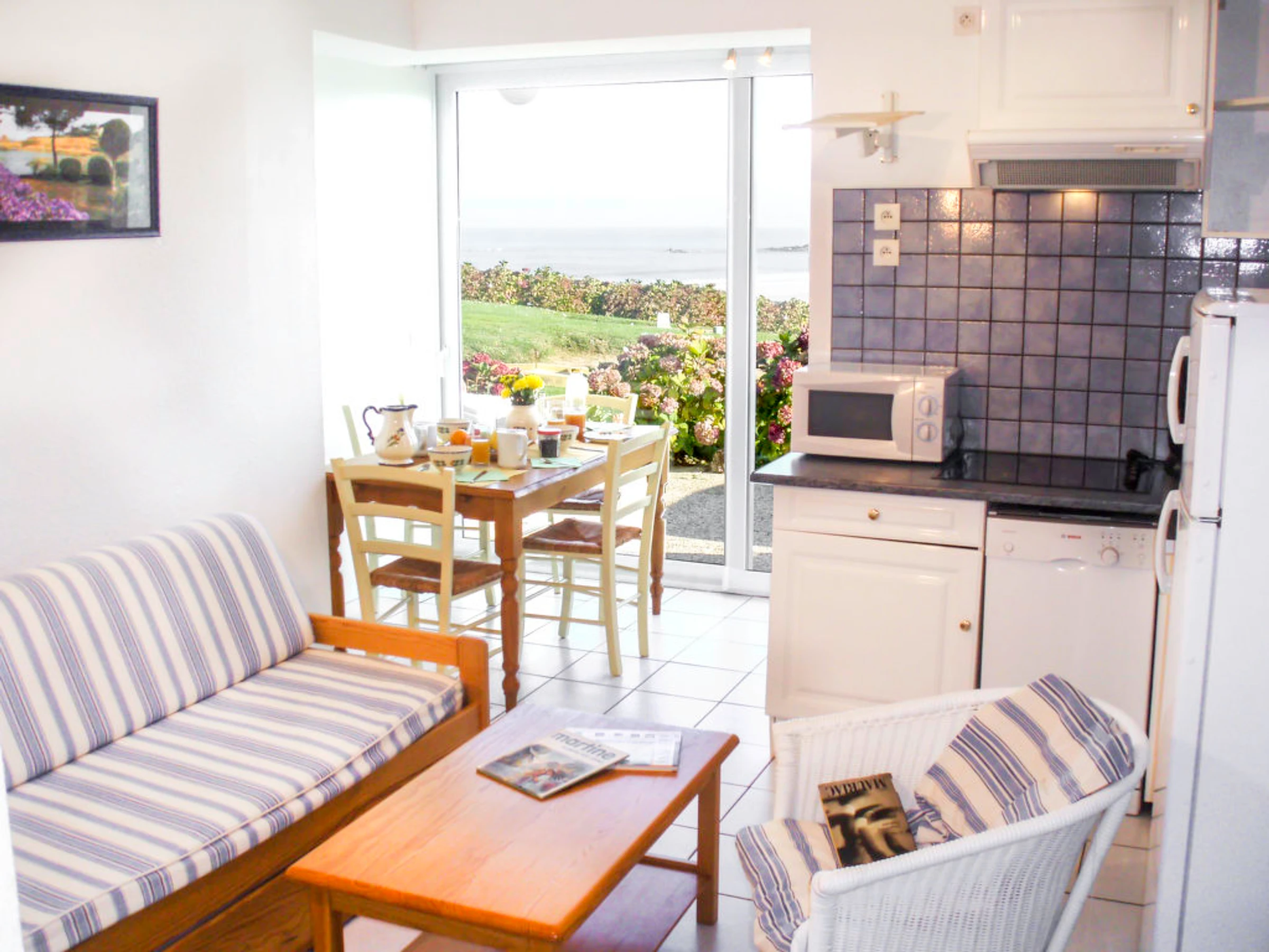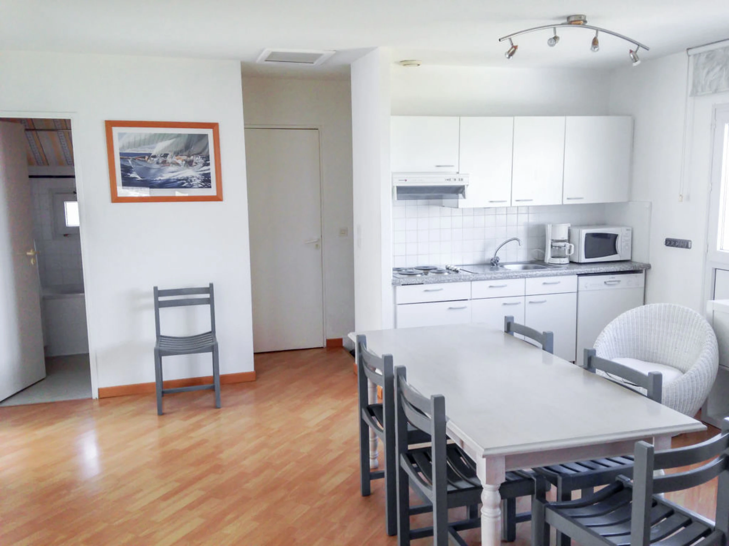 3 pièces cottage 50 m2. Bien convenant à 4 adultes + 2 enfants. Séjour/salle à manger avec 1 divan-lit double (140 cm), TV. Sortie sur la terrasse. 1 chambre avec 1 grand-lit (140 cm). 1 chambre avec 2 lits (90 cm). Cuisine ouverte (lave-vaisselle, 4 plaques à induction, four micro-ondes). Douche/WC. Chauffage électrique. Balcon ou terrasse. Meubles de terrasse. Belle vue sur la mer. Place de parking (1 Voiture). Adapté(e) aux familles. Maximum 1 animal/ chien autorisé.