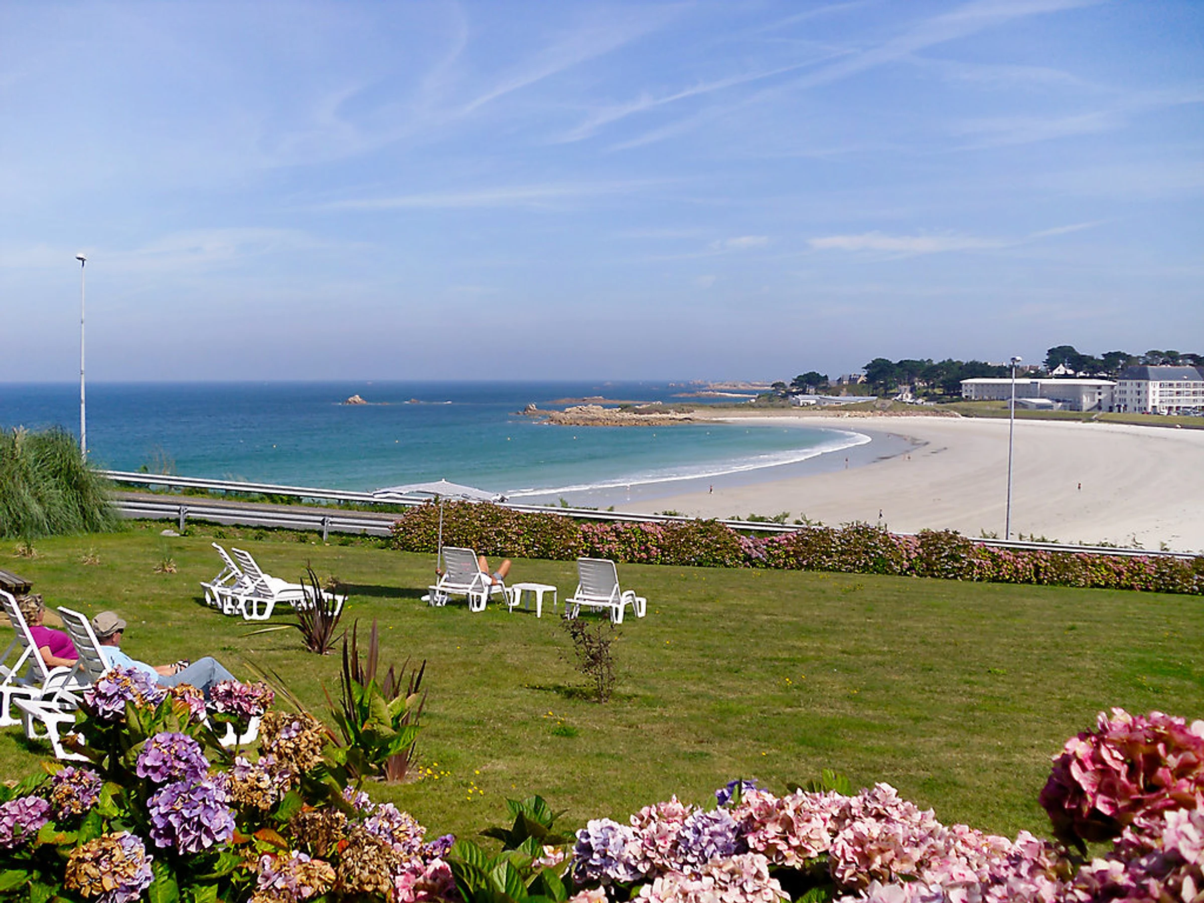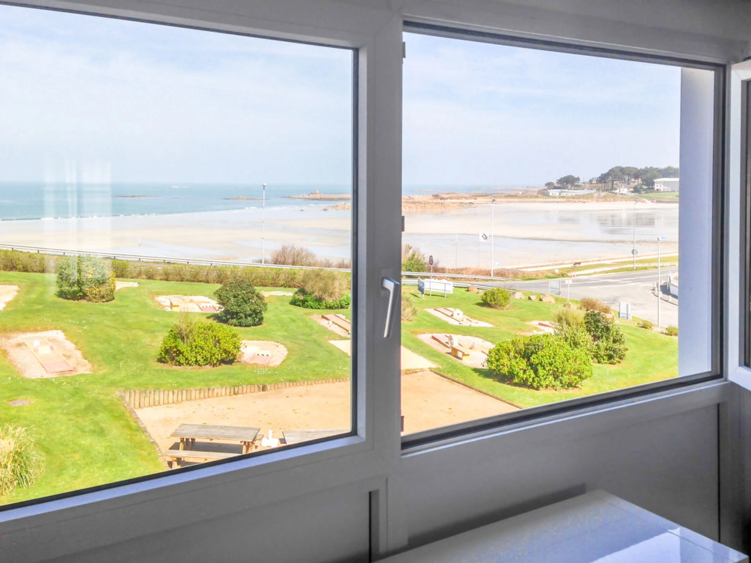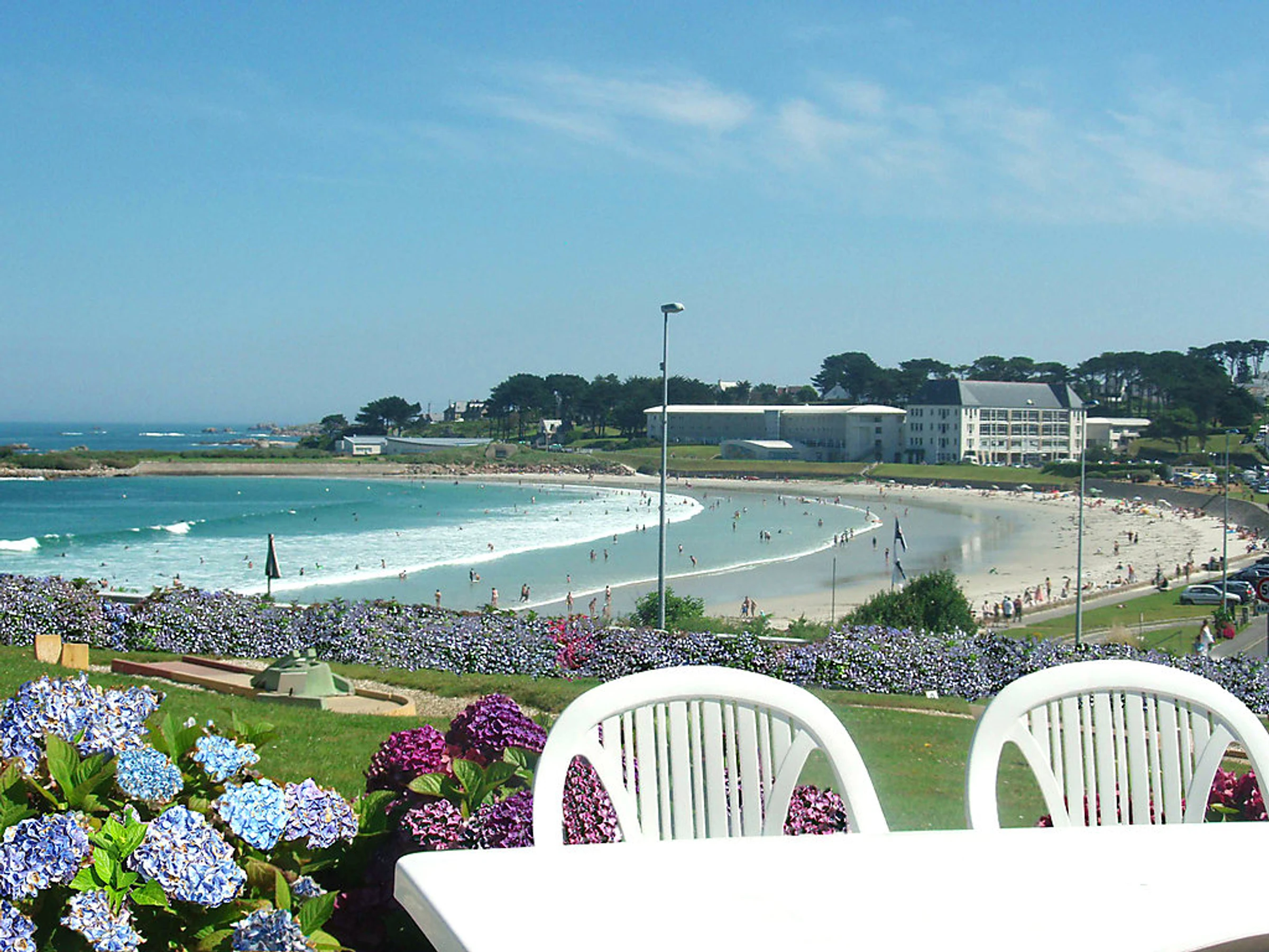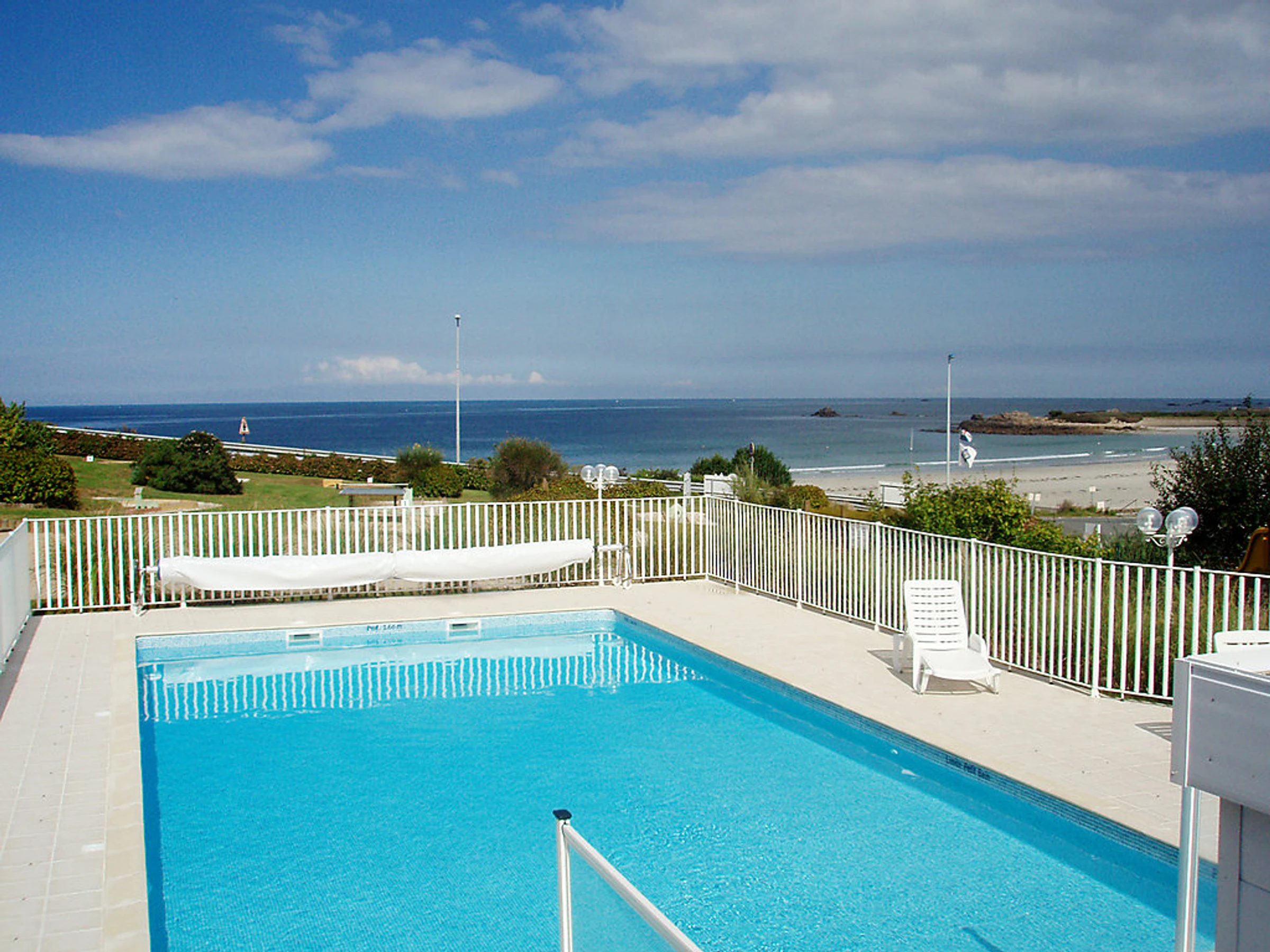 La résidence bénéficie d'une situation privilégiée face à une magnifique plage de sable fin avec une belle vue sur la mer. Club nautique 5 km. Résidence accueillante "Terrasses de la plage de Trestel". 25 maisons dans la résidence. Dans la localité, à 600 m du centre de Trestel en-dehors de la localité, à 5 km du centre de Trevou Tréguignec, à 50 m de la mer, à 50 m de la plage, route à traverser, accès direct à la plage. En commun: jardin entretenu (pas clôturé) avec pelouse, piscine chauffée, protégée, cloturée (12 x 6 m, profondeur 80 - 180 cm, 15.06.-15.09.). Ping-pong, terrain de pétanque, terrasse. Infrastructures de la résidence: Connexion WIFI, sauna (en sus). Salle fitness, réduit pour bicyclettes, lave-linge (en commun, en sus), chauffage payable localement (01.09.-01.06.). Place de parking (nombre de places limité) près de la maison. Magasins 500 m, supermarché 5 km, restaurant 100 m, plage de sable "Trestel:Pavillon Bleu d'Europe" 50 m, parc "Cosmoplis" 20 km. Ecole de surf 50 m, ecole de voile 5 km, tennis 600 m, centre équestre 5 km. Attractions à proximité: Paimpol 30 km, Ploumanach 25 km, Treguier 12 km, Ile de Bréhat. Veuillez noter: voiture recommandée. Adapté(e) aux familles, équipement pour bébés sur demande (en sus). La photo ne montre qu’un exemple de location de vacances. La photo du catalogue n´est qu´un exemple. D’autres appartements sont également proposés à la location dans cette maison de vacances.