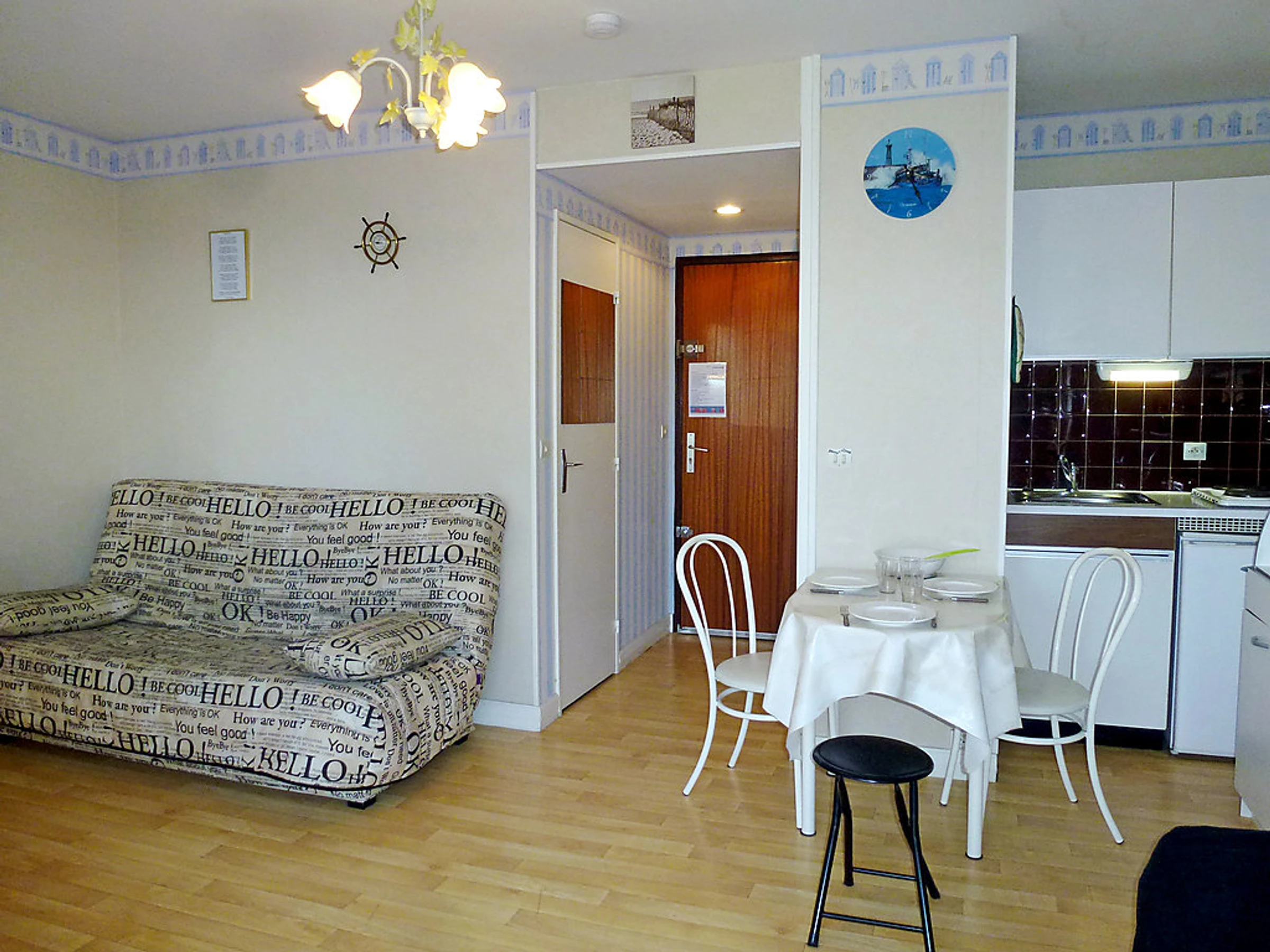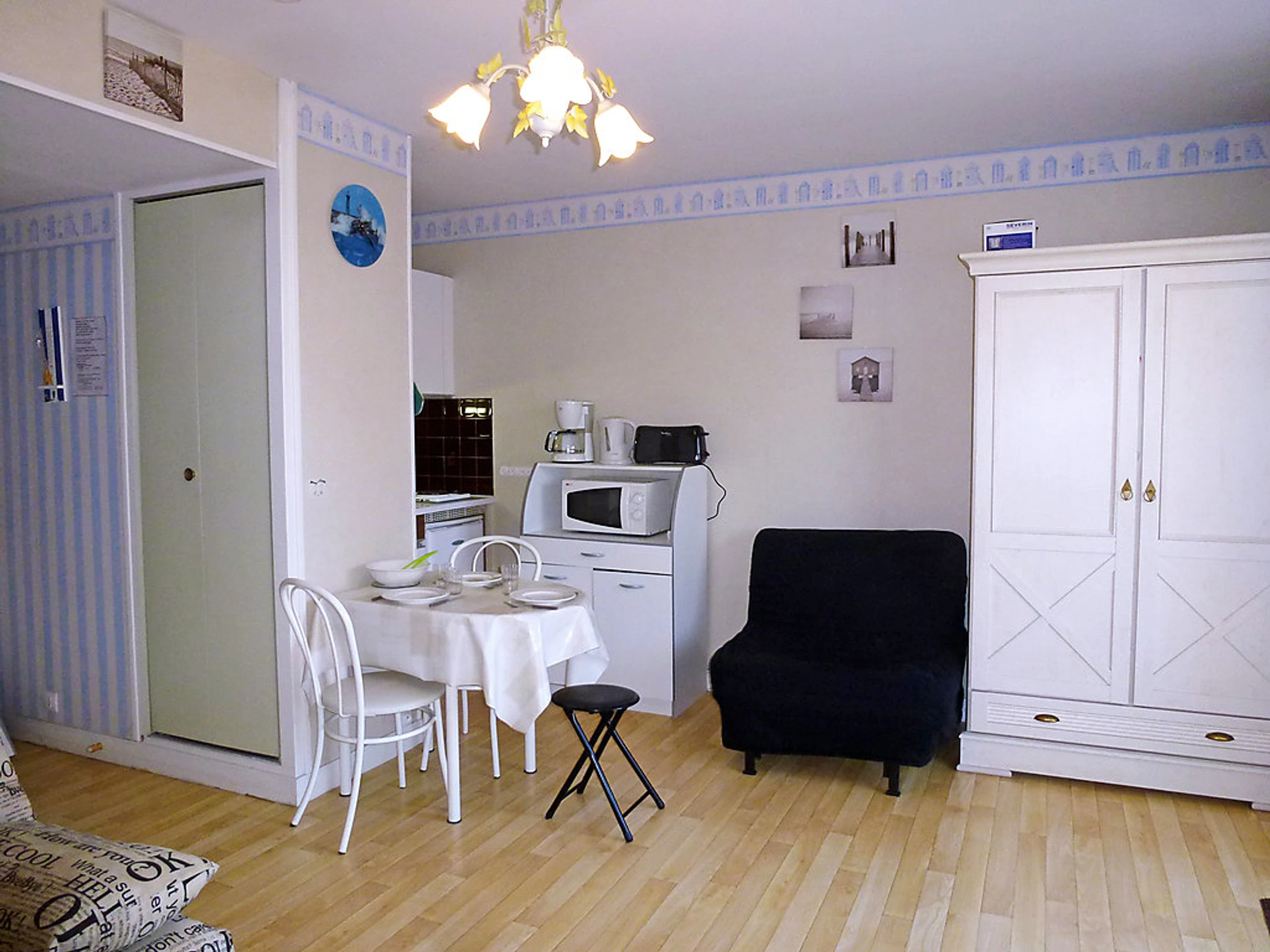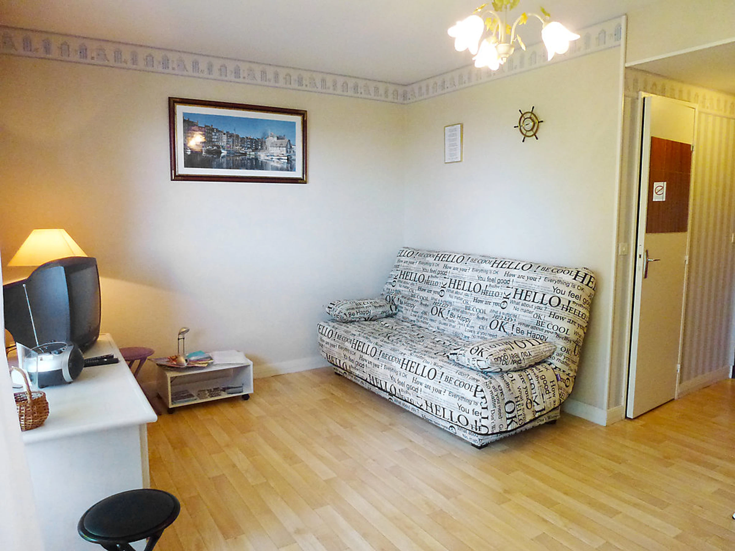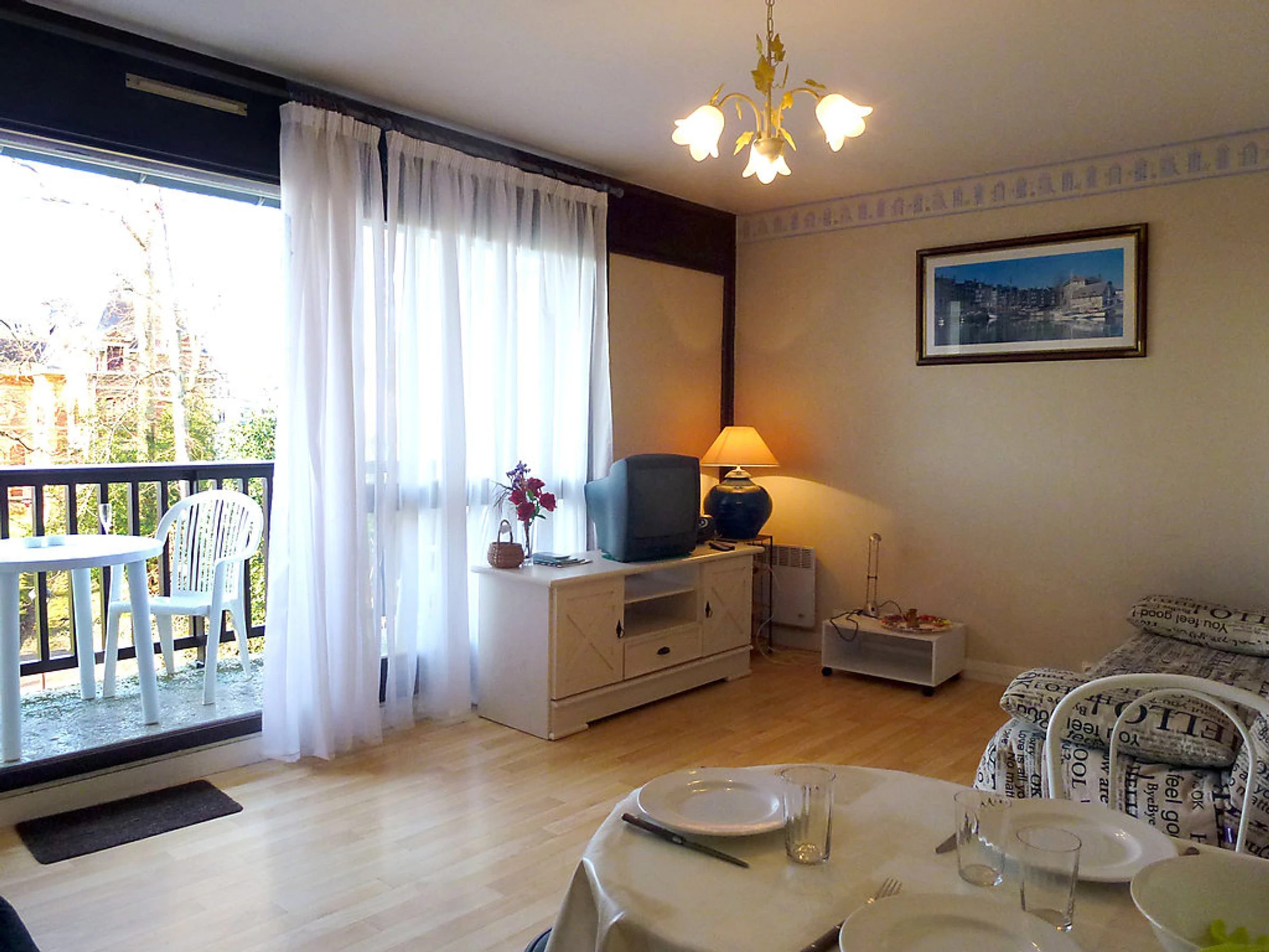 Trouville-sur-Mer: Résidence "Le Grand Large", de 5 étages. À 800 m du centre de Trouville-sur-Mer, à 1.3 km de la mer, à 1.3 km de la plage. En commun: piscine rectangulaire chauffée (15.06.-31.08.). Infrastructures de la résidence: parking public possible dans la rue. Magasins 500 m, supermarché 2.2 km, restaurant, arrêt du bus 500 m, gare ferroviaire "Deauville-Trouville" 700 m, plage de sable 1.3 km, piscine couverte 1.5 km, centre thermal "Trouville sur Mer" 1.4 km. Terrain de golf 4.5 km, ecole de voile 2.7 km, tennis 1.6 km. Attractions à proximité: Hippodrome Deauville-La Touques 2.4 km, Honfleur 15 km, Mémorial de Caen 54 km, Plage du débarquement d'Arromanches 86 km. La remise des clés a lieu à l’agence de Deauville.