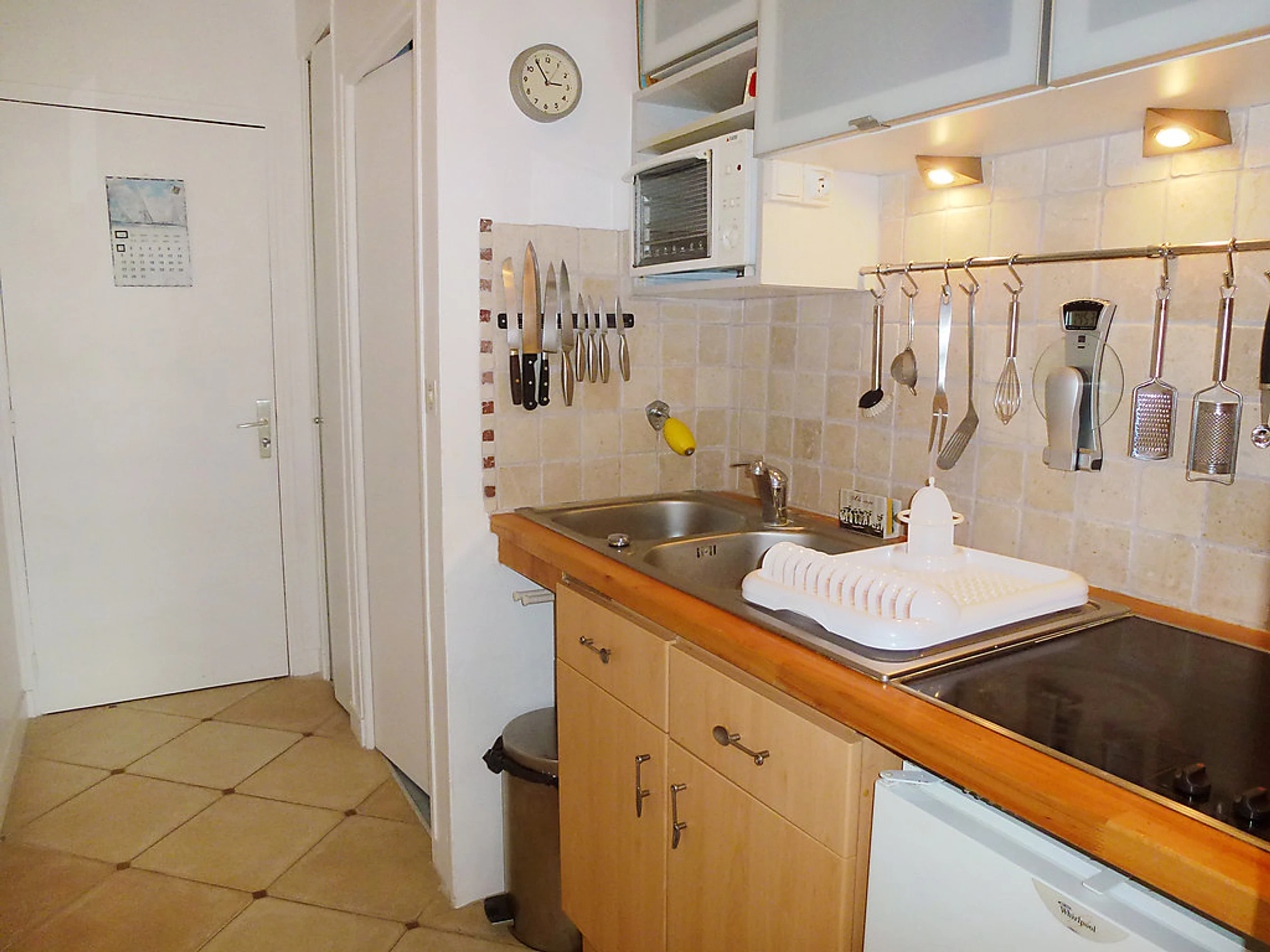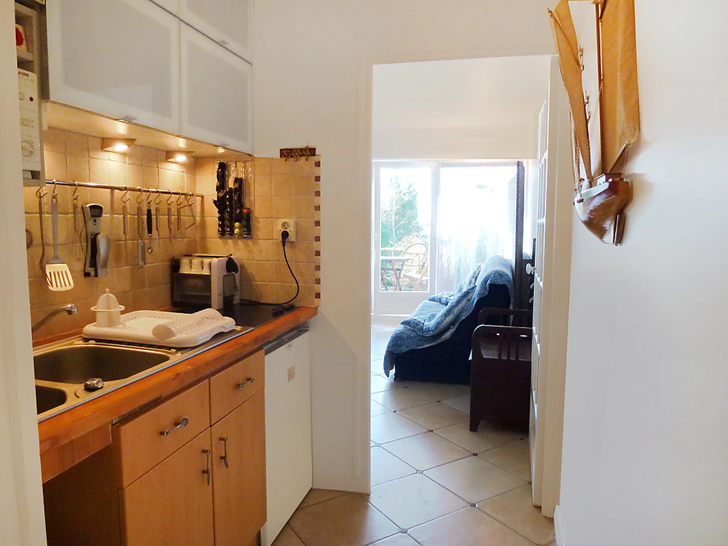 Studio 30 m2, au rez-de-chaussée. Entrée. Séjour/salle à manger avec 1 grand-lit armoire (1 x 140 cm, longueur 190 cm), table pour les repas et TV (écran plat), DVD. Sortie sur la terrasse, sur le jardinet. Coin cuisine dans l'entrée (2 plaques de cuisson, mini-four, four micro-ondes). Bain/WC. Terrasse, situation ouest, jardinet 9 m2. Meubles de terrasse. Vue sur le jardin. A disposition: lave-linge. Place de parking. Veuillez noter: logement pour non fumeurs. 1 animal/ chien autorisé.