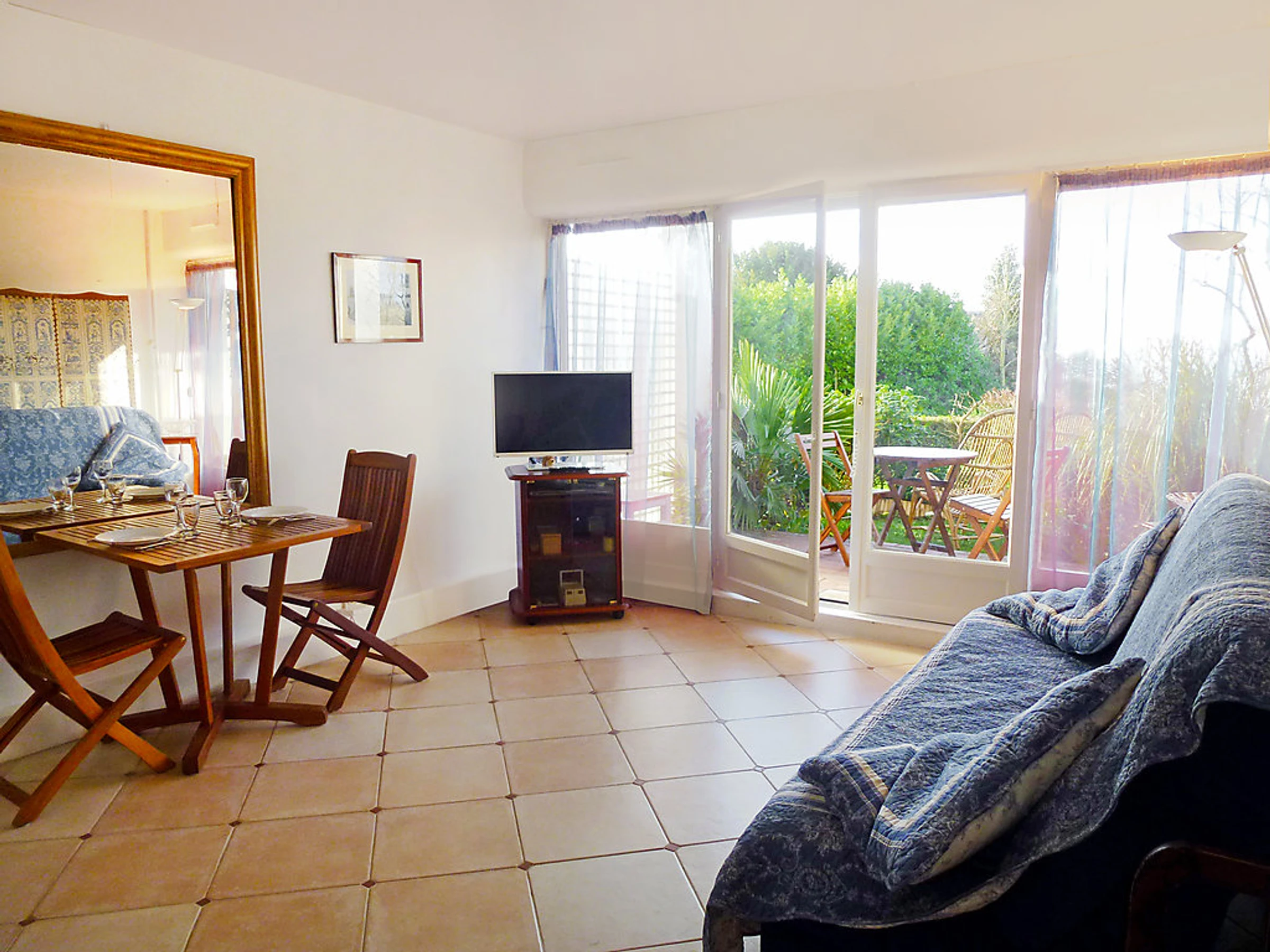 Trouville sur Mer: Résidence "Le Parc de La Jacotte". À 600 m du centre, sur une colline, à 700 m de la mer. Infrastructures de la résidence: ascenseur. (3 marches). Magasins 600 m, supermarché 700 m, restaurant 650 m, arrêt du bus 550 m, gare ferroviaire 1.3 km, plage de sable 700 m, piscine 800 m, centre thermal 2.7 km. Terrain de golf 5.2 km, tennis 750 m. Veuillez noter: la remise des clés a lieu à l’agence de Deauville. D’autres appartements sont également proposés à la location dans cette maison de vacances.