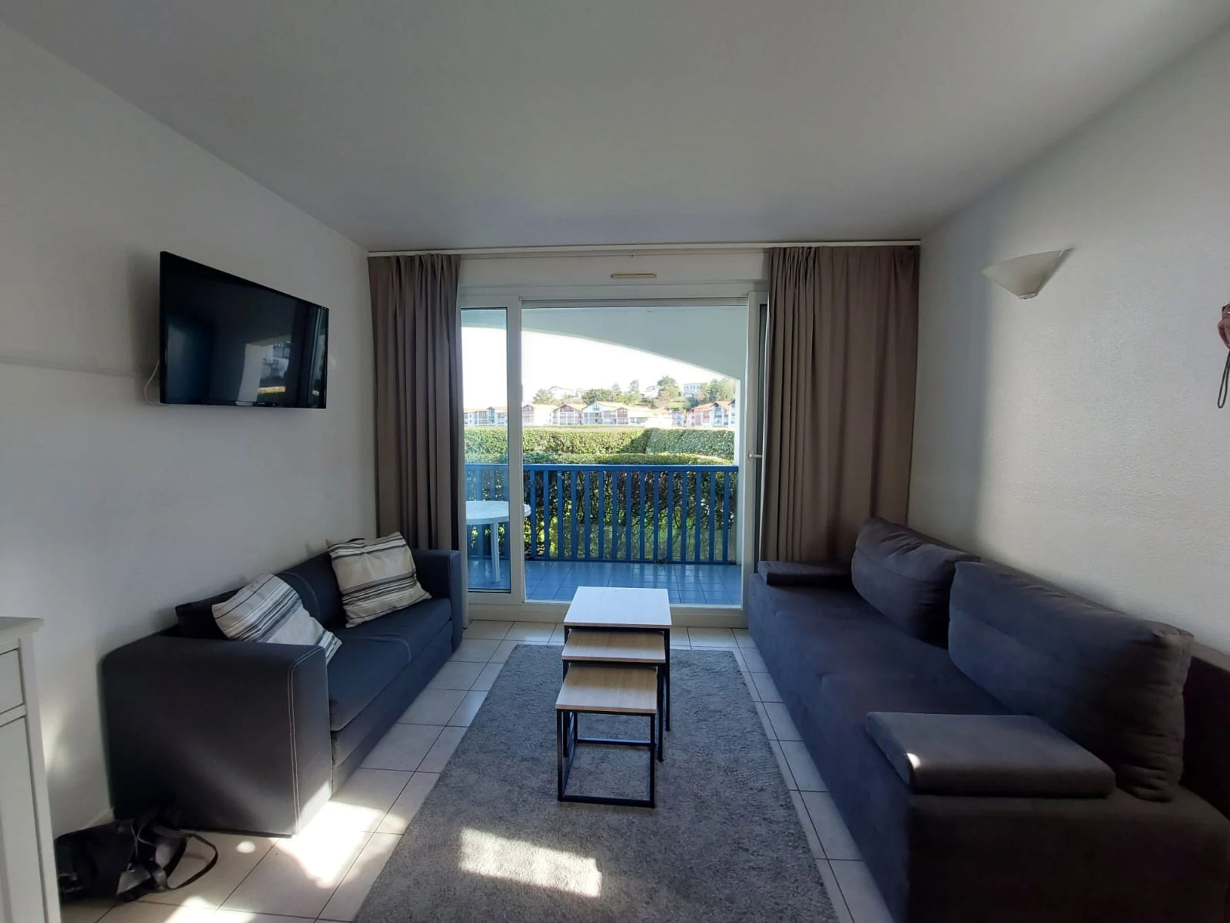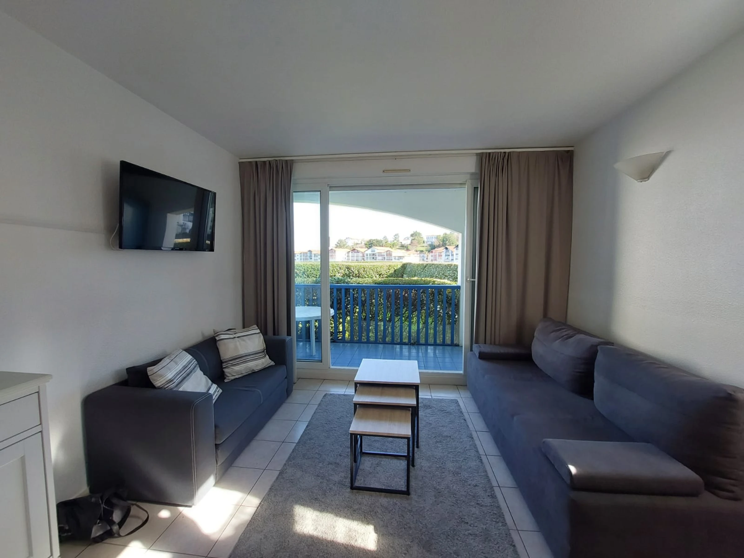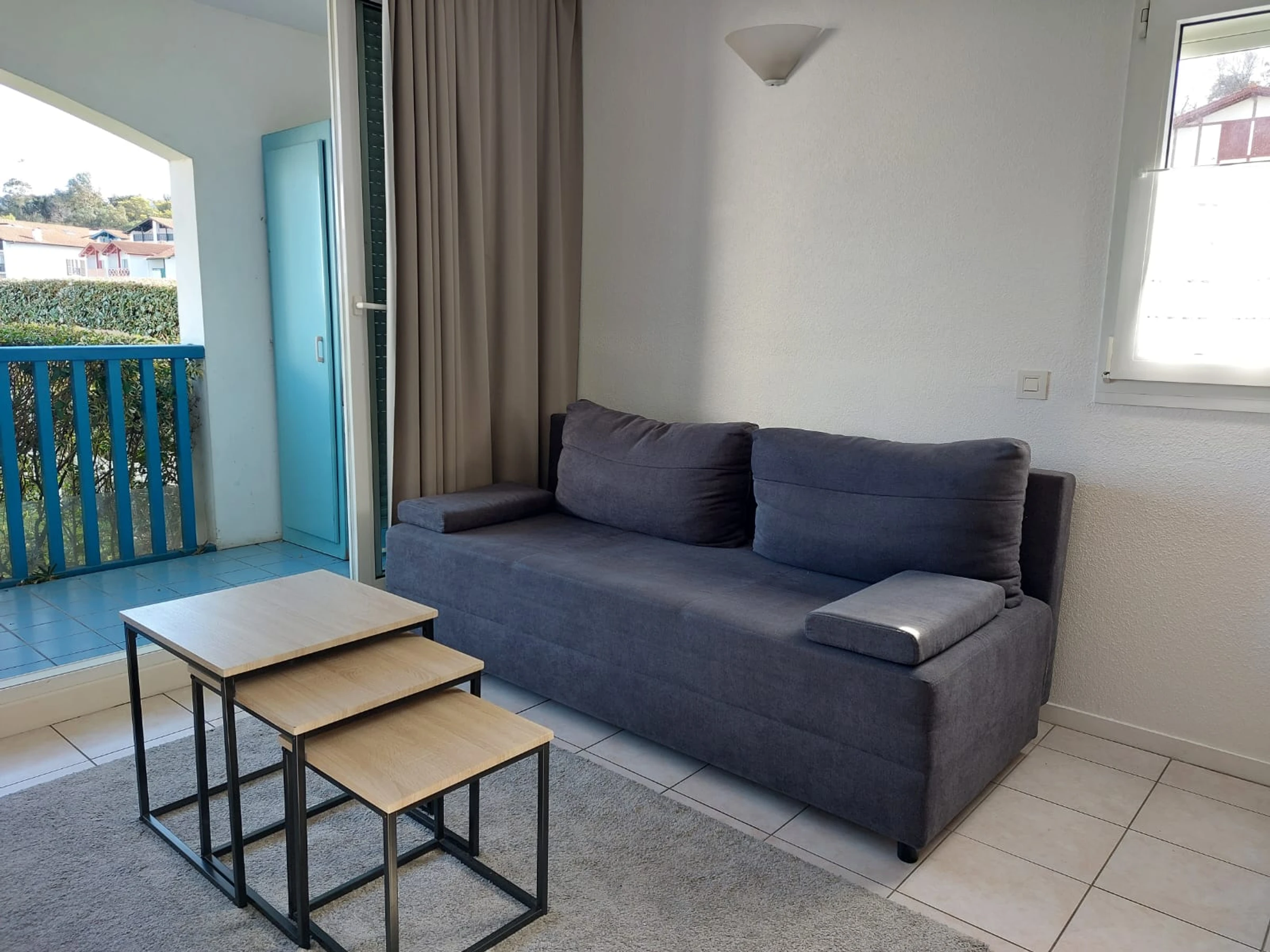 Dans une résidence de tourisme sécurisée, avec piscine collective, joli T2 côté rivière. Passée la porte d'entrée et le couloir, vous entrez dans la pièce à vivre ouverte sur la terrasse avec vue sur la rivière de l'Untxin. Une kitchenette, un espace repas et un coin salon avec deux canapés, dont un convertible en 140X190. Côté nuit, une chambre avec un lit en 140X200. Par les bords de l'Untxin, vous irez à pied ou en vélo jusqu'à la plage, faire vos courses, boire un café ou acheter les chocolatines du matin! Parking libre devant la résidence. Venez, vous reviendrez !