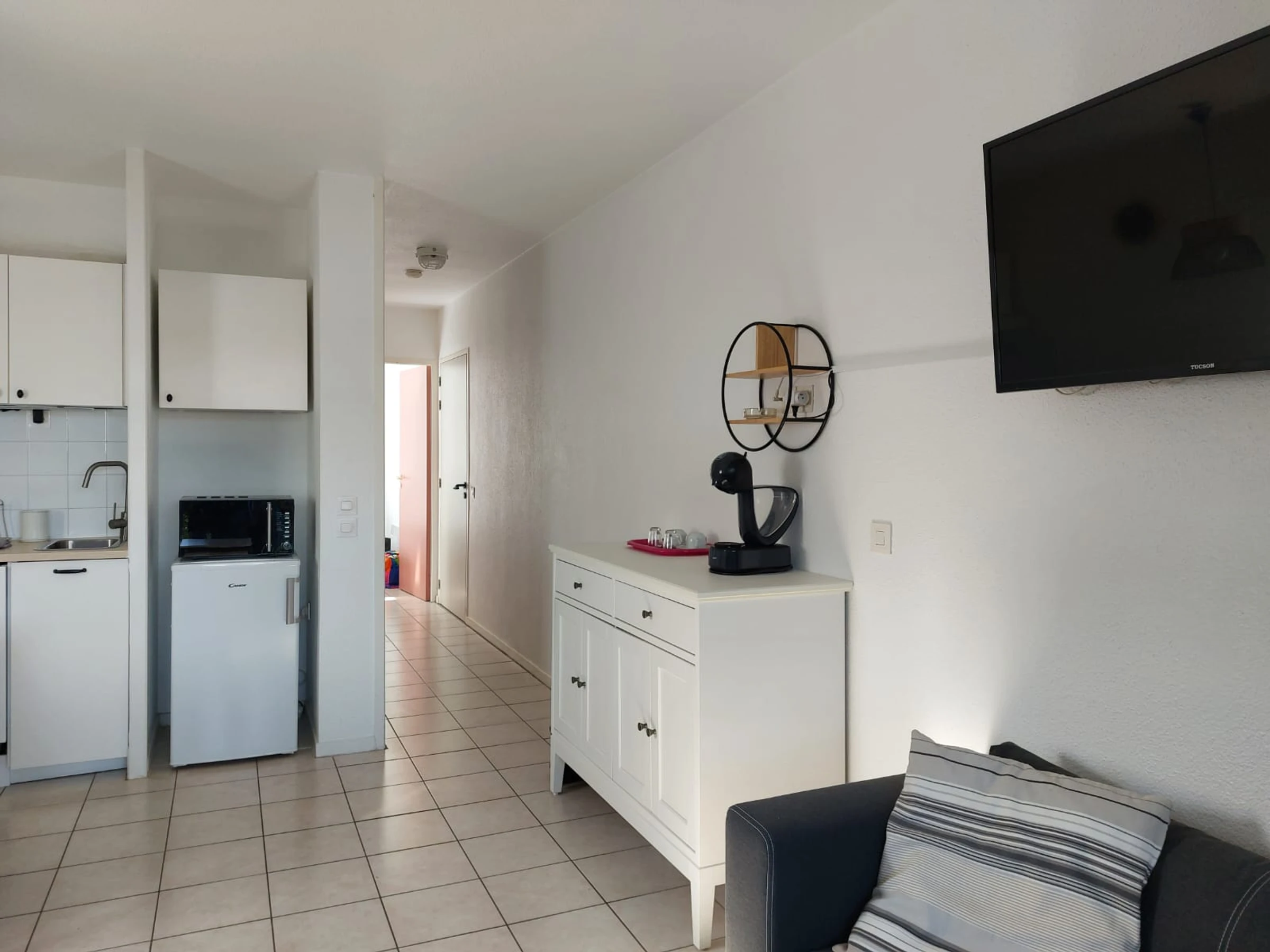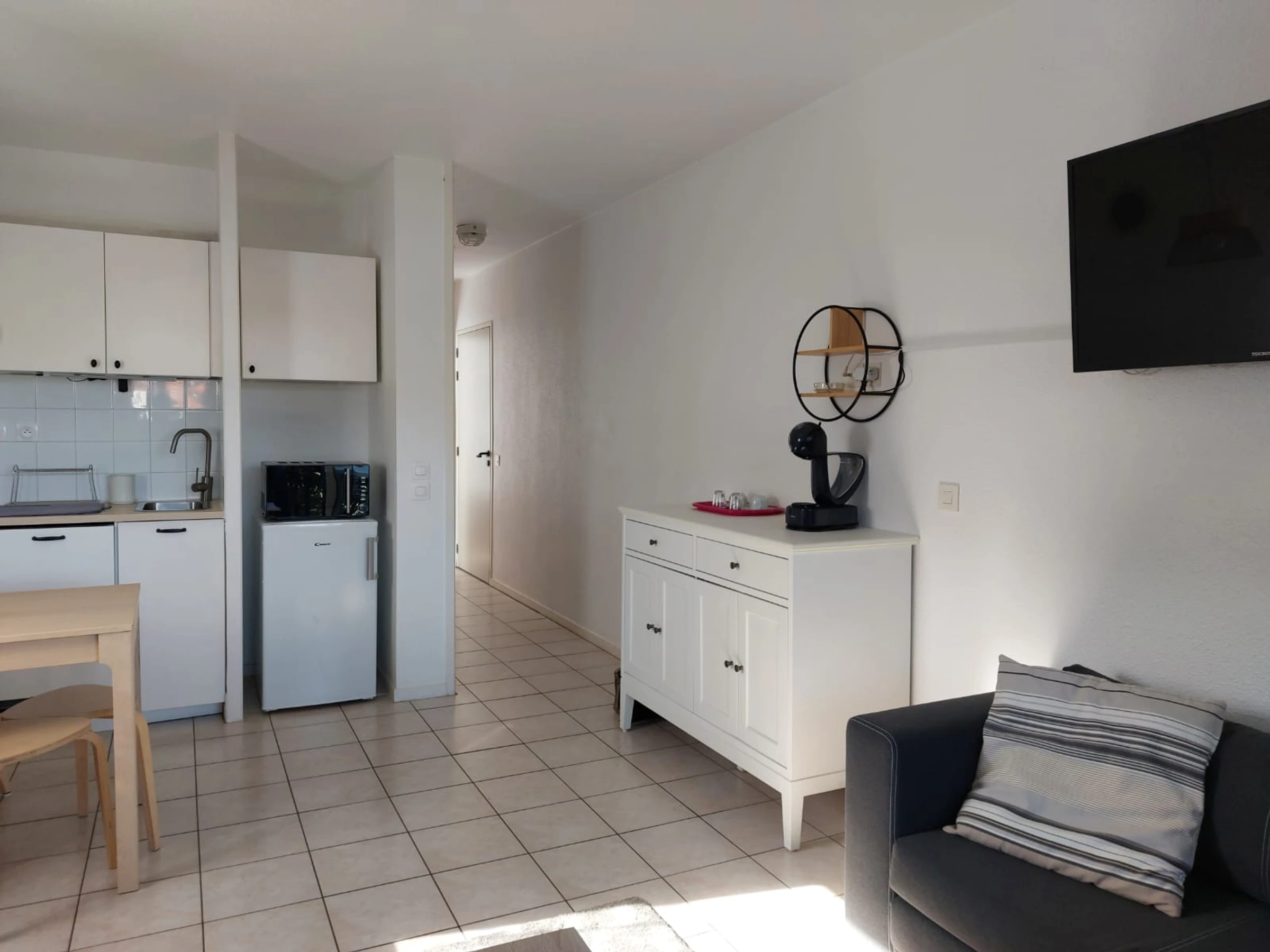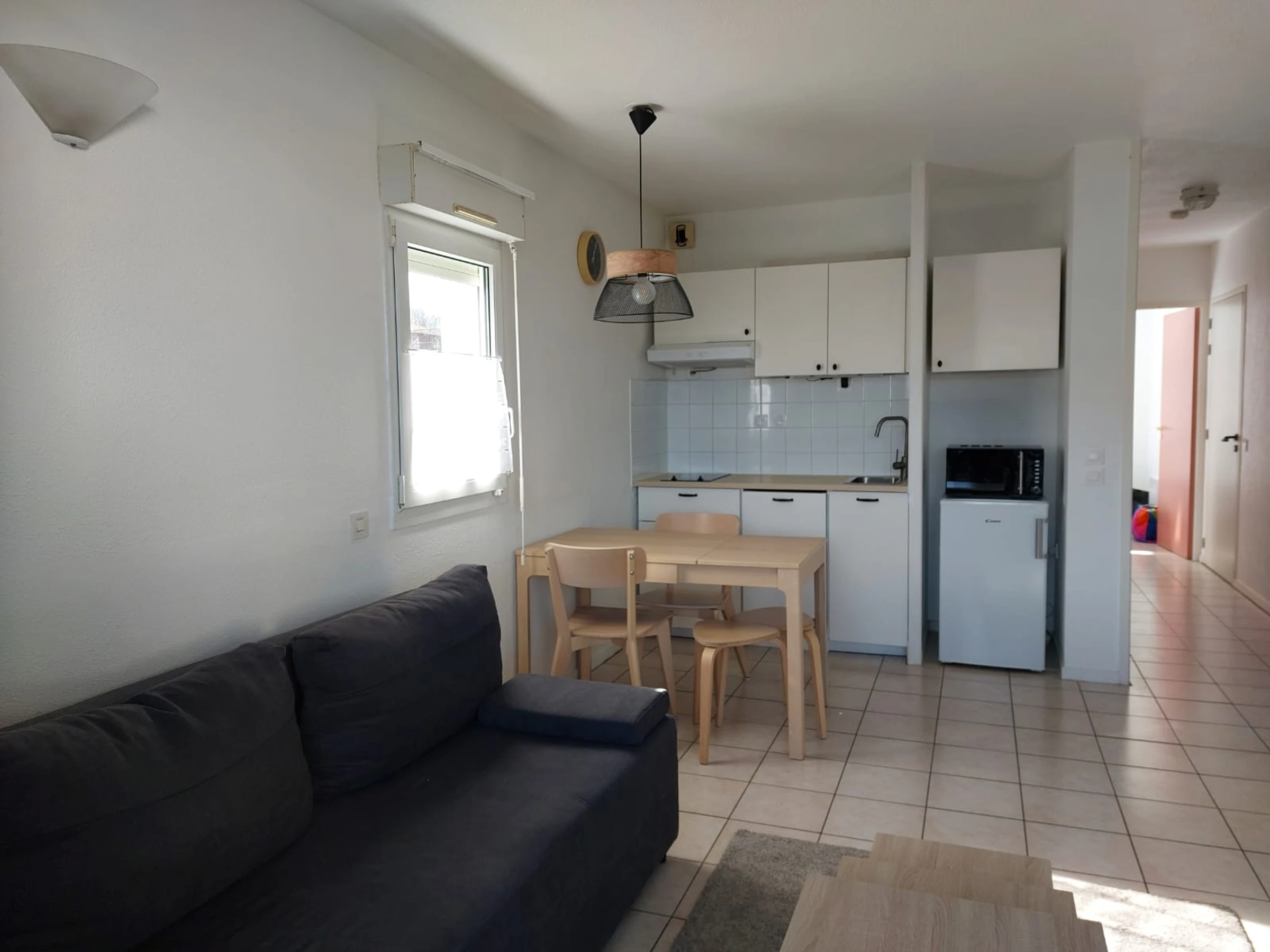 Dans une résidence de tourisme sécurisée, avec piscine collective, joli T2 côté rivière. Passée la porte d'entrée et le couloir, vous entrez dans la pièce à vivre ouverte sur la terrasse avec vue sur la rivière de l'Untxin. Une kitchenette, un espace repas et un coin salon avec deux canapés, dont un convertible en 140X190. Côté nuit, une chambre avec un lit en 140X200. Par les bords de l'Untxin, vous irez à pied ou en vélo jusqu'à la plage, faire vos courses, boire un café ou acheter les chocolatines du matin! Parking libre devant la résidence. Venez, vous reviendrez !