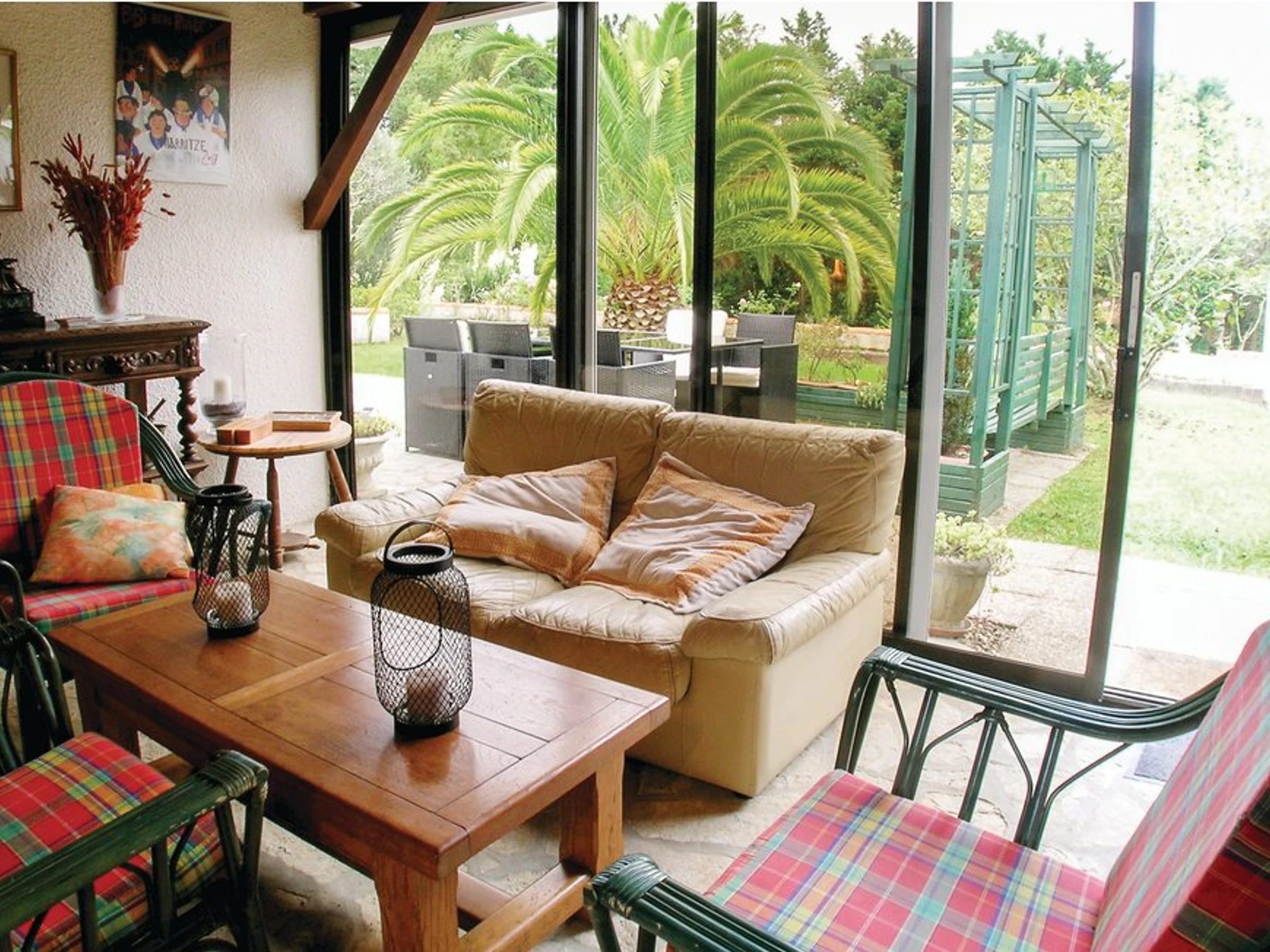 Située à seulement 10 minutes de route de l'élégante station balnéaire de Biarritz, à 20 km de l'Espagne et à proximité du village d'Arcangues, cette superbe maison mitoyenne avec véranda, terrasse et BBQ, se trouve au milieu d'un grand jardin arboré et fleuri avec pelouse. Dans le jardin, la piscine perivée et chauffée (solaire) est accessible par quelques marches. Pour les sportifs, il y a plusieurs terrains de golf internationaux aux alentours, de nombreux sentiers de randonnée, la possibilité de pratiquer du rafting ou du surf. La charmante propriétaire habite une annexe de la villa. Parking voitures. Située à seulement 10 minutes de route de l'élégante station balnéaire de Biarritz, à 20 km de l'Espagne et à proximité du village d'Arcangues, cette superbe propriété de vacances mitoyenne se trouve au milieu d'un grand jardin arboré et fleuri avec pelouse. Dans le jardin, qui donne sur la Colline Rhume et les Pyrénées basques, la piscine privée et chauffée (solaire) est accessible par quelques marches. En plus de la véranda, à l'avant de la maison, se trouve une charmante terrasse, idéale pour les repas du soir au barbecue. Pour les amateurs, il y a plusieurs terrains de golf internationaux aux alentours, tels que Chantaco, Biarritz et Arcangues. De nombreux sentiers de randonnée serpentent à travers la campagne environnante et les Pyrénées. Vous pourrez aussi pratiquer du rafting dans les gorges de la Nive ou du surf à la plage. Biarritz est idéal pour le shopping, pour se promener le long du front de mer, ou pour savourer la délicieuse cuisine basque dans l'un des nombreux restaurants. Ne manquez pas le charmant port de Saint-Jean-de-Luz, ses bars animés la nuit et ses fêtes traditionnelles tout au long de l'année. La charmante propriétaire, qui habite une annexe de la villa, se fera un plaisir de vous conseiller sur toutes les attractions locales. Emplacements voitures dans la propriété. Services supplémentaires obligatoires sur le site: Taxe de séjour - 0.75 EUR par jour et par personne; Nettoyage(sur place) - 7.0 EUR par personne (minimum 40.0 EUR); Disponible sur le site avec supplément: Draps et serviettes - 0.0 EUR par personne;