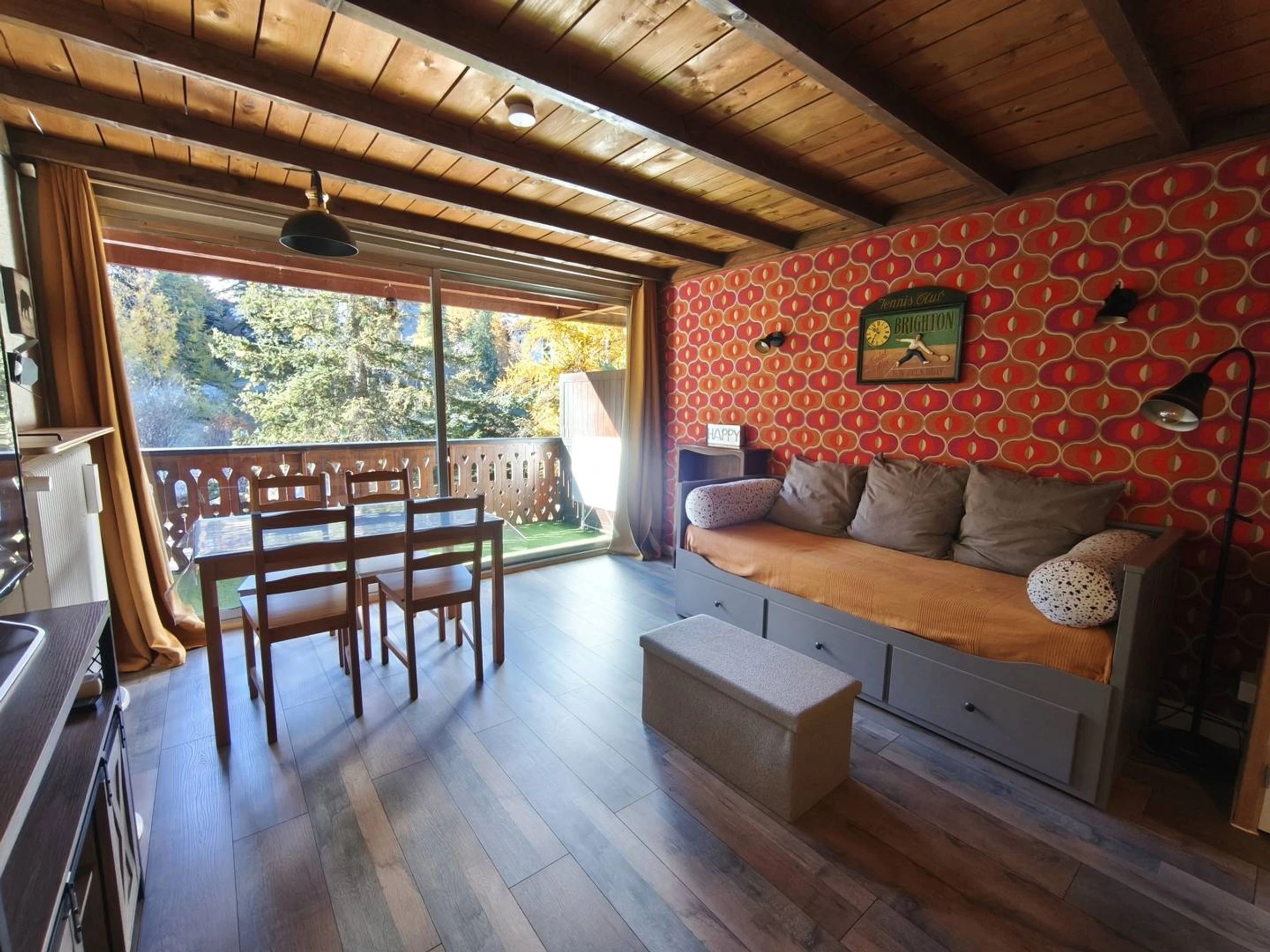 Station de Pra Loup 1600, Studio coin montagne avec balcon, copropriété LES SEOLANES , situé au 2eme étage, avec ascenseur, superficie de 35 m2, exposition SUD, comprenant, entrée coin montagne avec 2 couchages 1 personne (lits superposés), séjour avec 1 couchage 2 personnes (convertible), un coin cuisine, une salle de bain avec wc.