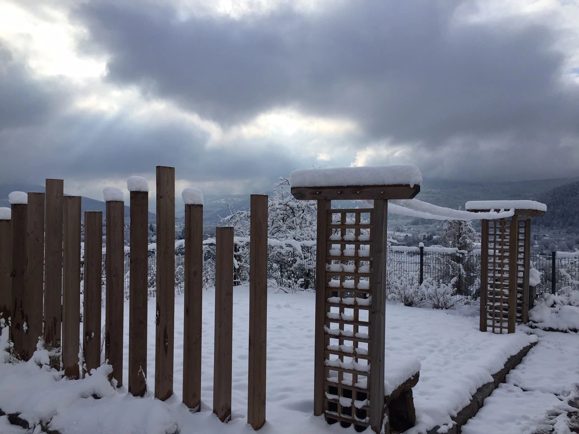 Chambre 3 : 2 lits 90x200 modulables, vue sur le jardin et les montagnes.