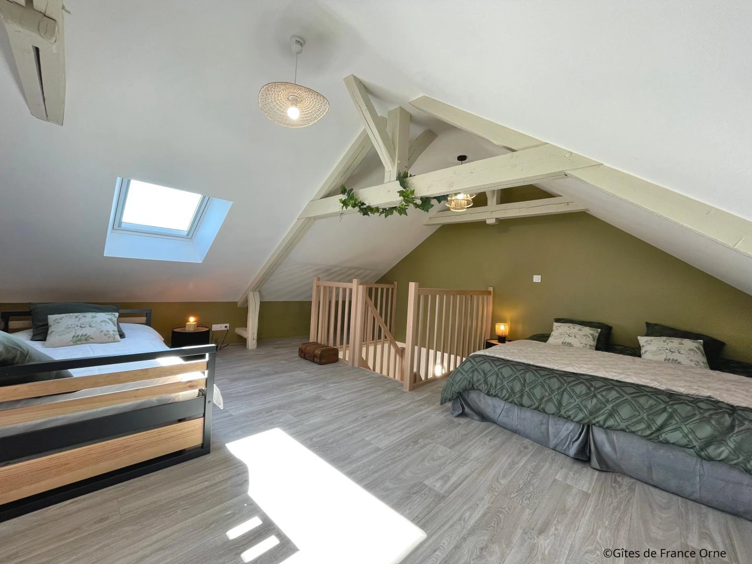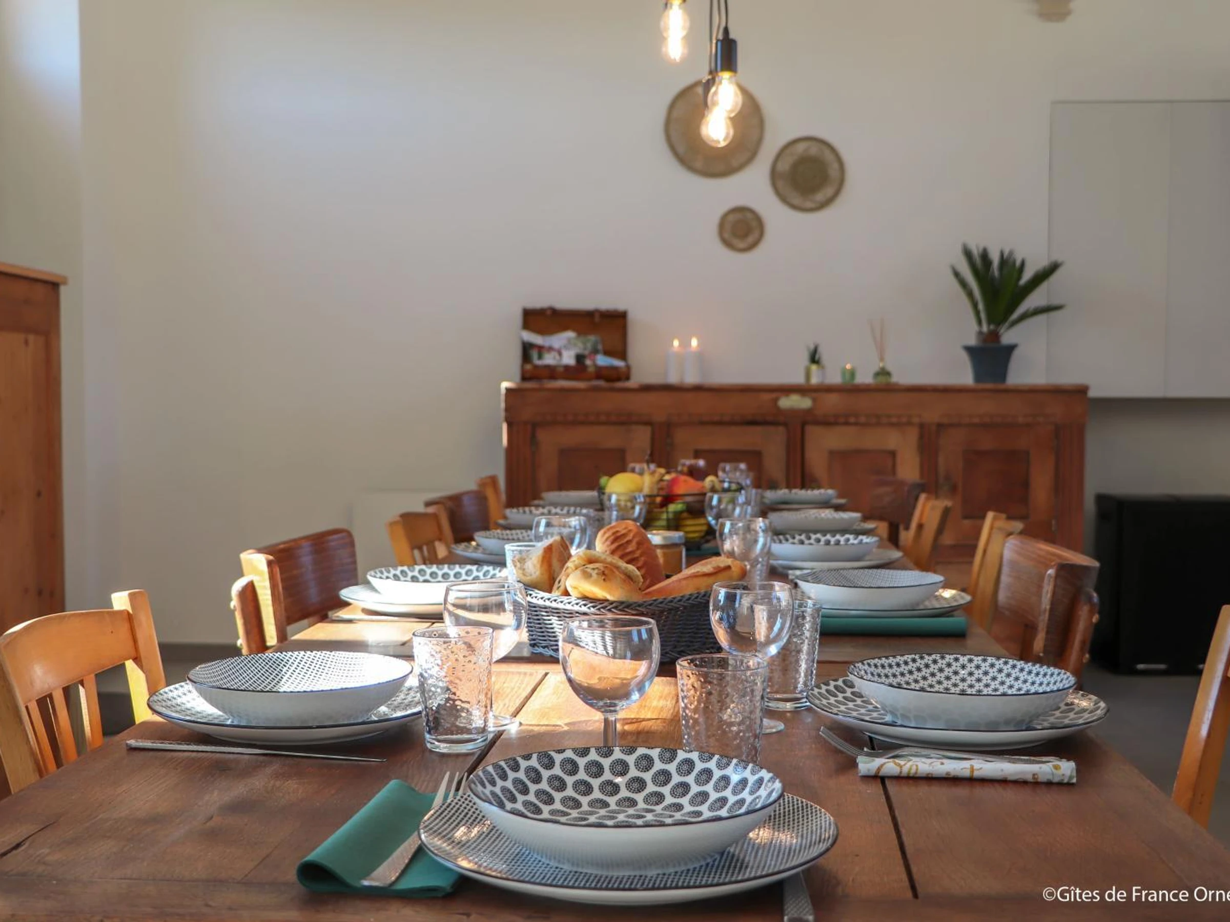 Cour non close privative avec jardin communal ombragé attenant (terrain de pétanque, jeu sur ressort, boite à livres). Au cœur du Parc Naturel Régional du Perche, ce grand gîte lumineux et spacieux a été entièrement réhabilité. Il abritait auparavant l'ancien logement de l'instituteur de l'école, qui a fermé il y a quelques décennies et qui est devenu aujourd'hui une salle polyvalente. Cette salle de 62 m² attenante, idéale pour vos réunions de famille jusqu'à 49 personnes, est réservée exclusivement aux clients du gîte (avec supplément de 140 €/ we et 46 €/jour semaine) ou en dehors des périodes d'occupation du gîte.