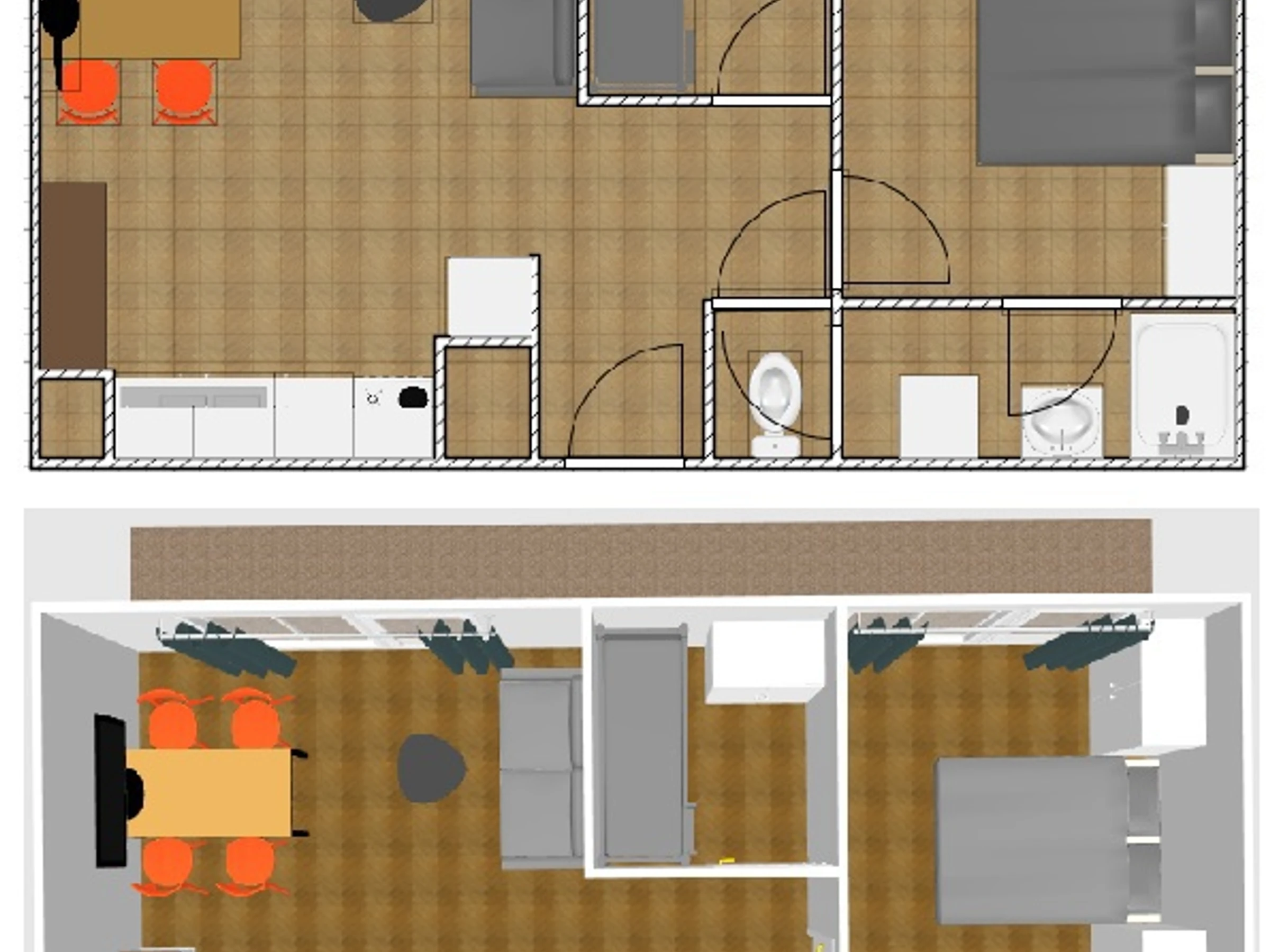 3 Pièces de 45m2 pouvant accueillir 4 personnes