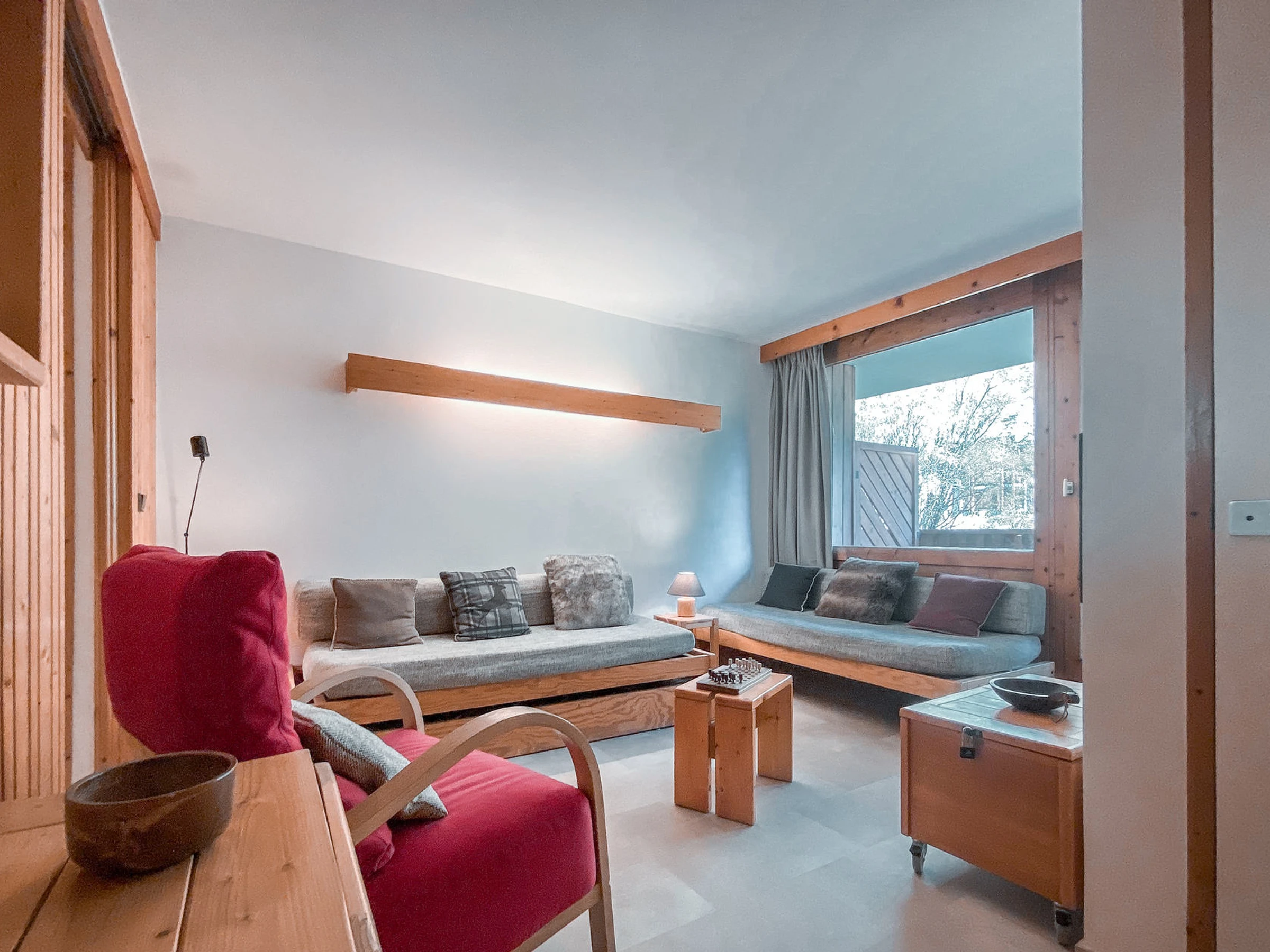Pour votre séjour au ski ou vos vacances d’été à Val d’Isère, réservez ce 2 pièces avec balcon exposé Nord Est avec vue sur les montagnes.