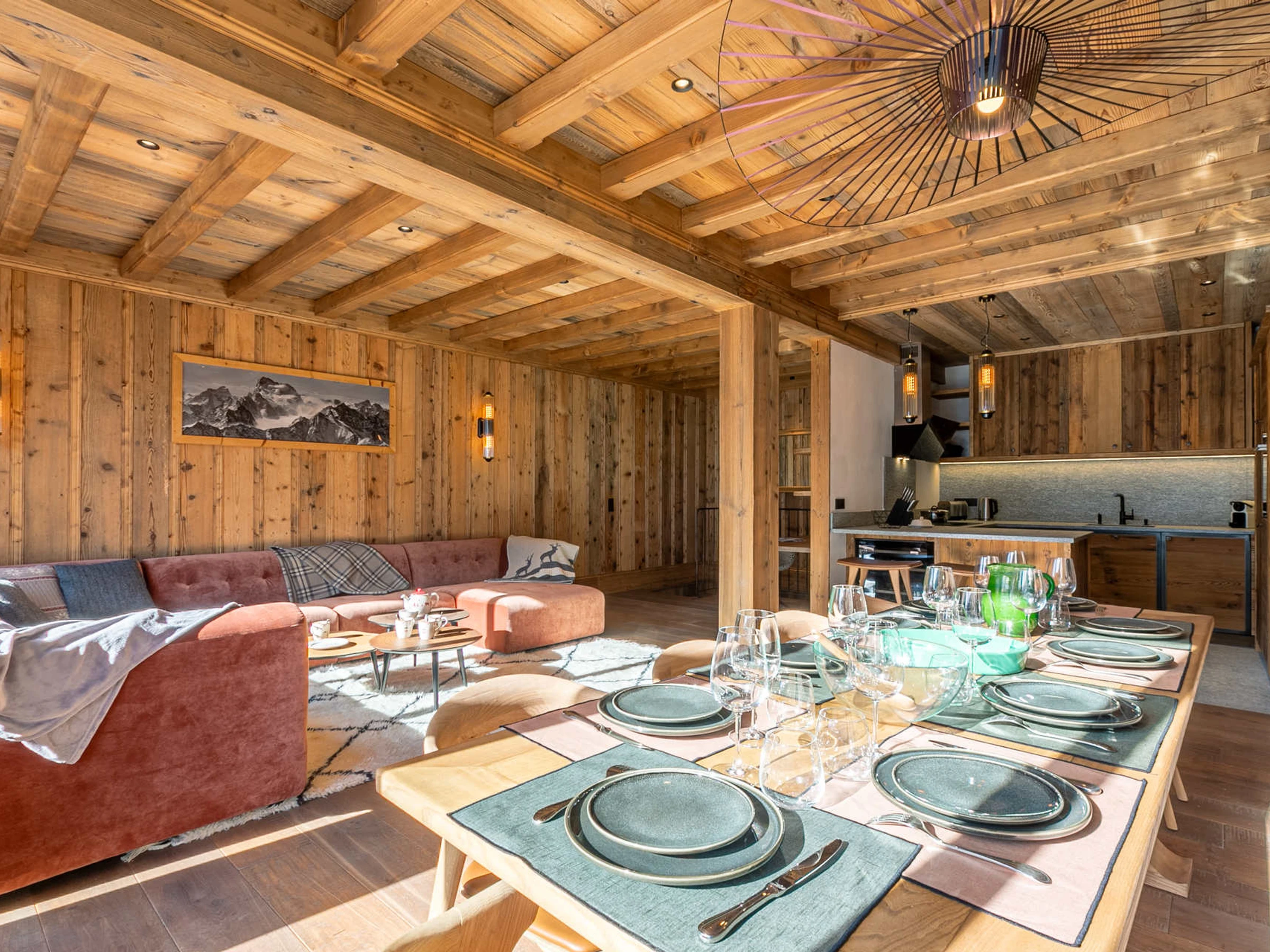 Luxueux 5 pièces de 130 m2 repartis sur 2 niveaux pouvant accueillir 10 personnes. Dans un style vieux bois avec balcons exposés plein Sud et très belle vue sur le village