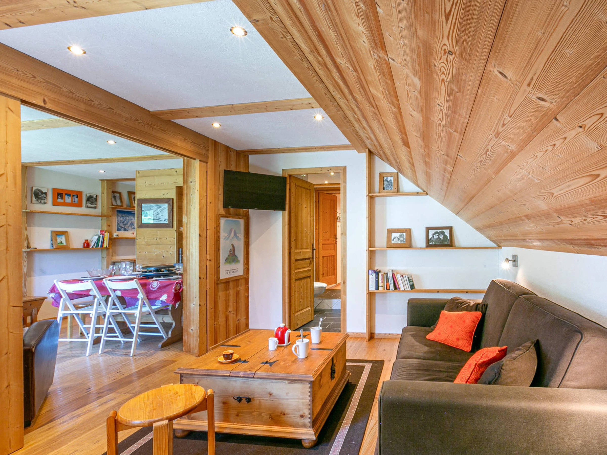 Salon télévision séparé par porte coulissante